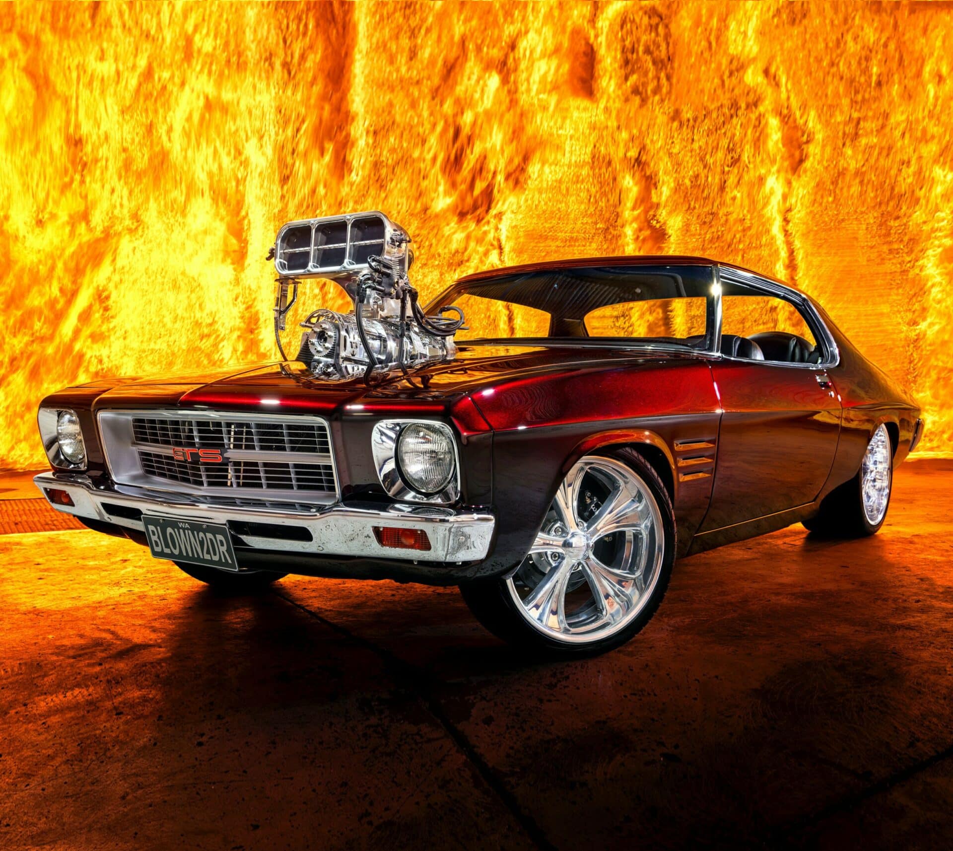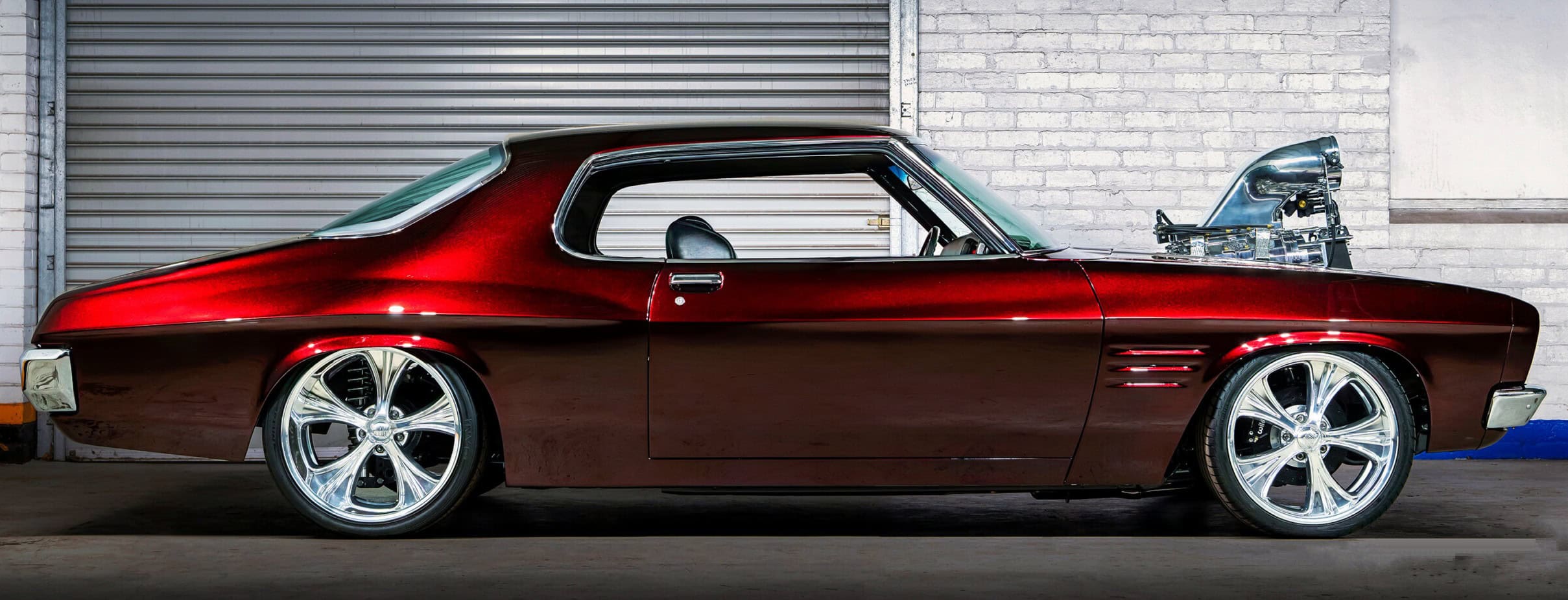 Sans complexe… Rien à foutre… Vive le politiquement incorrect… Noddy Perkins est un peu une légende sur la scène automobile de l’ouest de l’Australie surtout quand il fabrique et circule avec des monstres alimentés au méthanol, donc cette reconstruction était à peu près inévitable à un moment donné de l’affirmation des libertés consécutif d’un ras-le-bol général : “Nous avons été vainqueurs aux Summernats d’Australie et avons remportés le World Record Burnout à Bindoon. C’est à ce moment-là que nous avons décidé qu’il était temps de montrer que nous en avions marre des contraintes. À cette fin, notre Holden Monaro GTS 1971 a fait l’objet d’une reconstruction très soignée pour qu’elle devienne la Star de tous spectacles. La différence la plus évidente est la couleur de la peinture, l’orange vif étant maintenant remplacé par une teinte de chez House of Kolor nommée Brandywine.