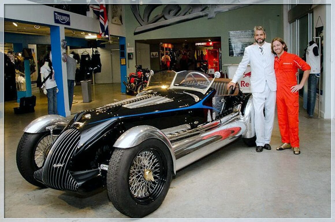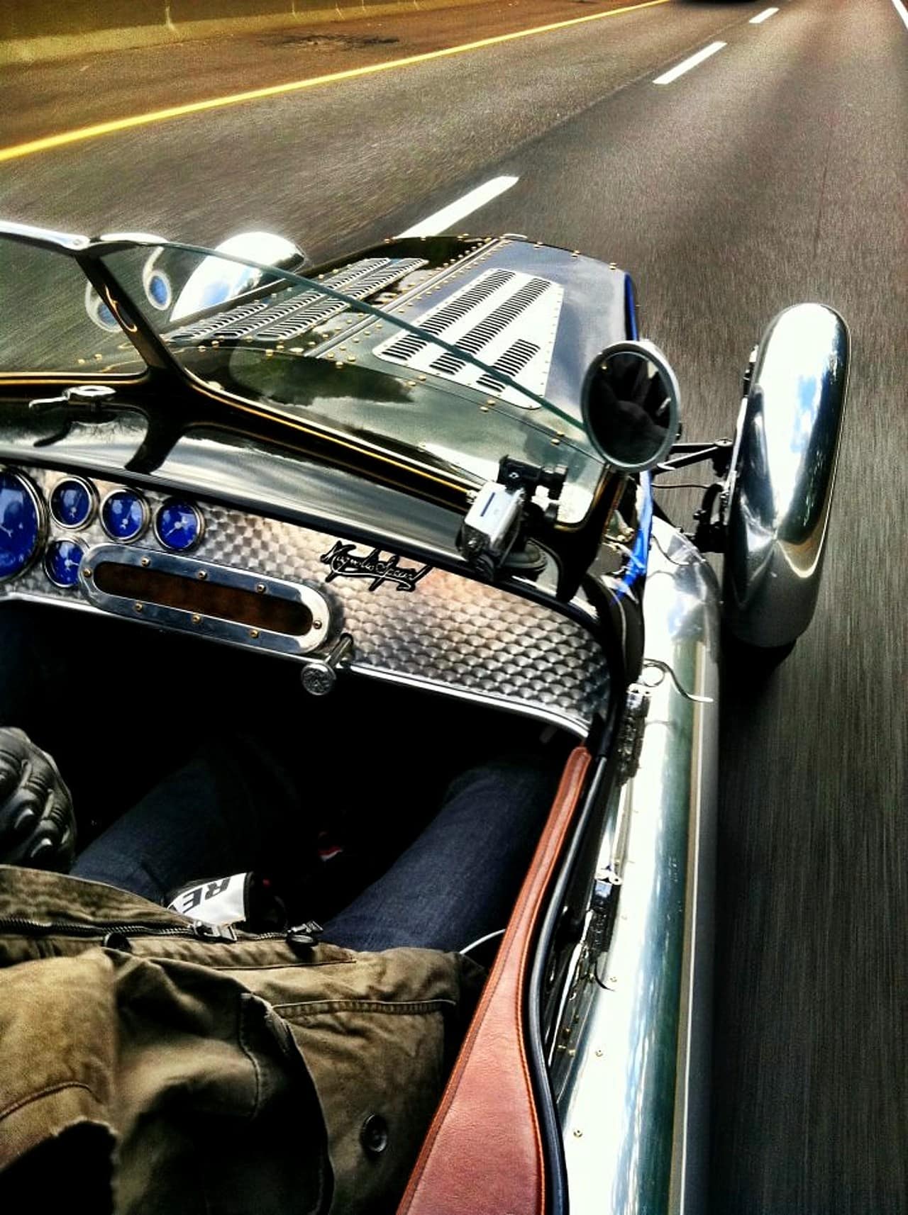 M. Nesbitt m’a dit que lors de la conception de la voiture, il avait donné la priorité à la beauté et à l’ingénierie par rapport au confort des créatures amenés à conduire “la bête”…, C’est peut-être une approche peu orthodoxe pour ce qui serait utilisé avant-tout comme un grand tourer de cross-country. Mais lors de notre rencontre dans le Lower Manhattan, lui et son partenaire de conduite Maxwell Materne, navigateur et ingénieur électricien de la voiture, m’ont avoué que leur intention était très basique : “Conduire le Roadster Magnolia Special à Los Angeles le plus rapidement possible, vêtus l’un-l’autre impeccablement de costumes gris clair avec gilets assortis pour avoir l’air de vivre un retour à une autre époque que la voiture. J’aime les choses qui sont mécaniques, ils ont un lien plus humain”, m’a précisé M. Nesbitt, qui, depuis sa boutique, Bienville Studios, à la Nouvelle-Orléans, a conçu des couteaux très décorés, des armes à feu et des motos. Avant de fonder Bienville, M. Nesbitt a travaillé pour Confederate Motorcycles, où il a conçu “le Wraith”, un vélo v-twin de 55.000 $ qui est depuis devenu un objet de collection très recherché !