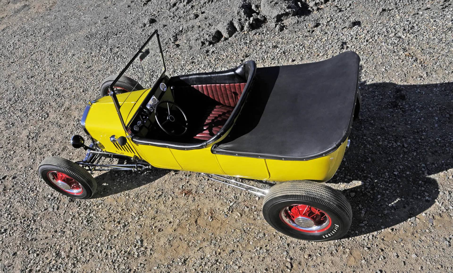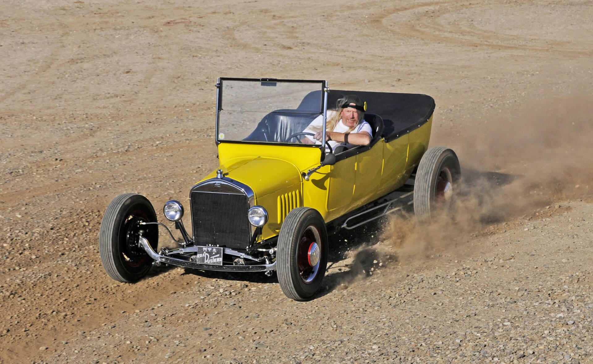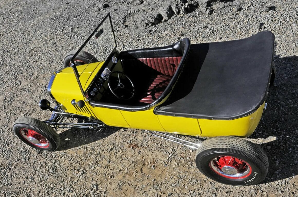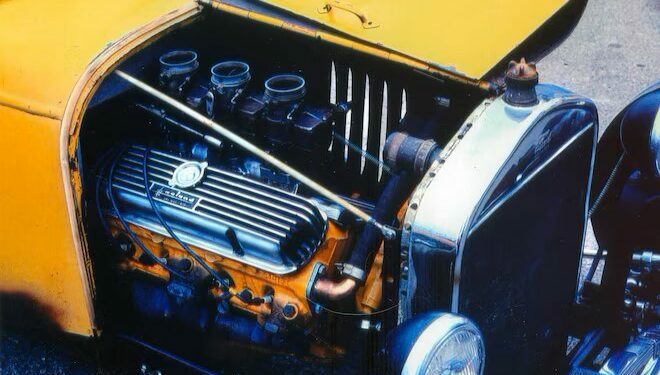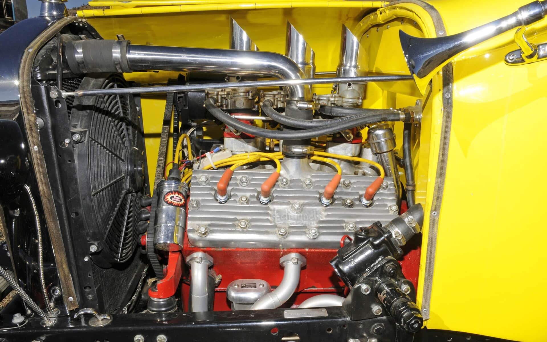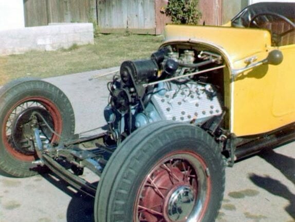 Son “Hop-Up” est devenu un “Hot Rod Tub” et il va flinguer les moteurs les uns après les autres, aussi bien des 4cyl que des 6 en ligne (rares) et des V8… Tous sous son capot jaune. (Et, oui, il a toujours été jaune, ou une nuance de jaune, à travers trois repeintures au fil des ans). Le premier moteur de Tom était un bloc V8 modèle B doté d’un vilebrequin modèle C et équipé d’une conversion Miller à simple arbre à cames avec deux carburateurs Winfield à tirage latéral. C’est avec ce moteur que Tom a atteint 101 mph, sa vitesse la plus rapide sur les lacs. C’est aussi le moteur qui se trouvait dans la voiture lorsque Tom Medley a photographié ce Tub pour un reportage dans le magazine HOT ROD de juillet 1950.