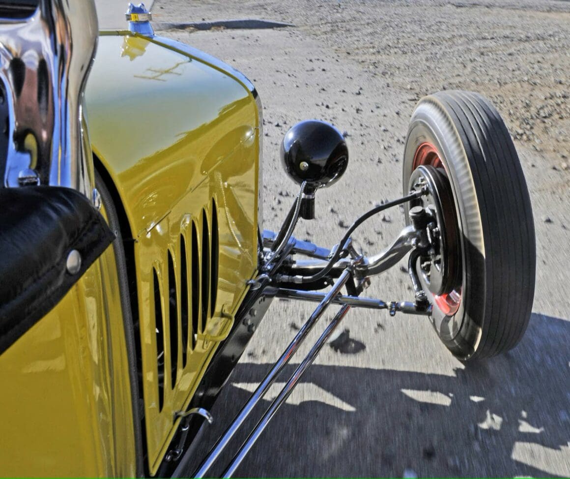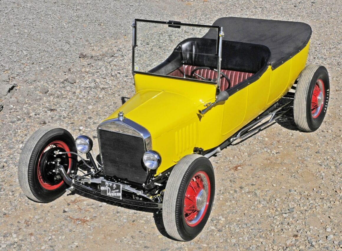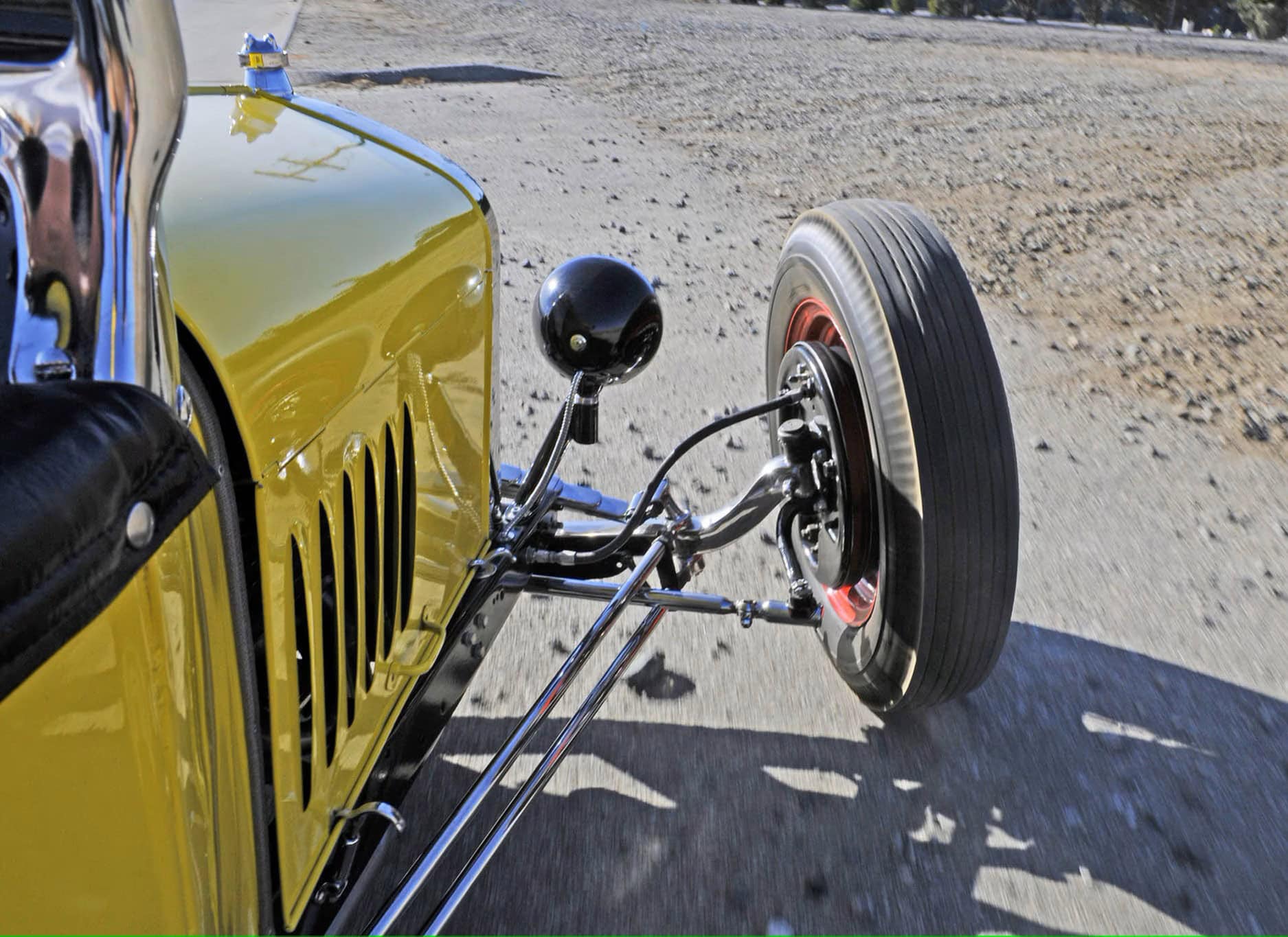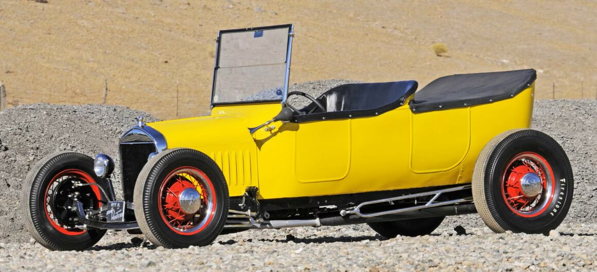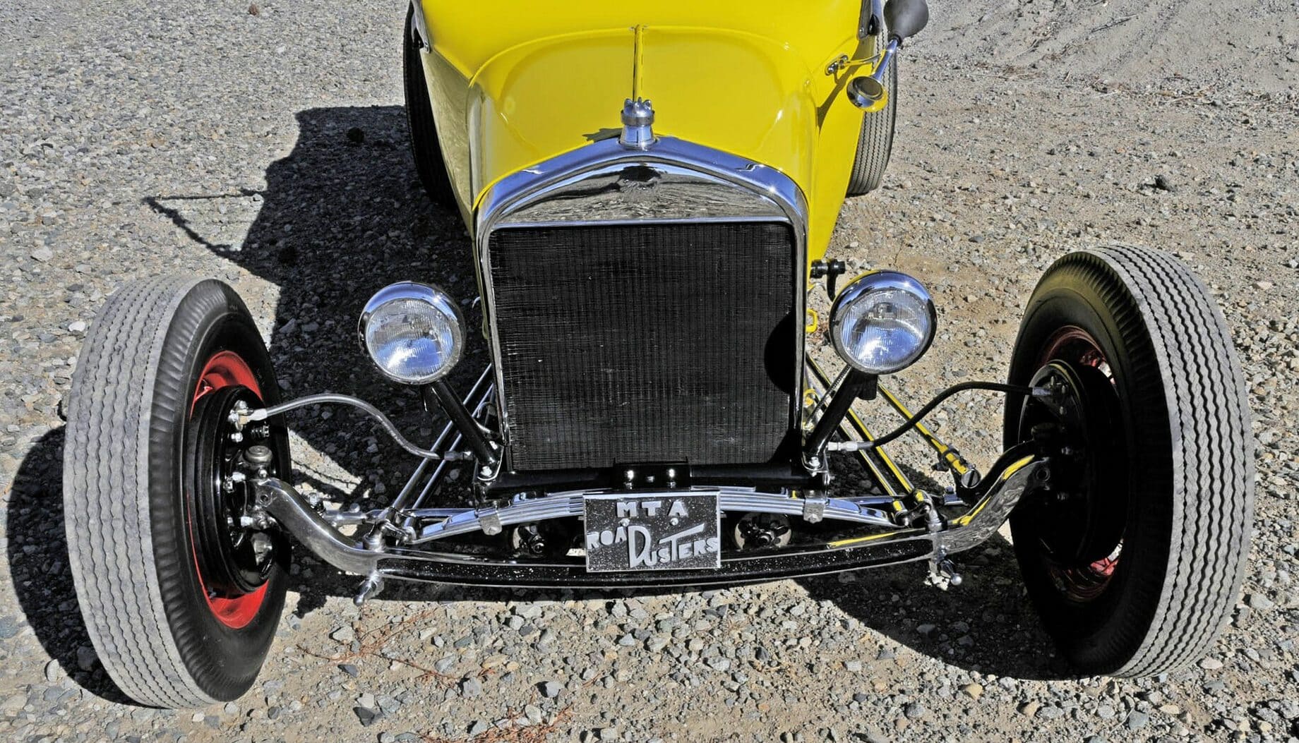 Son “Hop-Up” est devenu un “Hot Rod Tub” et il va flinguer les moteurs les uns après les autres, aussi bien des 4cyl que des 6 en ligne (rares) et des V8… Tous sous son capot jaune. (Et, oui, il a toujours été jaune, ou une nuance de jaune, à travers trois repeintures au fil des ans). Le premier moteur de Tom était un bloc V8 modèle B doté d’un vilebrequin modèle C et équipé d’une conversion Miller à simple arbre à cames avec deux carburateurs Winfield à tirage latéral. C’est avec ce moteur que Tom a atteint 101 mph, sa vitesse la plus rapide sur les lacs. C’est aussi le moteur qui se trouvait dans la voiture lorsque Tom Medley a photographié ce Tub pour un reportage dans le magazine HOT ROD de juillet 1950.