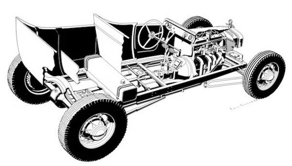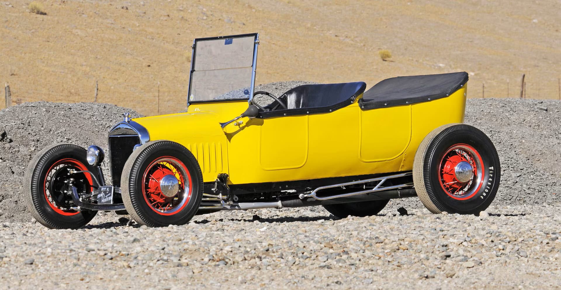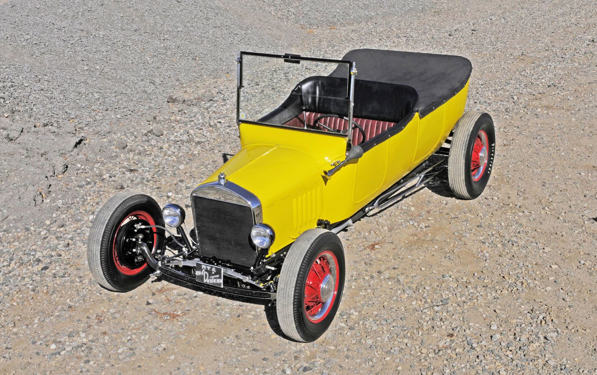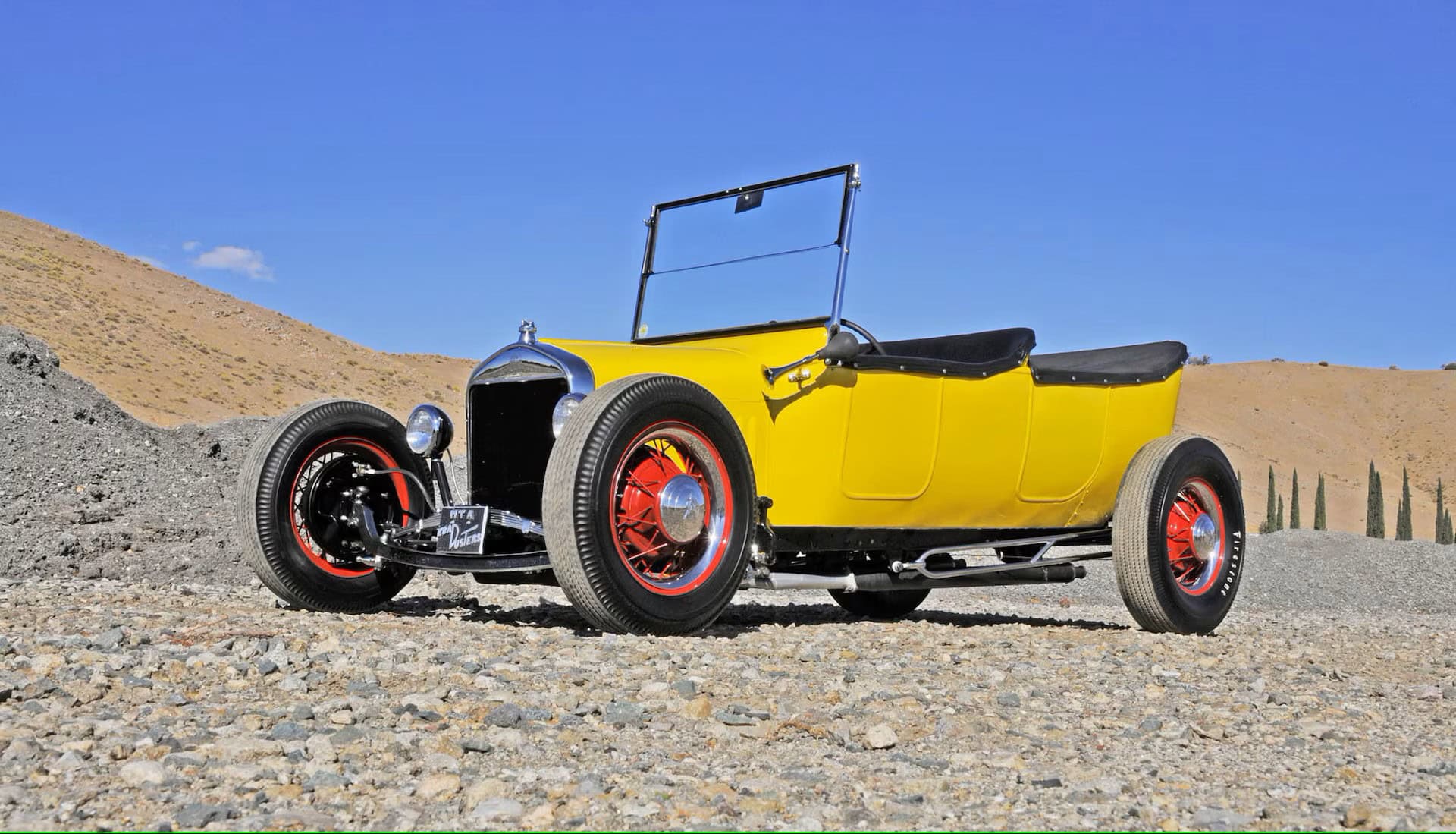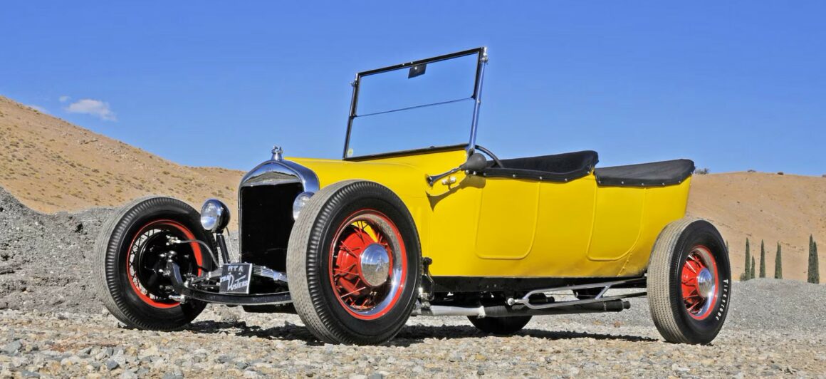 Son “Hop-Up” est devenu un “Hot Rod Tub” et il va flinguer les moteurs les uns après les autres, aussi bien des 4cyl que des 6 en ligne (rares) et des V8… Tous sous son capot jaune. (Et, oui, il a toujours été jaune, ou une nuance de jaune, à travers trois repeintures au fil des ans). Le premier moteur de Tom était un bloc V8 modèle B doté d’un vilebrequin modèle C et équipé d’une conversion Miller à simple arbre à cames avec deux carburateurs Winfield à tirage latéral. C’est avec ce moteur que Tom a atteint 101 mph, sa vitesse la plus rapide sur les lacs. C’est aussi le moteur qui se trouvait dans la voiture lorsque Tom Medley a photographié ce Tub pour un reportage dans le magazine HOT ROD de juillet 1950.
