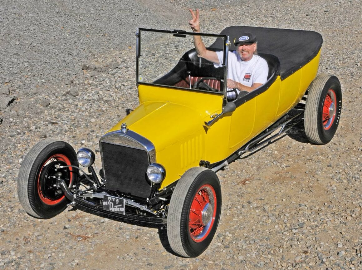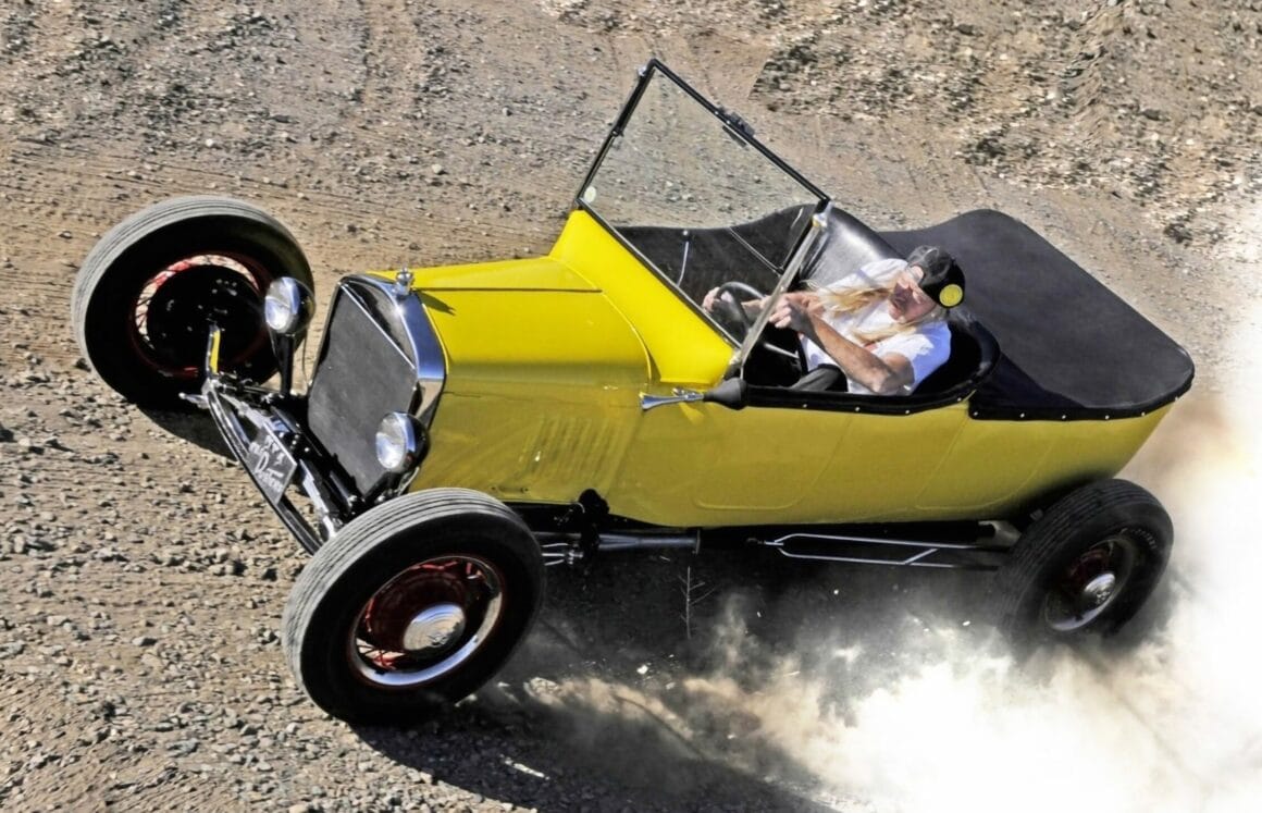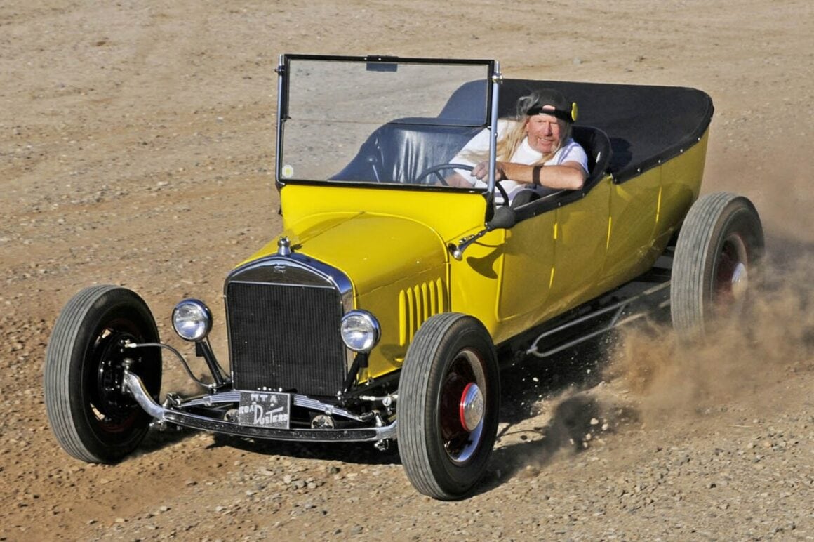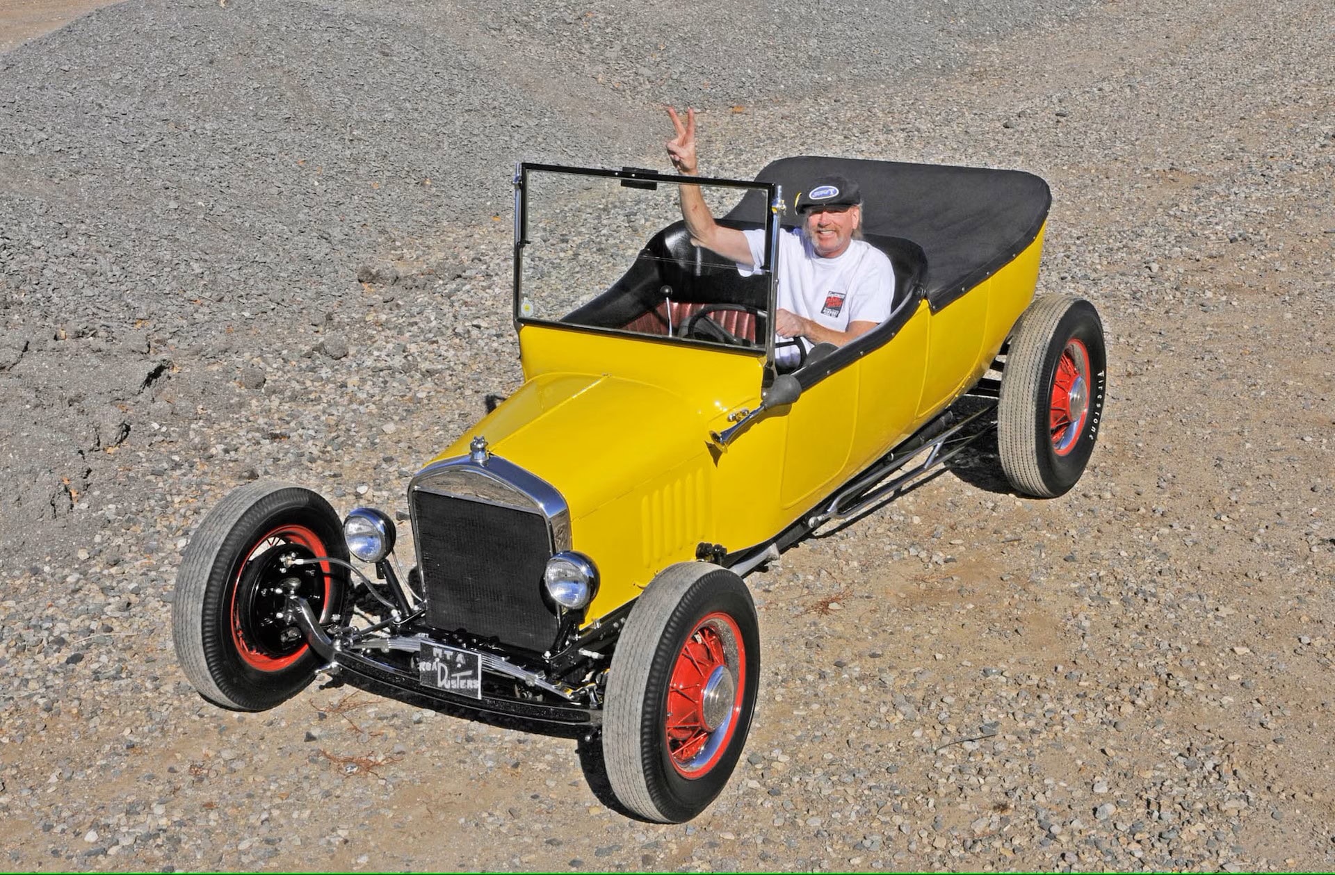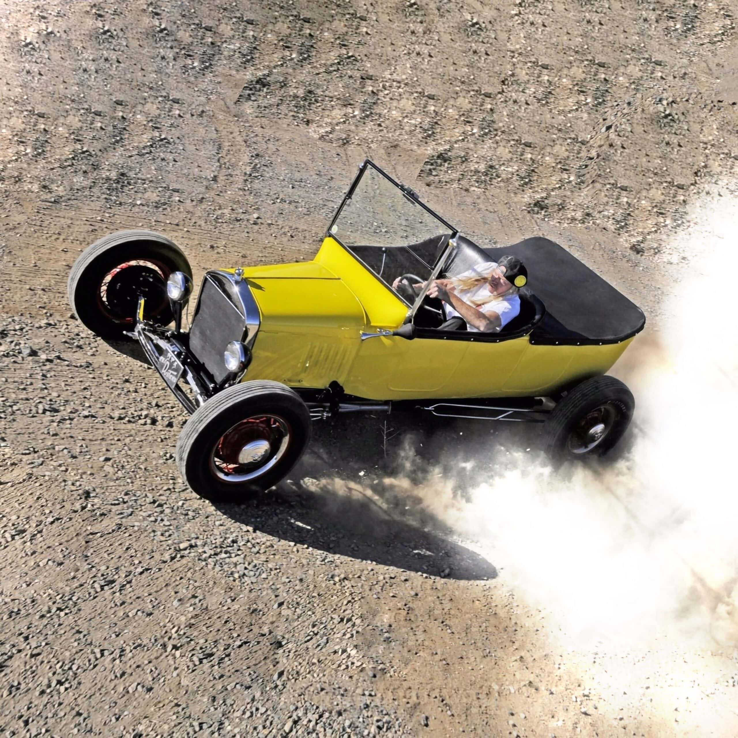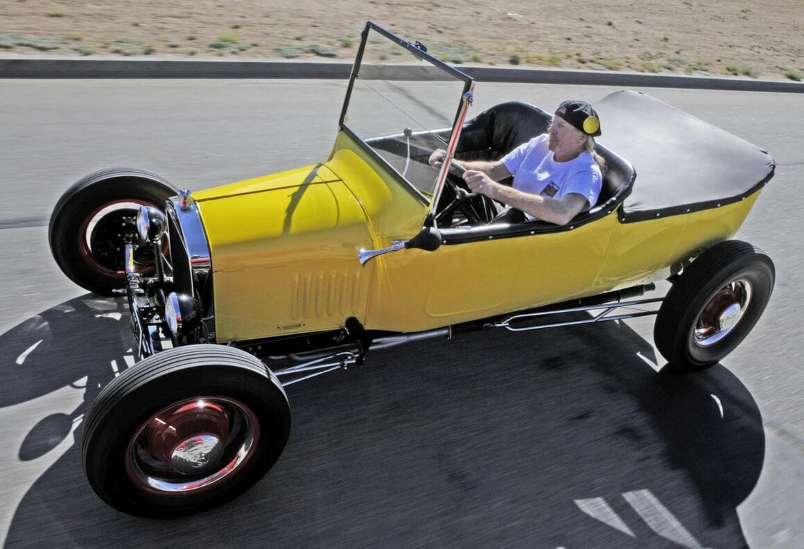 Il parle de son dernier projet, une carrosserie de Hot Roadster’27 avec deux V8 Bangers Tempest 389ci montés en ligne… “Je désire juste faire quelque chose de différent. Mais ma baignoire jaune sera toujours là aussi”… Ses racines sont profondes. Il se souvient très bien d’une nuit de 1960 : “Mon père avait l’habitude d’emmener ma baignoire chez Don Brown pour le laisser faire quelques tours dans le champ de terre près de sa maison à Chatsworth. Don était un coureur de Sprint Car, un coureur Indy, était un incroyable réparateur. Il a travaillé pour A.J. Watson à la construction de Roadsters Indy. Je suppose que faire des longueurs dans la terre dans ma baignoire était une façon d’évacuer le stress. Quoi qu’il en soit, en 1960, la baignoire contenait encore la grande Merc”…