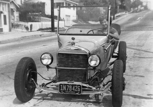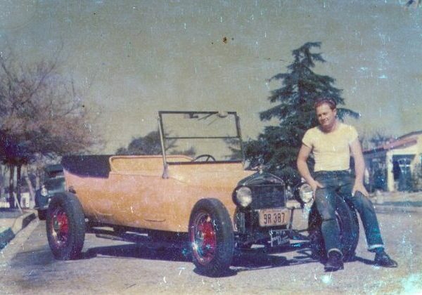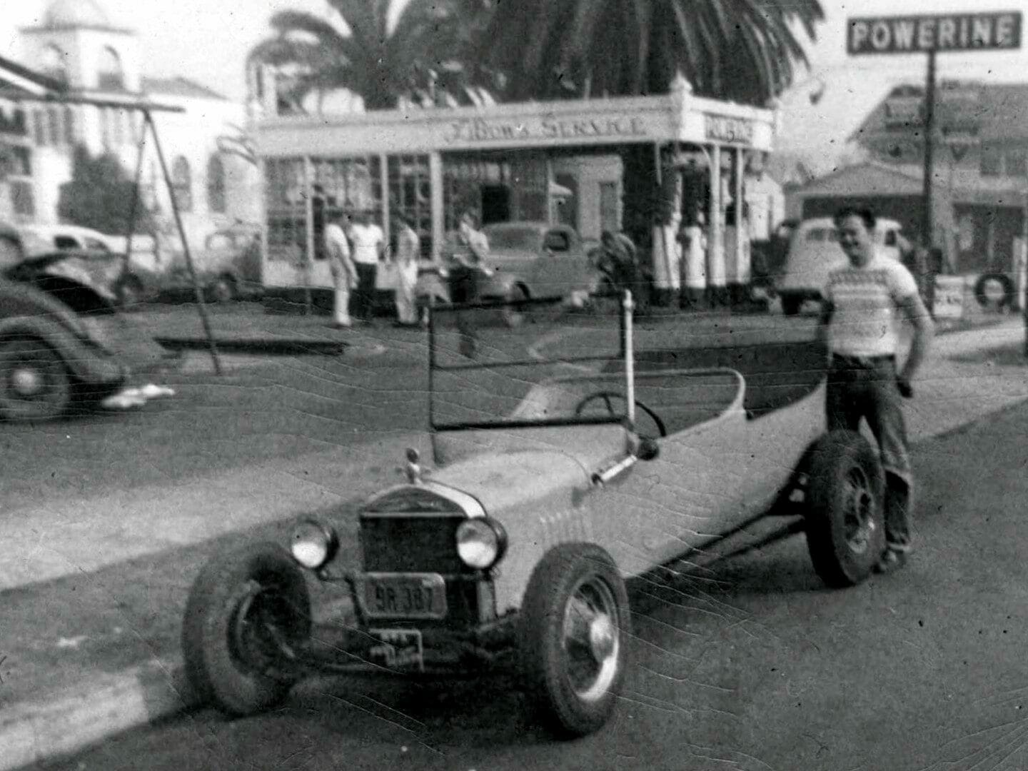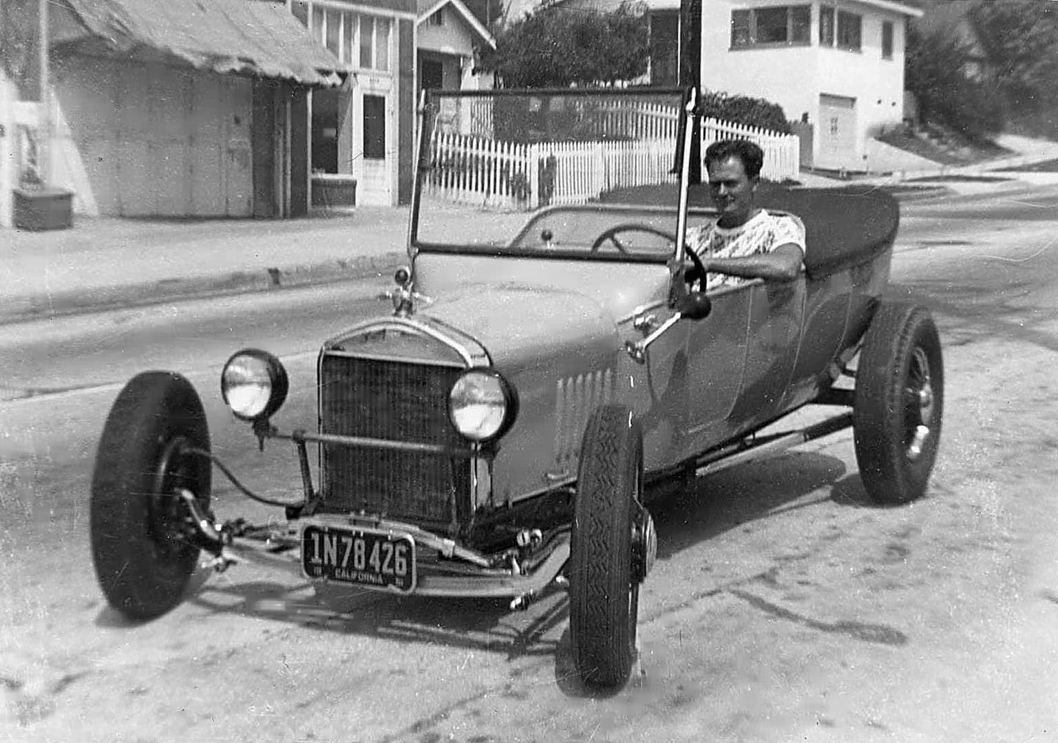 On s’est installé avec un stock de bière et de goinfreries pour anthropophages et on a papoté… Nous sommes en avril 2025 et il est né en avril 1930), il est entré dans la marine en 1948 après la guerre 41/45, il avait 18 ans et a servi son pays en tant que second machiniste sur un destroyer de la classe “Sullivan” et quand il s’est mobilisé : “Le truc du Hot Rodding frappait fort chez les jeunes”, me raconte t’il… Dans cette frénésie de “Hop-Up’s” d’après-guerre (le terme Hot Rod est arrivé plus tard avec le nom d’un magazine), un ami marin de la même galère/Destroyer, à proposé la Ford T’23 de ses parents décédés pour 40 $ à Tom… “À l’époque, 50 $ pouvaient à peine permettre de sortir un A-Bone complet d’une casse”, me dit Tom Rod Hynes…