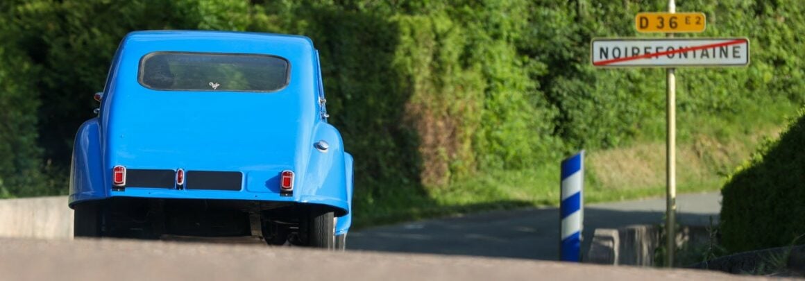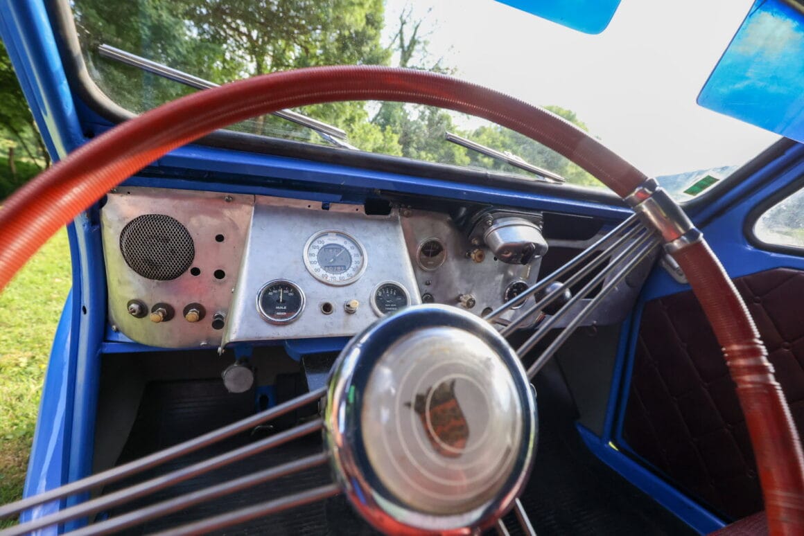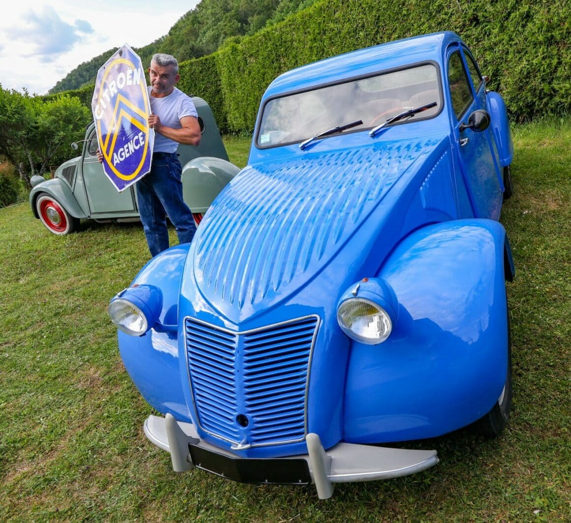 Dans son atelier à Noirefontaine, Damien Boiteux a rénové une 2 CV-A datant de l’été 1953 en recréant un modèle unique “Kustomisé-sport” datant de l’époque des insouciantes “Fifties” par le pilote Jean Blanchet. C’était pour faire “de la compétition”, pas pour frimer dans des concentrations “Kustom” qui alors n’existaient pas (encore)…