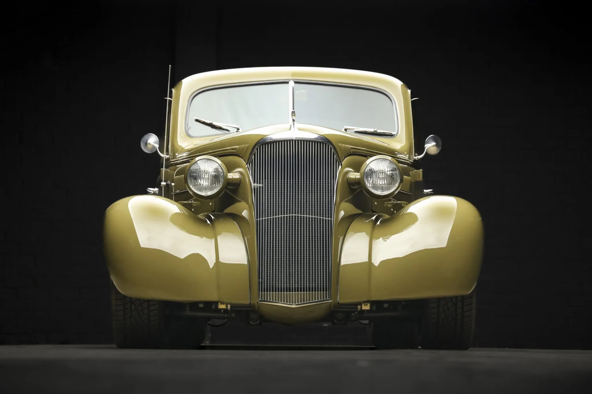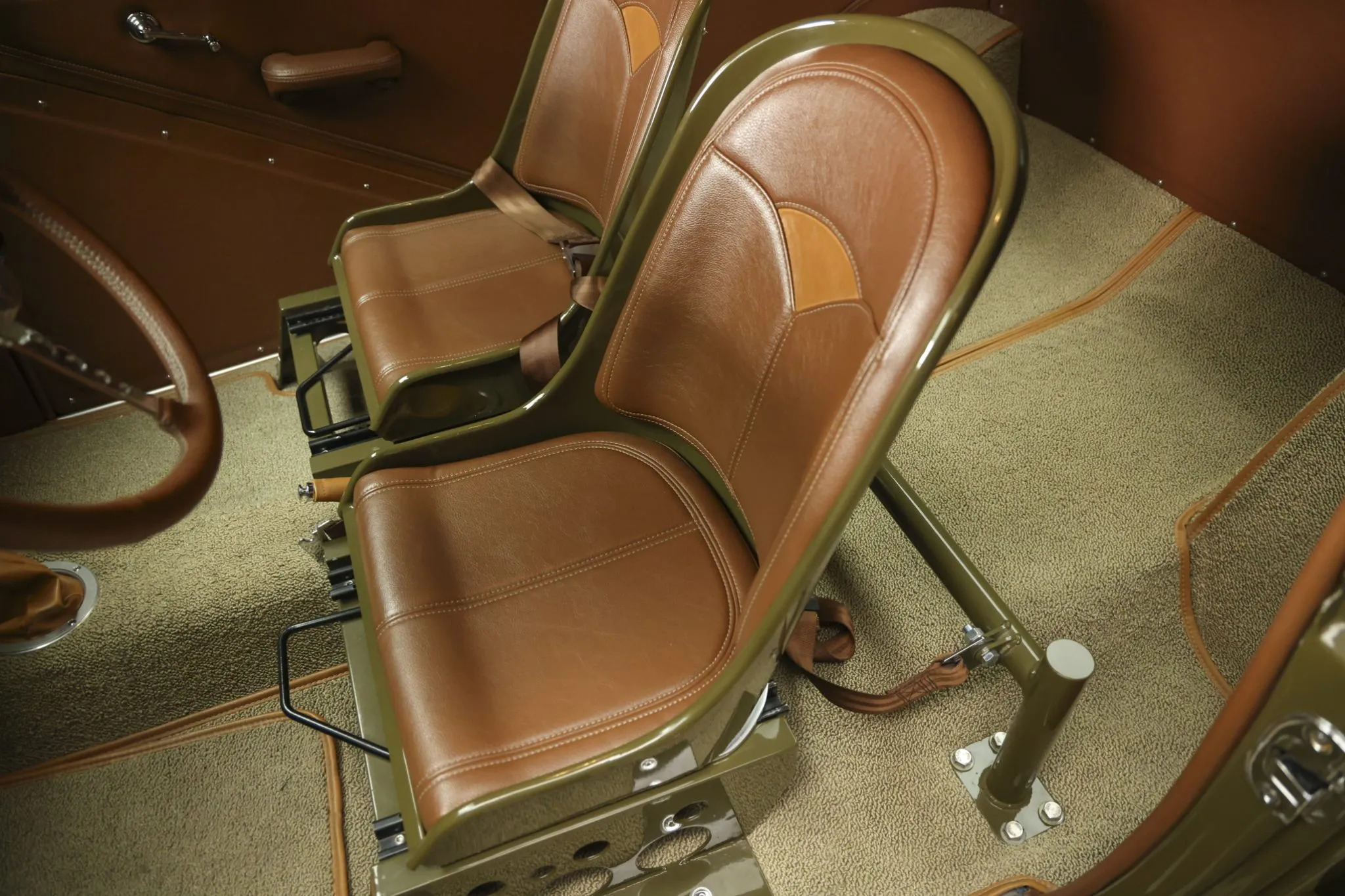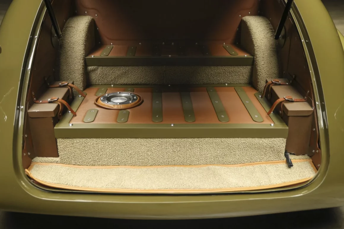 L’intérieur est entièrement personnalisé avec un moteur Speedway, une colonne de direction et des jauges d’instrument classiques. À l’intérieur, vous pouvez voir l’influence “large” du Hot Rod en comparaison du Coupé d’affaires de la fin des années’30. Le tableau de bord d’usine a été modifié par KHR&C et à partir de là, équipé de compteurs Classic Instruments, d’un système de climatisation Old Air Hurricane avec commandes cachées…