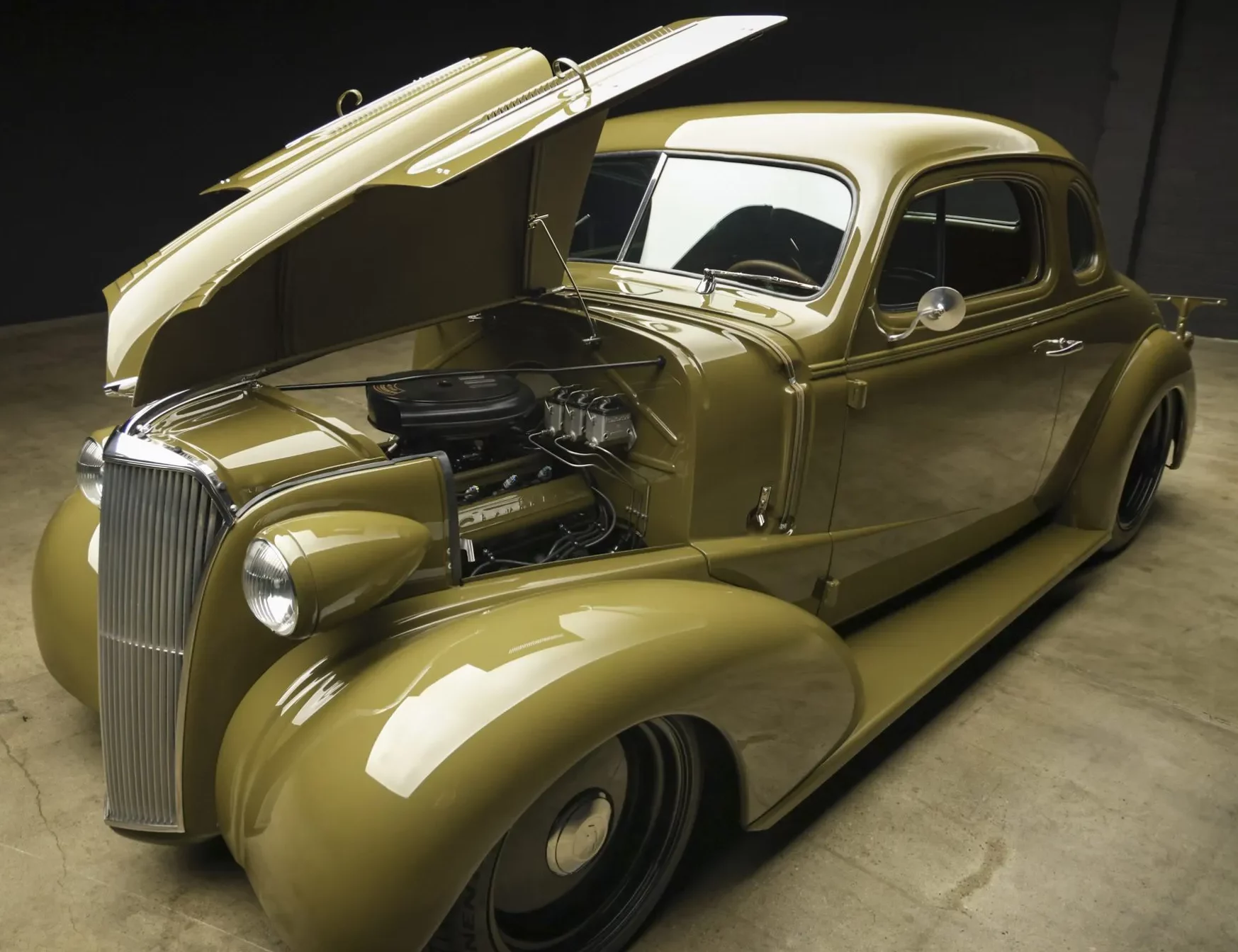 Regardez de plus près les rehausseurs de siège, les curseurs de siège réglables individuels ont été fabriqués par KHR&C. Les sièges baquets de style avion attirent l’attention et ils mettent vraiment en valeur la nature professionnelle de l’intérieur. Il n’y a aucun doute sur l’apparence extérieure agressive de ce coupé d’affaires Chevrolet’37. Néanmoins, c’est l’effort méticuleux consacré à la carrosserie et à la peinture (basée sur une couleur PPG personnalisée).