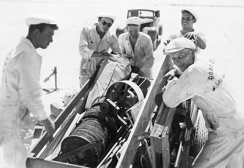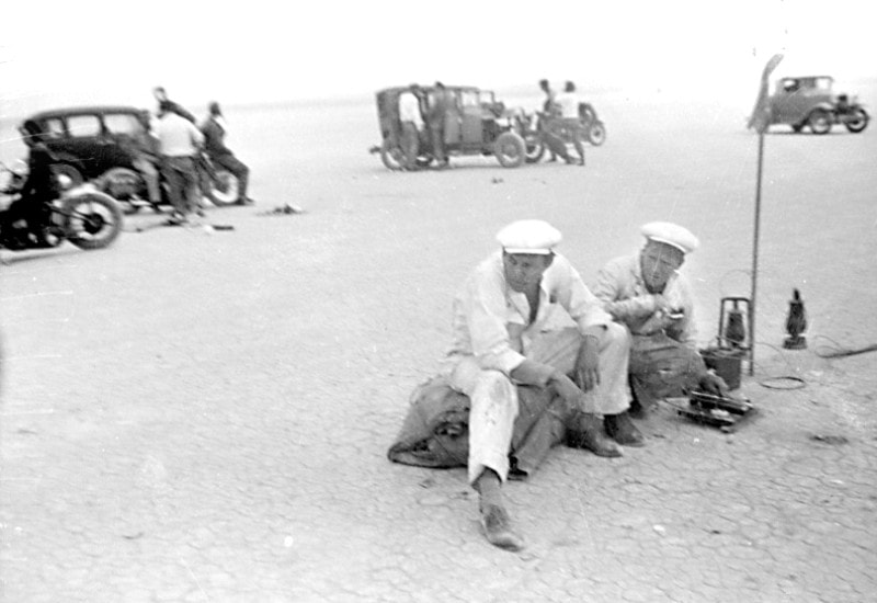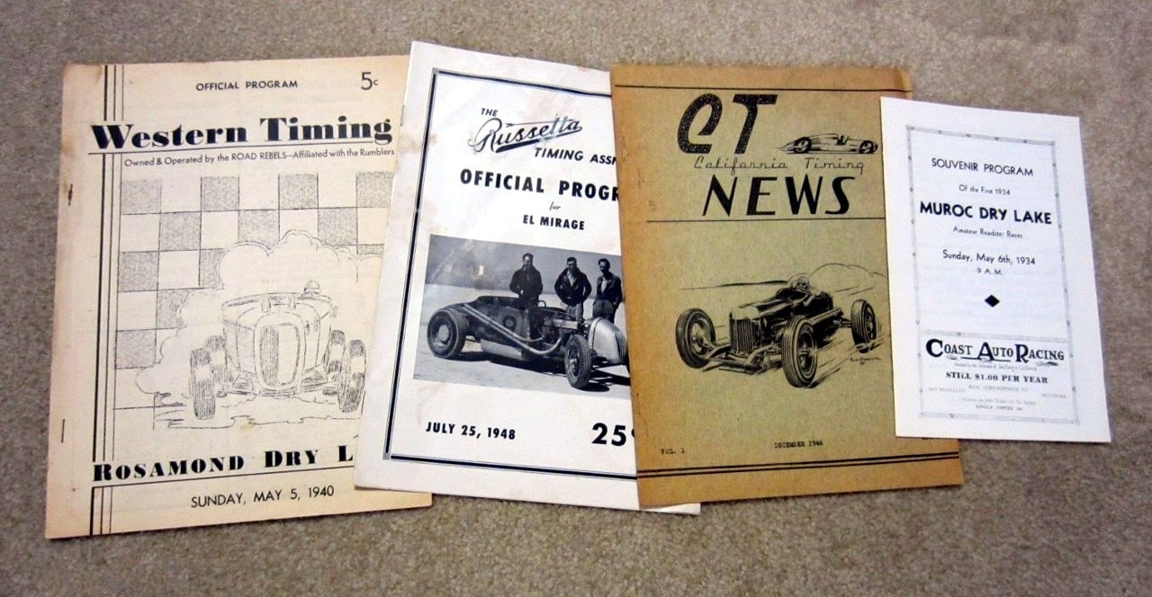 L’activité la plus prisée des d’jeunes désœuvrés possédant une auto, était d’aller draguer les filles puis courir en paire, “contre-la-montre” sur des lacs asséchés où, en ville, entre deux feux de trafic. Ce qui occasionnait souvent d’atroces accidents avec des “papa’s” qui avaient le tort de stopper aux feux rouges… L’objectif “primal et basique” n’était toutefois pas de leur rentrer dedans, mais de gagner un max de dollars contre le temps lui-même. Cela nécessitait un voyage épuisant dans le désert sur des routes primitives et parfois inexistantes, des trajets où il n’y avait pas de stations-services d’essence et autres produits automobiles. Une fois là-bas, outre du ravitaillement (boissons et nourriture ainsi que de l’eau et de l’essence) il fallait de l’organisation et du contrôle pour minimiser le chaos généré par ceux qui couraient dans toutes les directions à la fois. Un poste d’urgence “premiers-secours” était indispensable, il n’y avait aucun hôpital à moins de 500kms)… George Wight et George Riley ont, les premiers, organisés la “Muroc Timing Association” afin de solutionner les problèmes évoqués ci-avant et ont géré ce club comme une entreprise, avec l’aide des pilotes et de 7 clubs automobiles qui ont finalement “doublé” les deux innovateurs et organisés la “Southern California Timing Association” (SCTA) pour courir sur les “Desert-playas” une fois par mois, de mai à novembre… D’autres groupes se sont également formés, dont la “Russetta Timing Association” (RTA), chacun voulant une part du gâteau, ce qui a créé un point d’ébullition d’enthousiasme pour les pilotes. La “Western Timing Association” (WTA) a alors été créée dans le but de mener des courses “réellement sûres et contrôlées” sur les lacs asséchés.