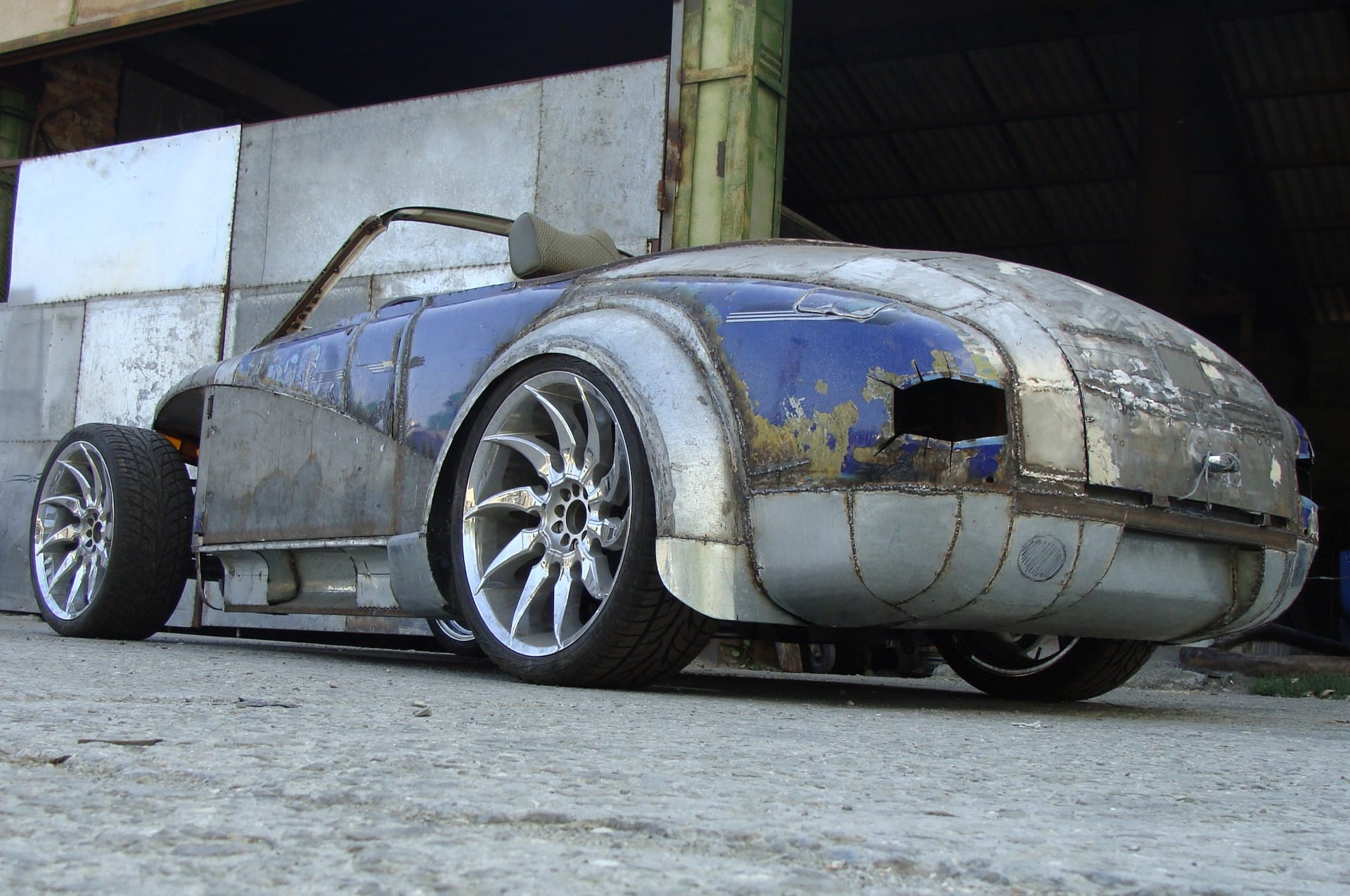 Mais il est indispensable que l’engin s’affiche avec des trous de rouille dans la carrosserie et sans sièges appropriés ! Waouwww ! C’est le panard total ! Tous les vrais Hot-Rodder’s Ricains des années 1950 vous mépriseraient si vous faisiez pareil que les ceusses des pays de l’Est ! Moi-même j’en ai parfois la honte en comparant ce désastre avec les créations de Boydd Coddington… Il me faut avouer qu’ayant vécu 50 ans de Hot-Rodding dont 40 ans de magazines Chromes&Flammes, cette évolution Rat-Rodding des pays de l’Est me stupéfie ! D’autant plus que fiers de leurs bizarreries ils prétendent que les ceusses de la Franchouille ne savent apparemment même pas peindre correctement leurs Rods et Kustom-Cars. Pour défendre l’honneur (perdu) de la Franchouille j’ai rétorqué et publié que pourtant, la plupart des Rat-Rodder’s franchouillard étaient parfaitement capables de peindre une voiture.