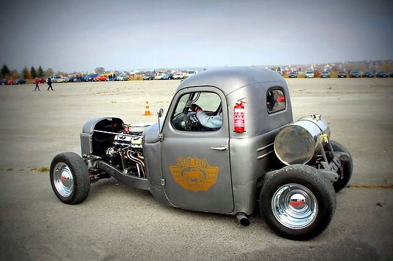 Un vent souffle sur votre visage, vous sentez chaque ornière et nid-de-poule, et entendez chaque explosion de l’essence dans les cylindres. Quand il commence à pleuvoir, il coulera sur vous d’en haut, le jet d’eau volera dans votre visage à travers les fenêtres et il est fort probable que l’eau trouvera même un moyen de traverser le sol. Tout est si réel. Voudrais-je rouler quotidiennement en Rat-Rod ? Diable ! C’est juste une question de goût. Un des deux Rat-Rod’s est surnommé “The Rusty Pistons” il navigue dans le style de vie de la Kustom Kulture : Rat-Rod, Chopper, Bobber, Rockabilly et Psychobilly dans la République tchèque labélisé par la version Tchèque de Chromes&Flammes.