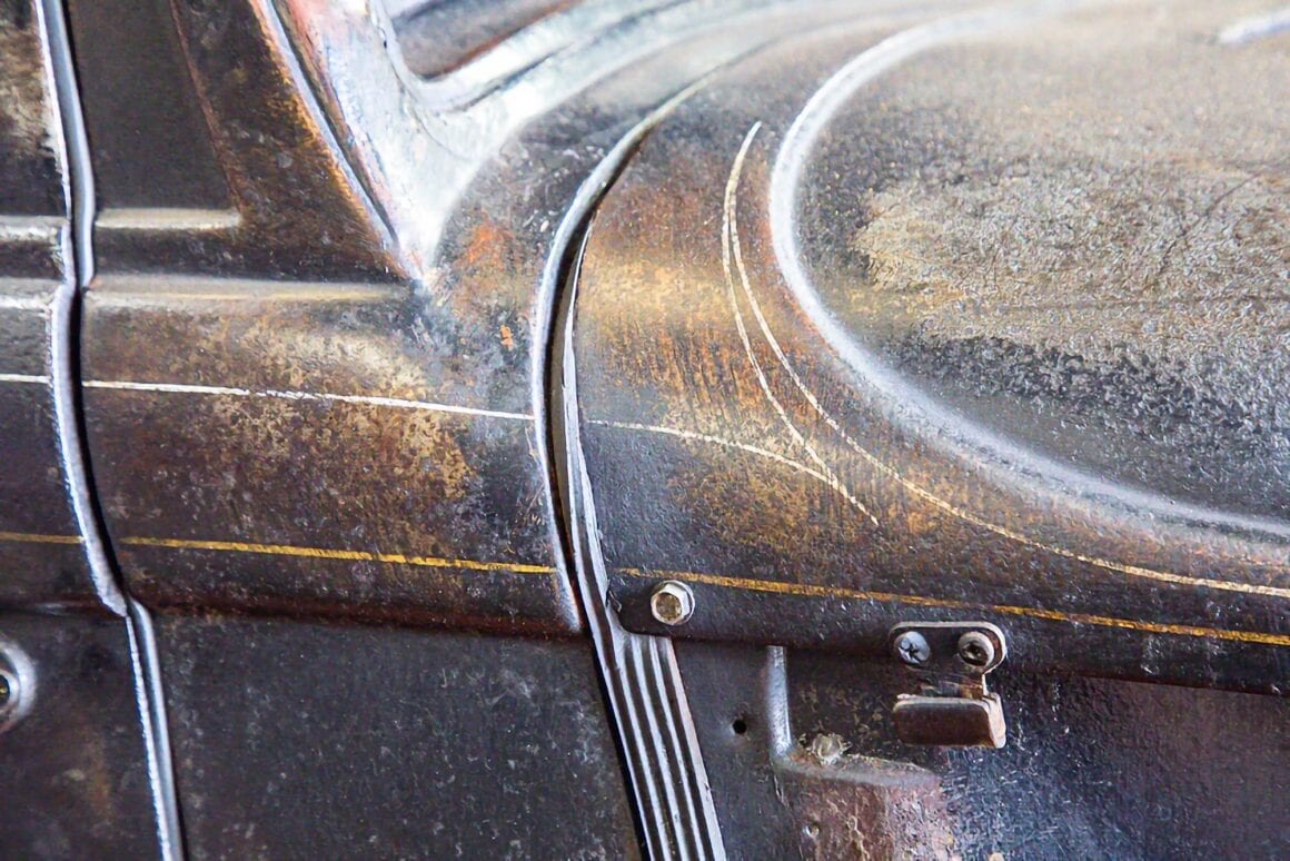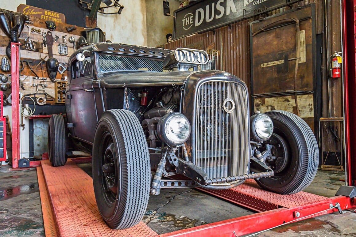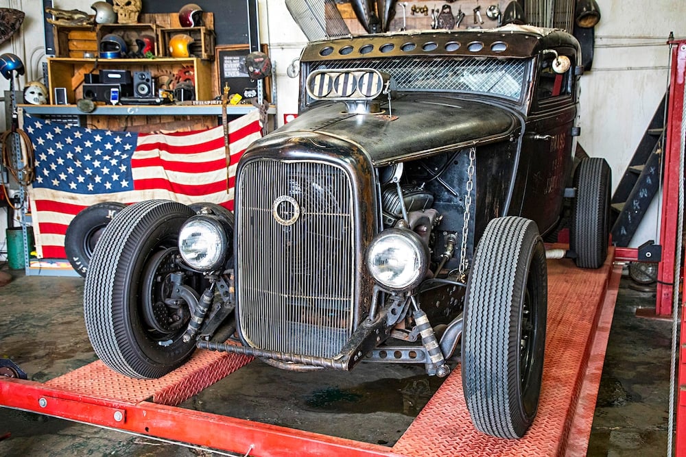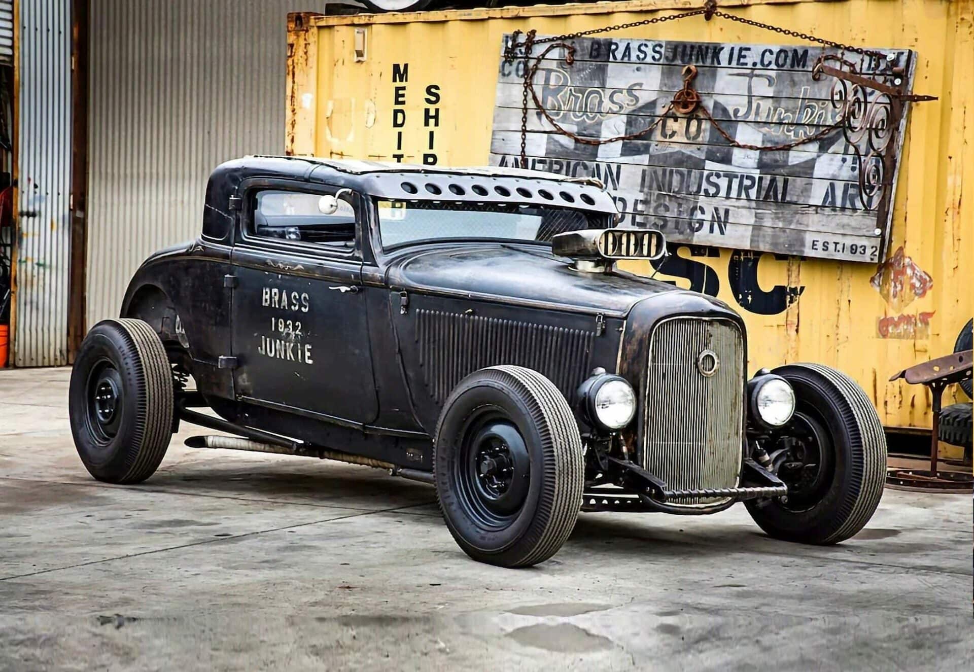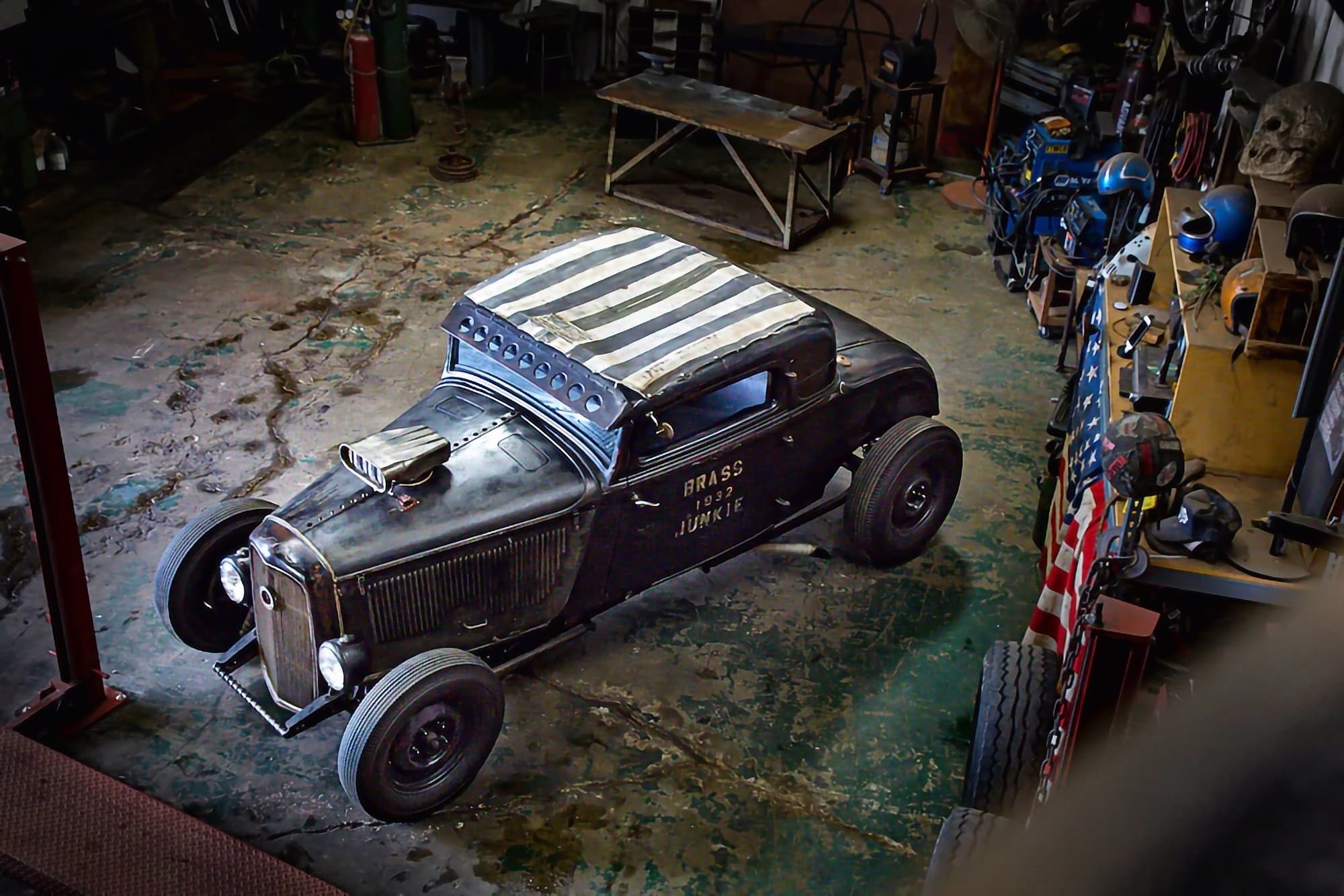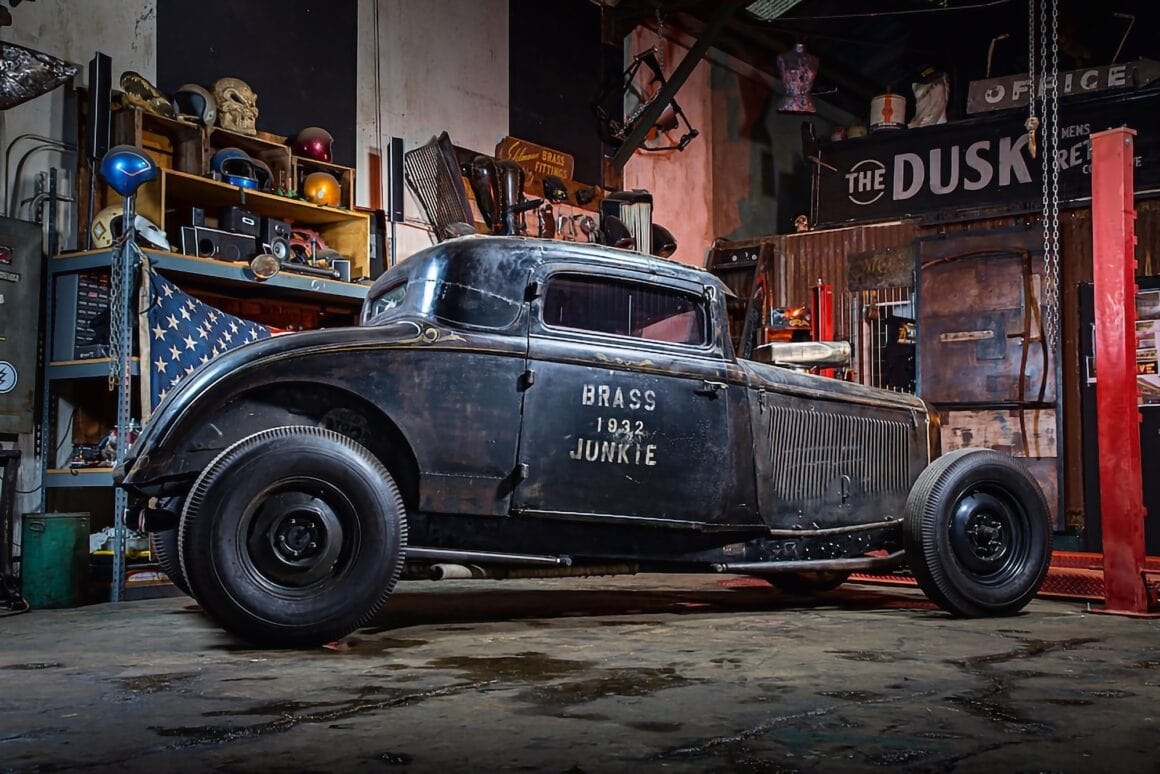 Le secret de ses look’s typiques ? John Moss réalise son travail jusqu’au métal nu sans réparer les emplacements pourris, puis y pulvérise de l’acide pour obtenir de la rouille instantanée et de la détresse dans la peinture. La touche finale est l’ajout de sa substance nommée “Brass Junkie” (brevet en instance). Il vient de se lancer dans la refonte d’un Ford’34 qui devrait apparaître fin 2023 à Huntington Beach et y rester longtemps. Depuis qu’il y a des voitures, il y a des gens qui les modifient pour qu’elles aillent plus vite et qu’elles aient une meilleure apparence.