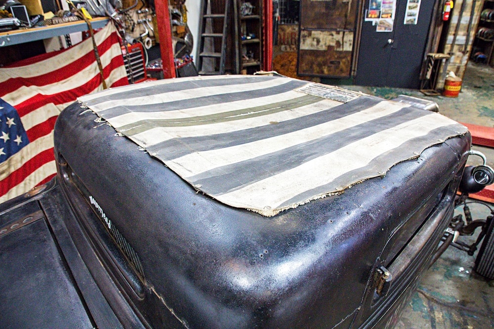 Au cours de l’hiver et du printemps 2006, John a investi 500 heures dans la construction de son Hot-Rat-Rod, expérimentant différentes idées en cours de route : des boîtes à balles de la Seconde Guerre mondiale pouvant servir de boîtier de batterie, un dessus de piston endommagé pouvant servir d’indicateur de clignotant, des bielles comme bras de soutien des phares, de vieilles clés pouvant servir de poignées de porte et des collecteurs fabriqués à partir de tubes carrés avec leurs extrémités grossièrement évasées, de sorte qu’il semble que l’échappement ait explosé à l’extrémité des tuyaux…