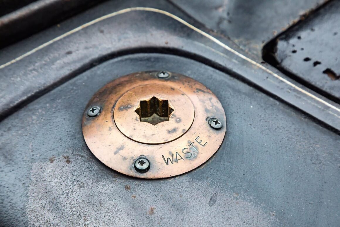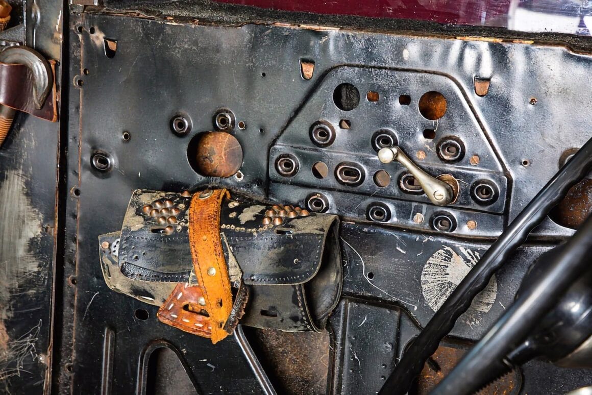 Le ralenti à 1.000 tours était trop haut pour être honnête, il déferlait de partouze… Qui aurait voulu que ce soit lisse ? A l’intérieur, il y avait des poches pour les affaires, le toit en tissu de parasol était usé par le vent… et partout, des bibelots et des pièces d’accastillage en laiton. Regardez les photos de plus près pour apprécier le bric-à-brac issu d’années de brocantes et remarquez-voir que le tunnel de transmission est en fait la partie d’un baril de poudre datant de la guerre de sécession. Au tableau de bord disparate, il n’y a que quelques compteurs significatifs, le reste est à apprécier…