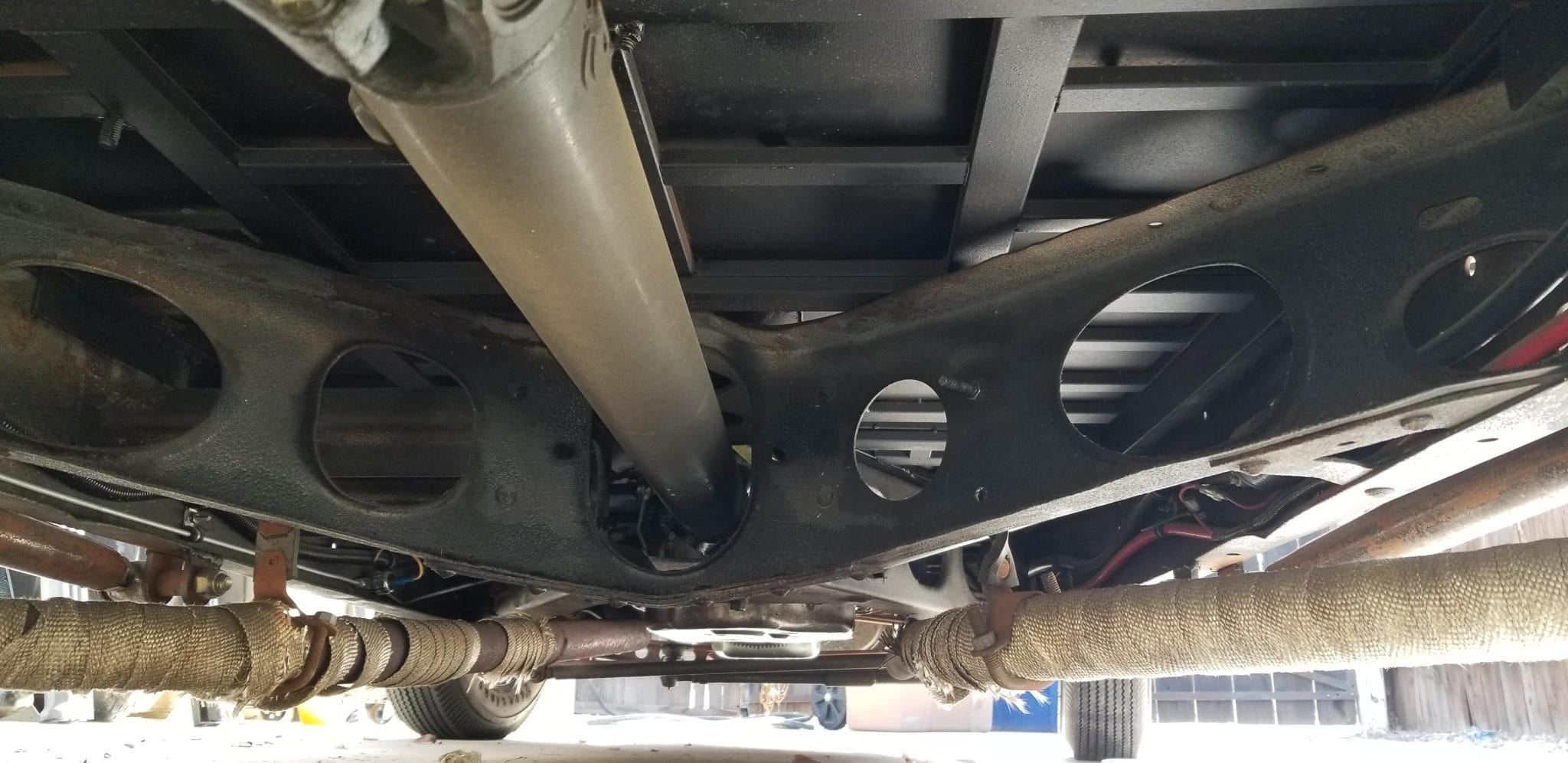 Peut-être que cette Frankenstein-mobile n’était pas si méchante après tout. Quelques bosses et les impacts ont fait frissonner la voiture, projetant des pièces un peu partout sur la chaussée, ce ne devaient pas être des pièces vitales puisque le Rat Rod continuait de fonctionner, quoique le moteur et le capot le faisaient dans des frémissements de phases opposées. Il n’y a pas grand-chose à dire concernant la suspension puisqu’il n’y a pas d’amortisseurs et que les ressorts sont 100% plus rigides que le châssis de la voiture squelette, les pneus faisaient la plupart du travail d’amortissement.