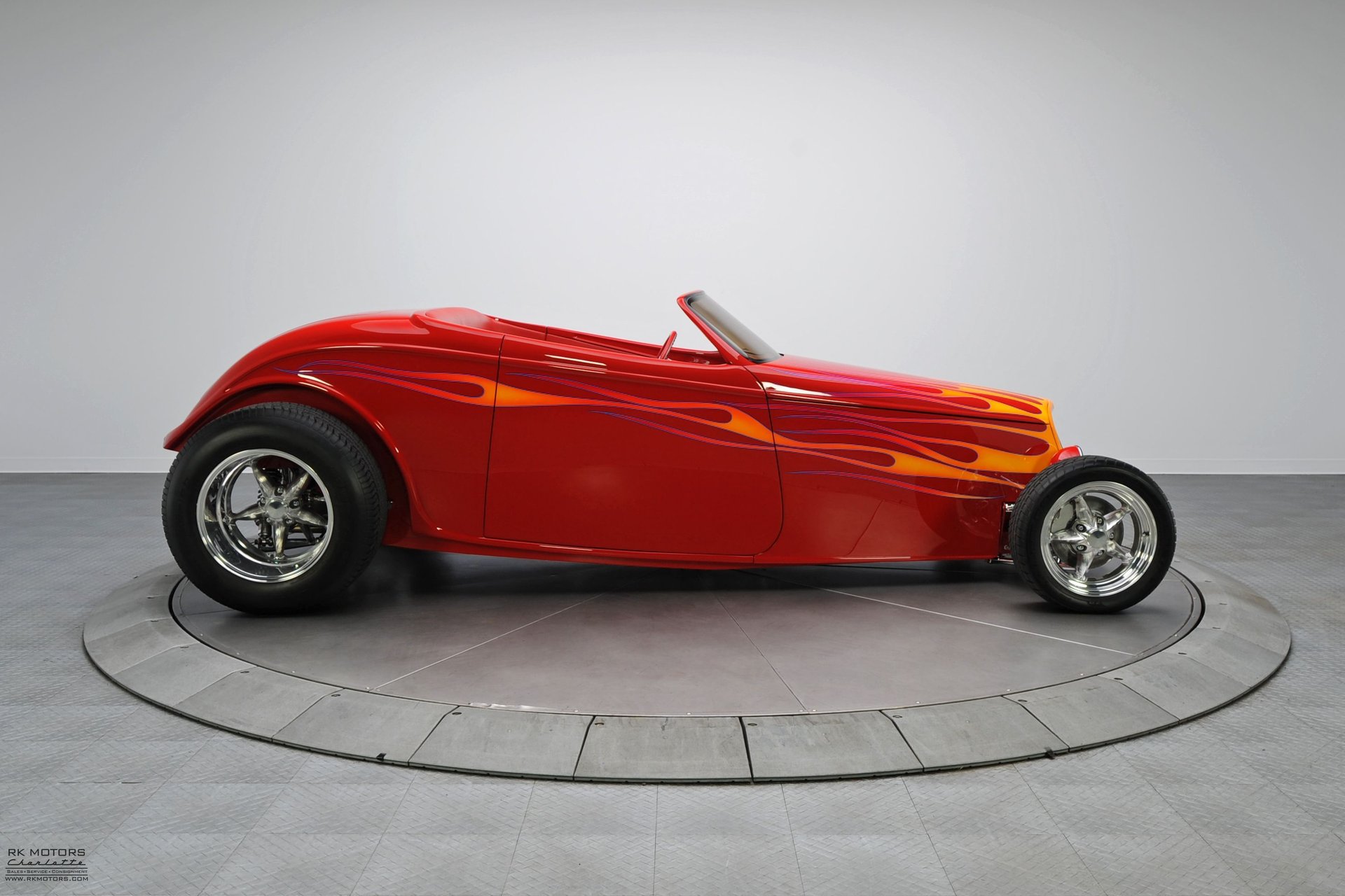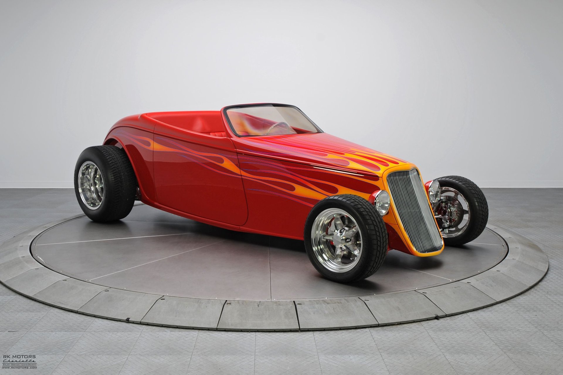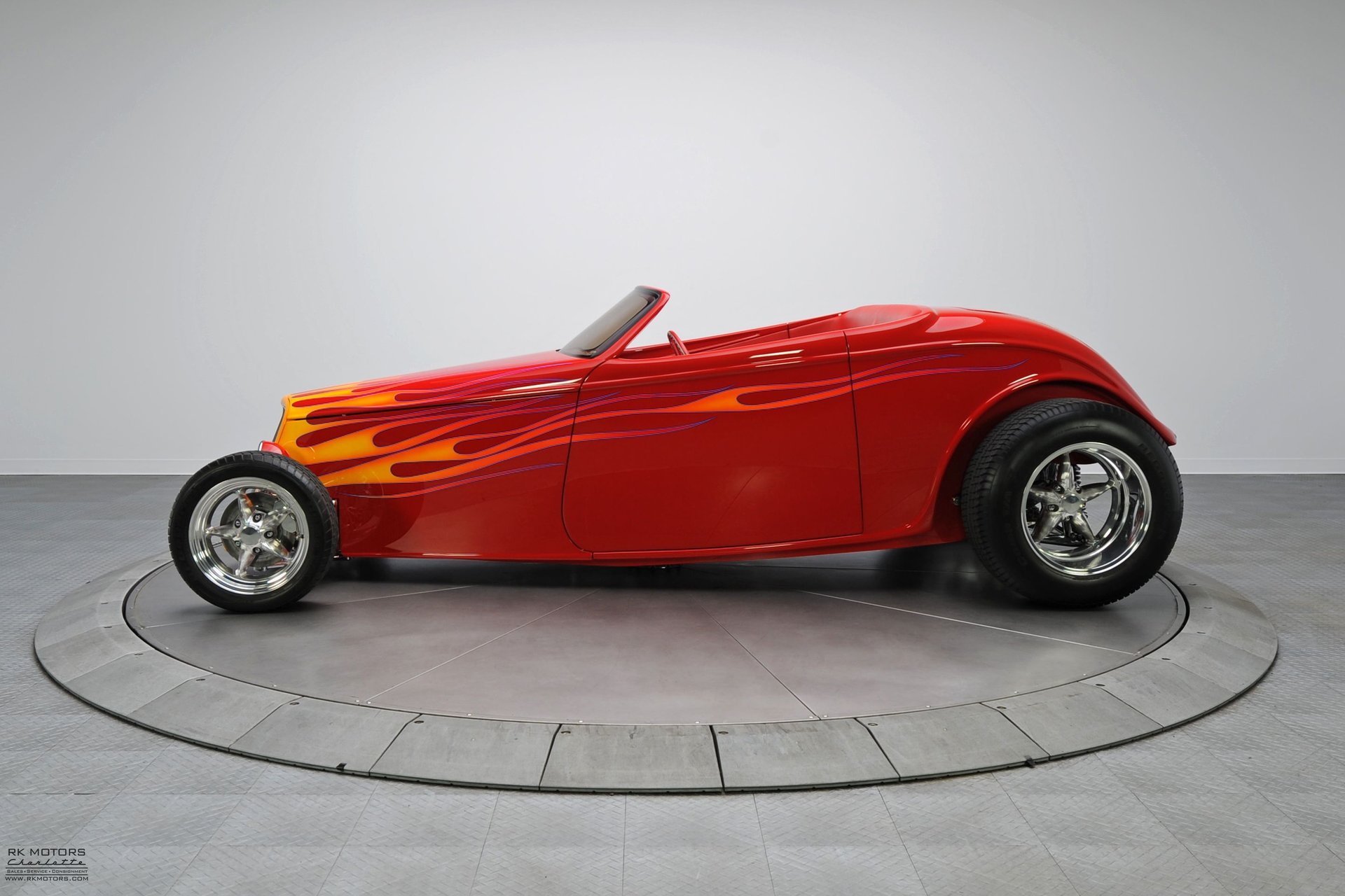 Ce Hot Rod Ford ’33, il a l’air à la fois rétro et futuriste, et son look s’est avéré tellement extrêmement populaire auprès de la communauté Hot Rodding que plusieurs dizaines de Hot Rodders ont voulu avoir le même, avec une autre calandre, des ailes ou pas d’ailes et autres déclinaisons. Mais ce n’est pas parce que la carrosserie est en production (limitée) que ce Hot Rod est ordinaire, loin de là, non… Tout d’abord, c’est Bobby Alloway lui-même qui a construit celui-ci après re-préparation de la coque en fibre de verre à la perfection avant de faire réaliser la peinture par Victory, en 2 étapes…
