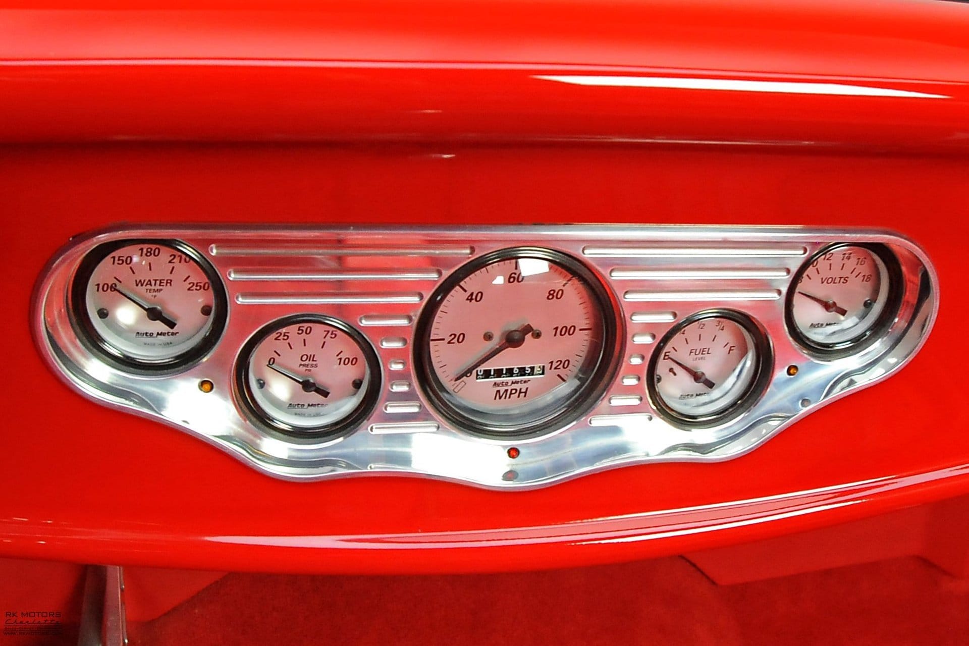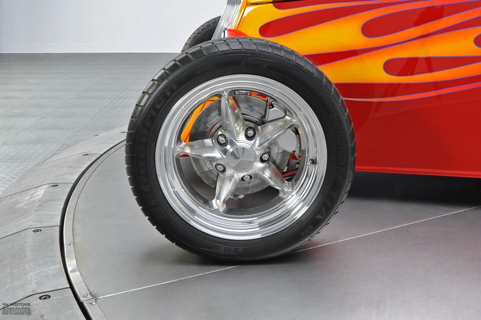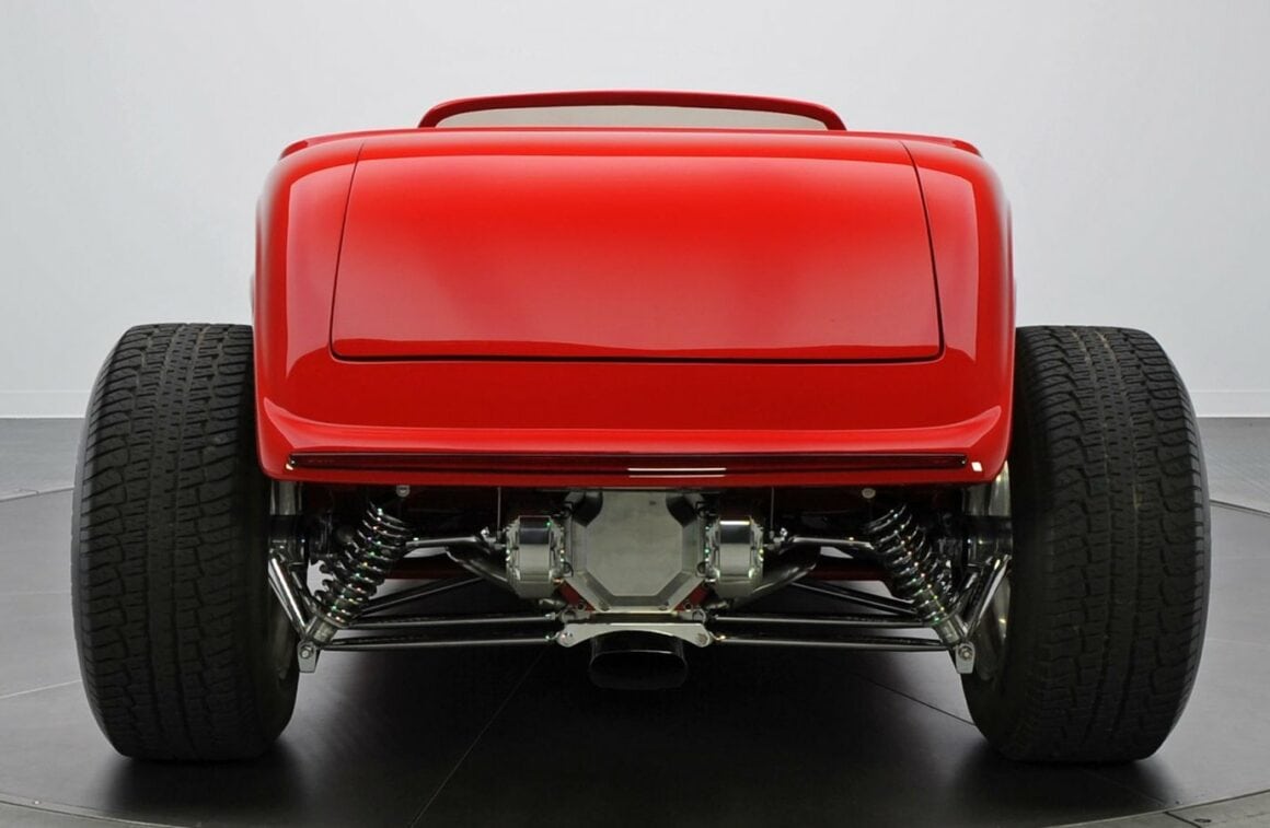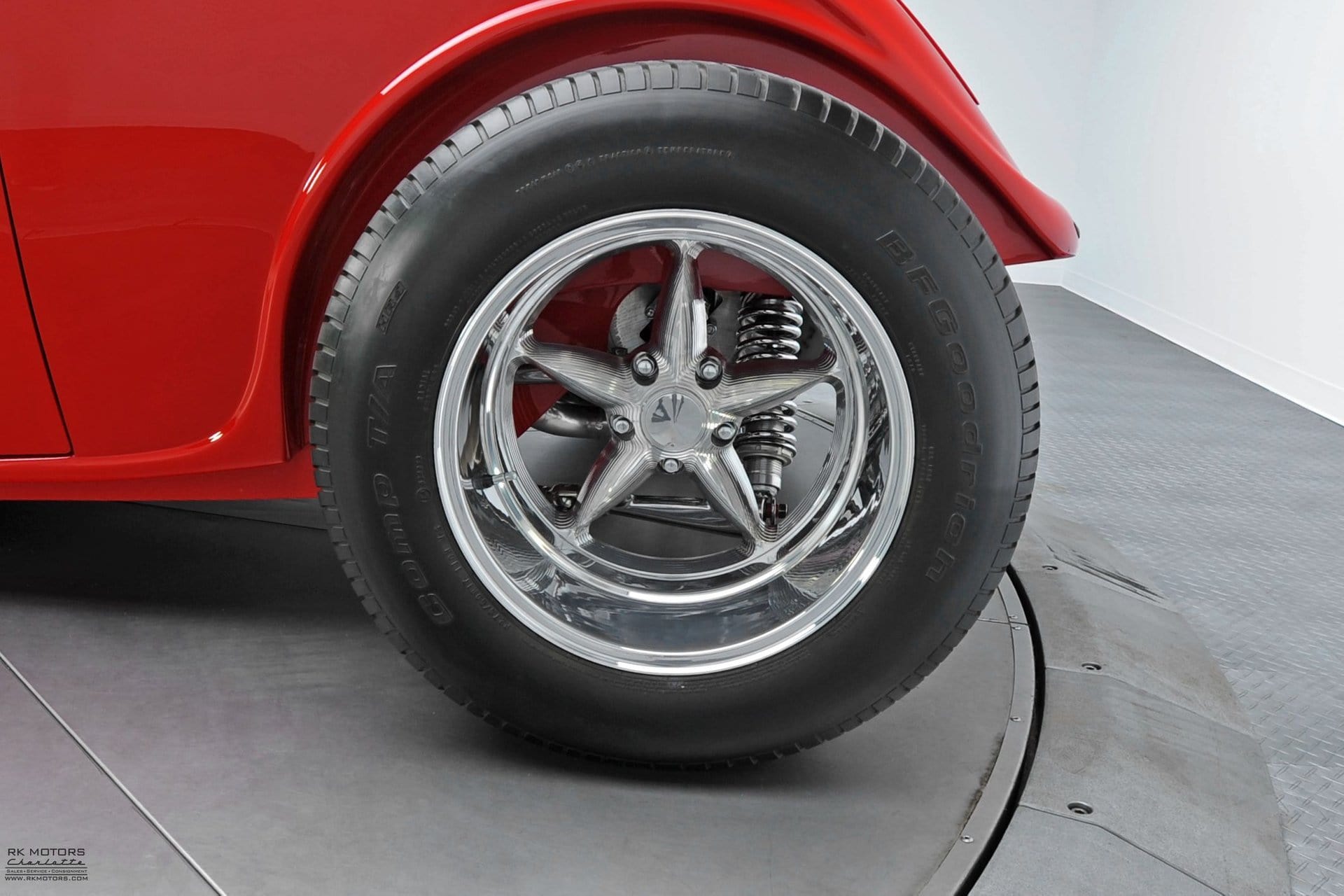 Un pare-brise personnalisé a été créé pour donner à ce Hot Rod “Dazzler” un look moderne qui élimine le capot traditionnel façon B’32 au profit d’un ’34… Le 502ci a été construit par Miller Race Engines, têtes en aluminium, admission et carburateur Holley 800 CFM…. Arbre à cames à rouleaux hydrauliques Comp Cams, alternateur chromé, collecteurs longs tubes, caches soupapes soupapes et filtre à air ont été enflammés pour correspondre à la carrosserie par les mêmes gars qui ont fait le travail de peinture… Et pour une durabilité à long terme, un look général de qualité d’exposition.
