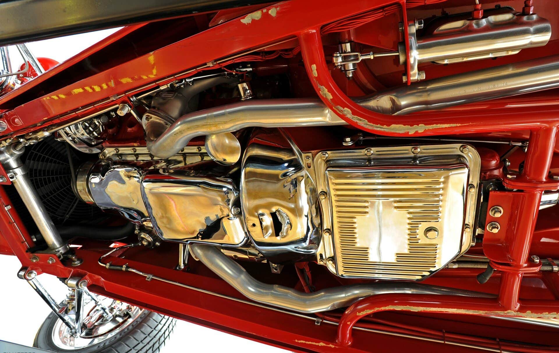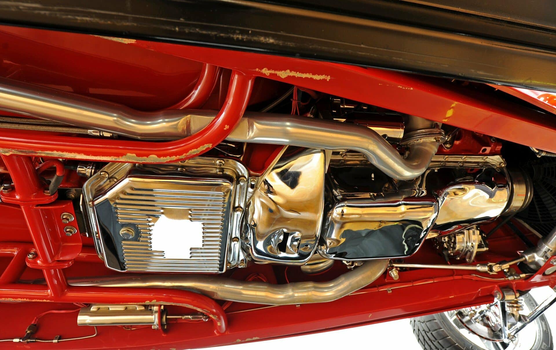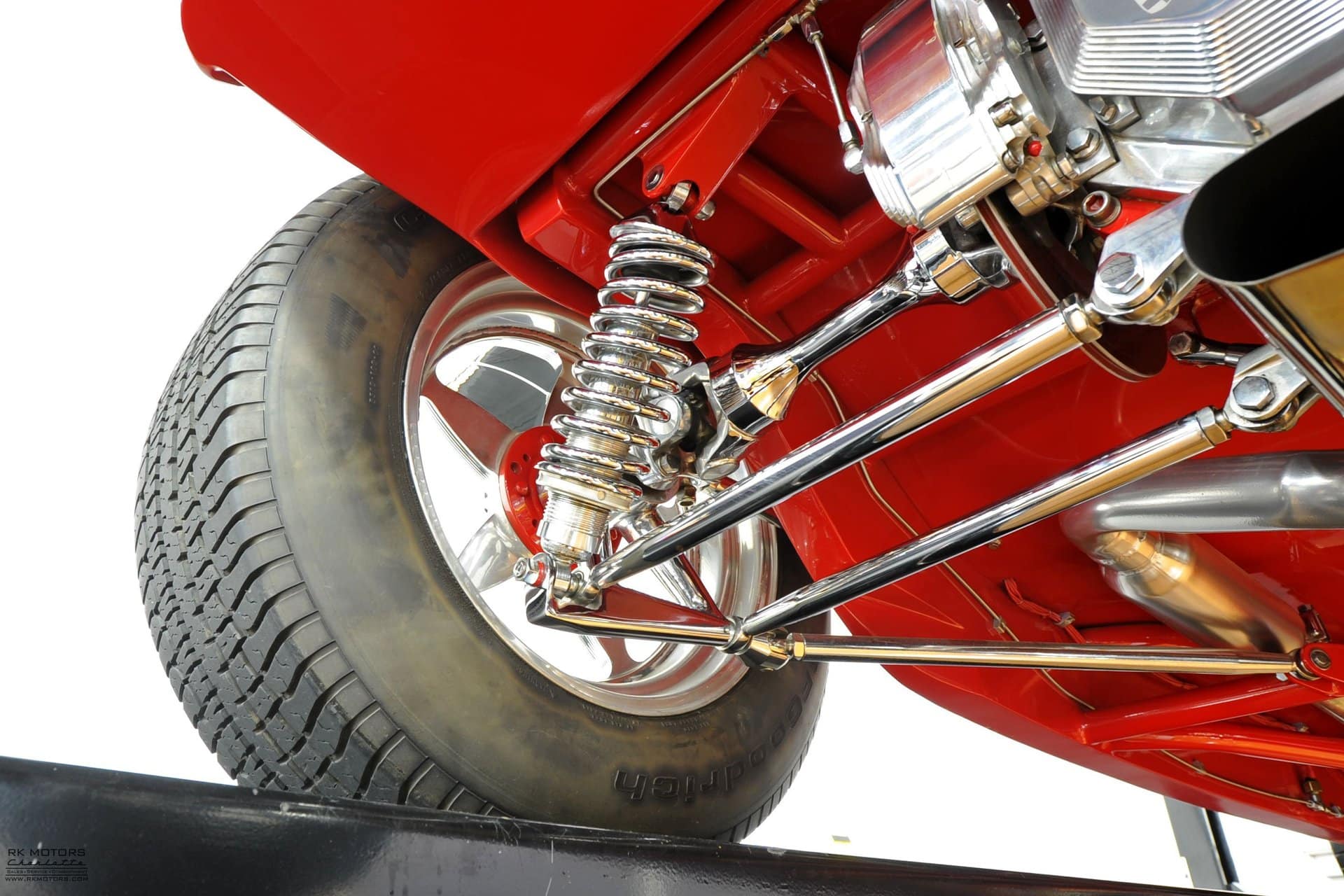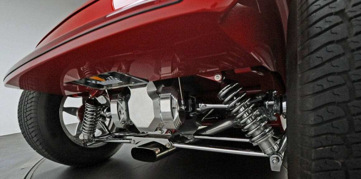 Big Bloc V8 de 502ci retravaillé dans les moindres détails qui a été assemblé par Miller Race Engines… Transmission automatique GM 350 Turbo-Hydramatic 3 rapports équipée d’un convertisseur de décrochage B&M à 3 500 tr/min… Pont Ar reconstruit en 3.73… Suspension Av et Ar Heidt reconstruites par Boyd Coddington et Bobby Alloway… Freins à disques Wilwood aux quatre roues… Jantes Boyd Coddington 15po Av et 17po Ar… Carrosserie créée par Bobby Alloway fabriquée par Rat’s GlassModifications… Et c’est loin d’être terminé…