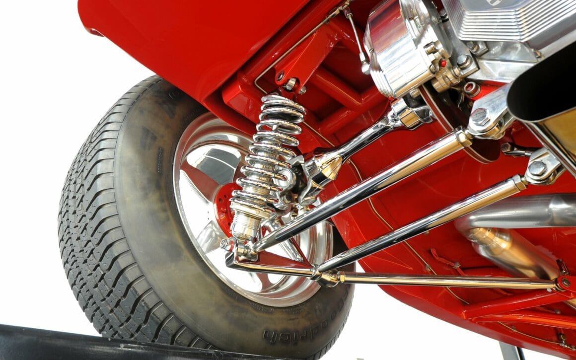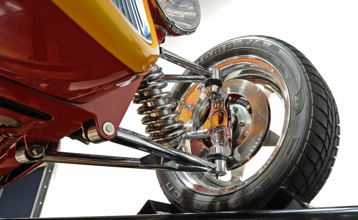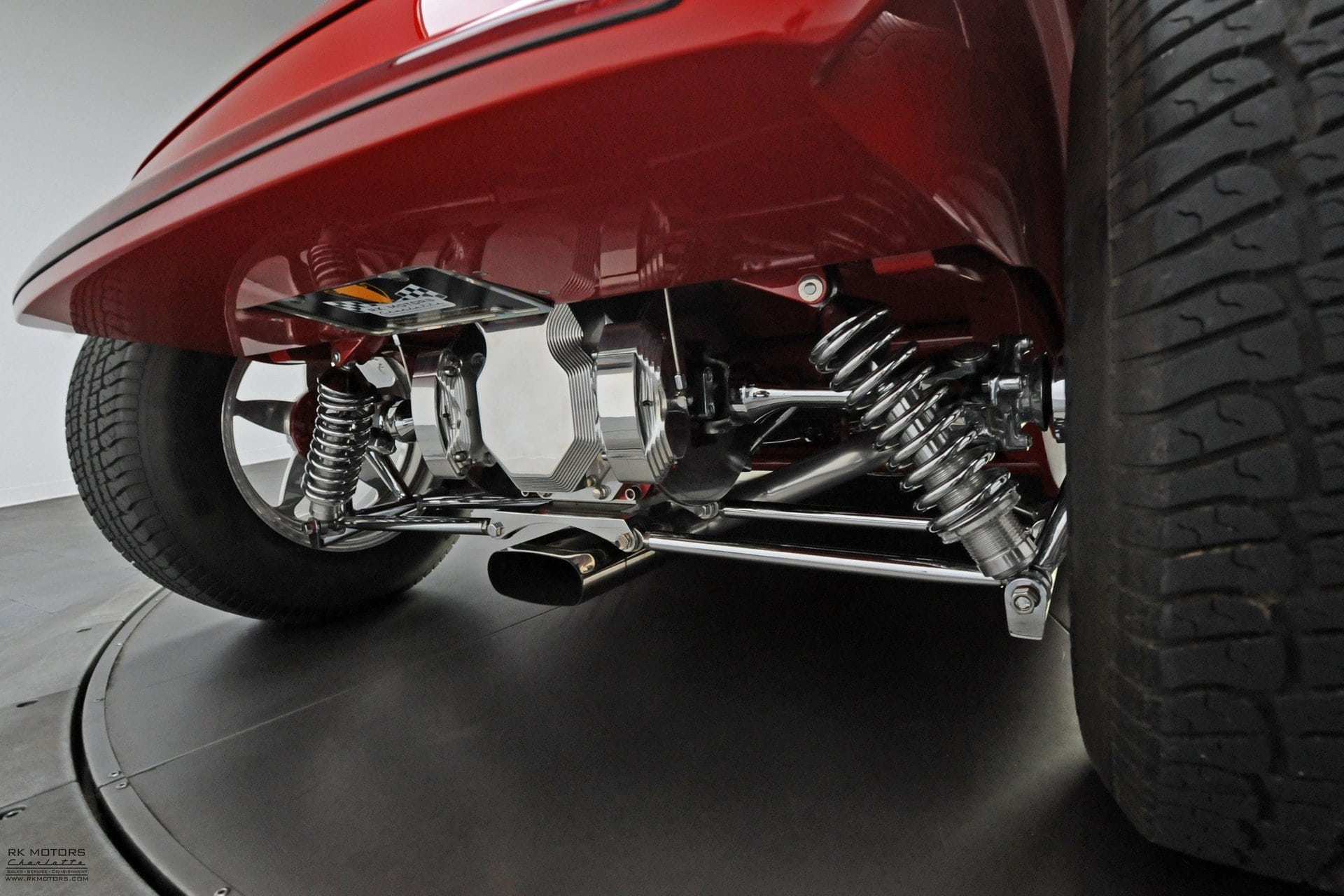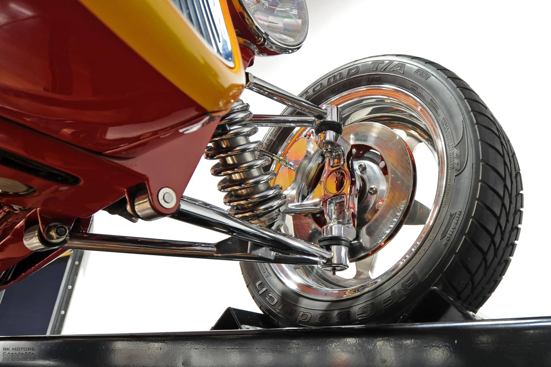Big Bloc V8 de 502ci retravaillé dans les moindres détails qui a été assemblé par Miller Race Engines… Transmission automatique GM 350 Turbo-Hydramatic 3 rapports équipée d’un convertisseur de décrochage B&M à 3 500 tr/min… Pont Ar reconstruit en 3.73… Suspension Av et Ar Heidt reconstruites par Boyd Coddington et Bobby Alloway… Freins à disques Wilwood aux quatre roues… Jantes Boyd Coddington 15po Av et 17po Ar… Carrosserie créée par Bobby Alloway fabriquée par Rat’s GlassModifications… Et c’est loin d’être terminé…