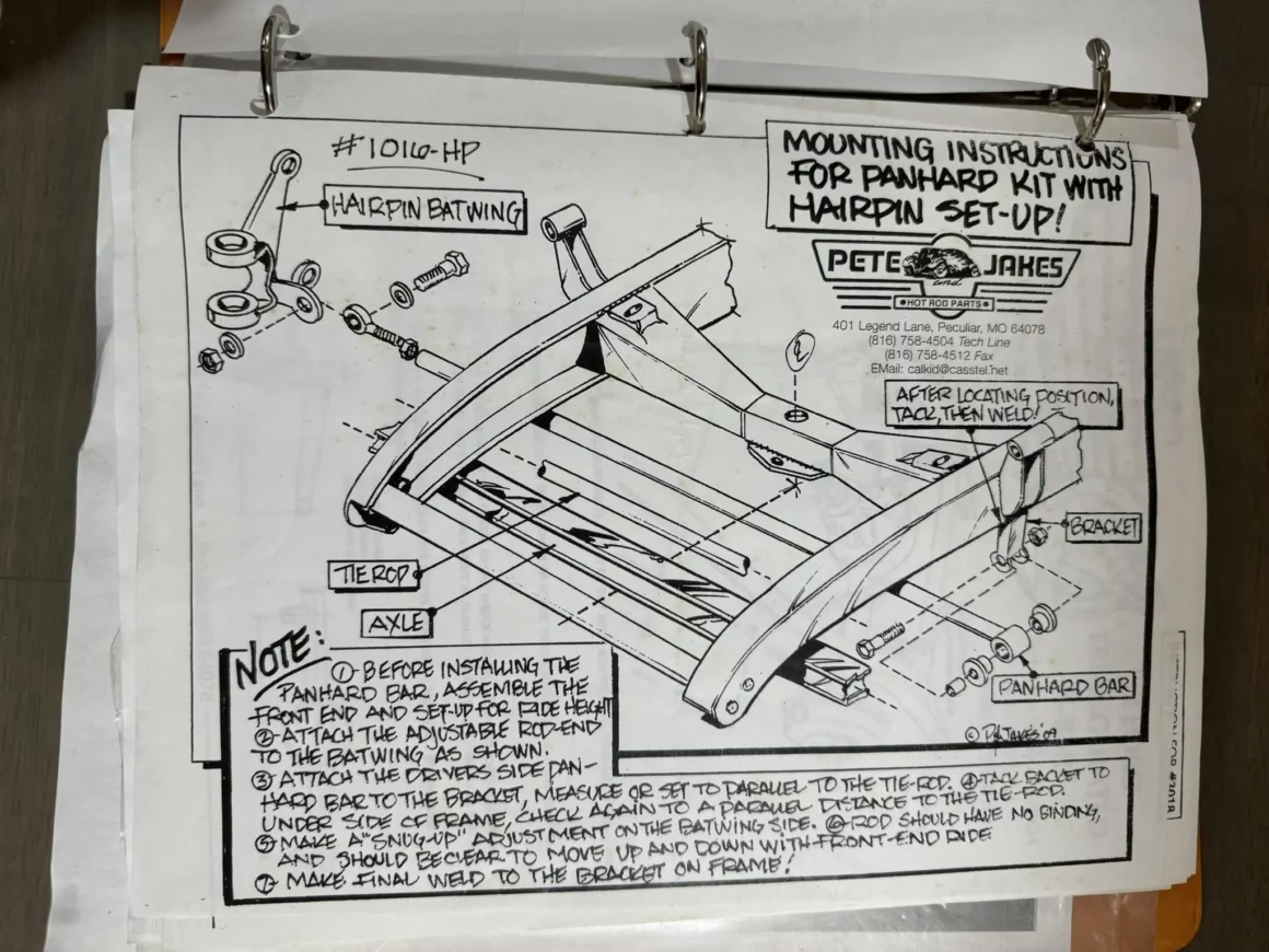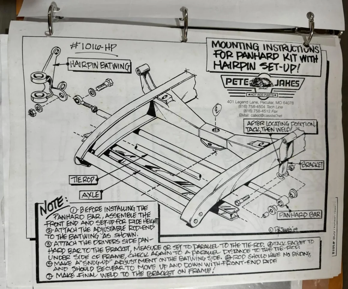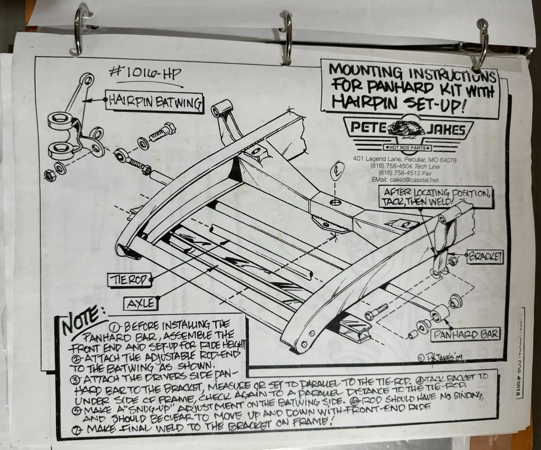 Peint en noir, la carrosserie a été construite sur un châssis Pete & Jake entièrement caissonné, qui est équipé d’un essieu avant surbaissé percé de trous-trous-trous, d’une barre Panhard, d’une suspension arrière triangulée à quatre barres, de jantes Halibrand 15po enveloppés de pneus Cooper Endeavour 195/55 à l’avant et Michelin LTX M/S à l’arrière , de tambours avant à ailettes.