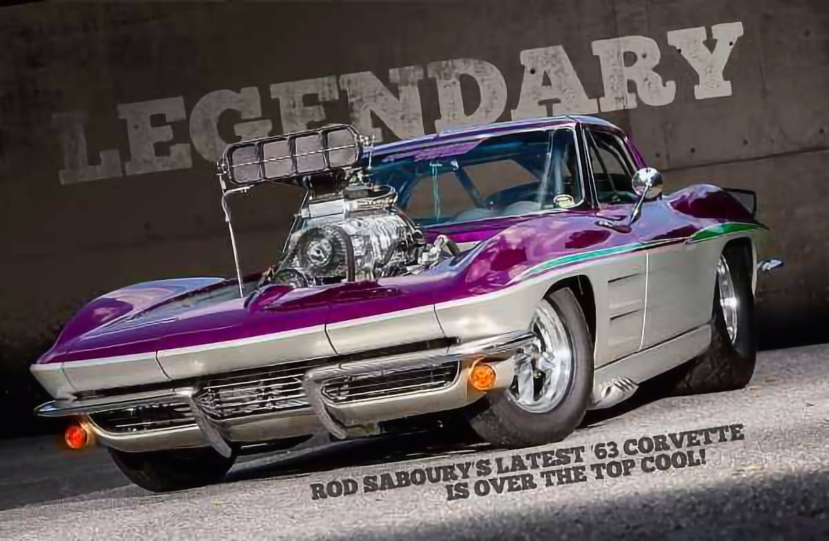 Tout est possible si on a les moyens financiers adéquats… Après un an, “Rad Rides by Troy” a perçu un demi million de dollars pour en faire pour en faire une Corvette 1963 Pro Street-Drag split-Window (la vitre lunette arrière en 2 parties). Le bolide qui crache maintenant véritablement les flammes de l’enfer et grille plus qu’il ne fume les pneus arrière, n’avait jamais été censé devenir un tel monstre d’apocalypse après 10 ans d’avoir été un élément de décor pour attirer les foules appréciant les côtes à l’os venant des réputés abattoirs de Chicago…