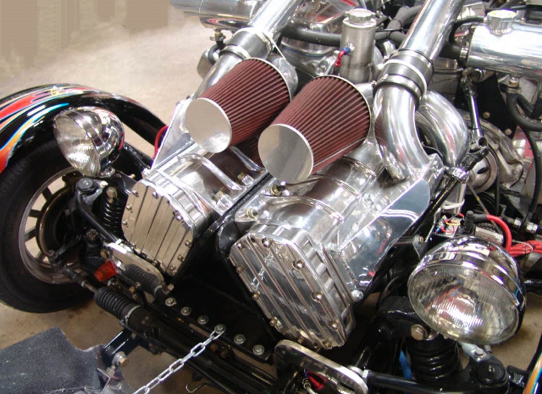 L’intérieur est également aussi unique que le reste de la voiture et présente (vous l’avez deviné) deux groupes de compteurs de Chevy Impala 1959, un pour chaque moteur, avec un indicateur de vitesse monté au centre. L’attention aux détails est en fait assez impressionnante. Le vendeur affirme qu’ils sont prêt à terroriser mes voisins/voisines, les services de police locaux, ainsi que tous les écologistes attentionnés survivant à proximité. Avec tout cela, mes options de survie ne seront limitées que par la capacité en carburant en rapport des 80 (voire 120) litres/100kms. Typiquement, on pourrait penser qu’un jouet de cette ampleur a nécessité une équipe d’ingénieurs et un temps sans fin. Heureusement, tout ce qu’il a fallu, c’est un seul être humain avec une vaste imagination et un peu de magie… C’est l’une des œuvres d’art les plus importantes que le monde ait jamais vu (gag !)…
