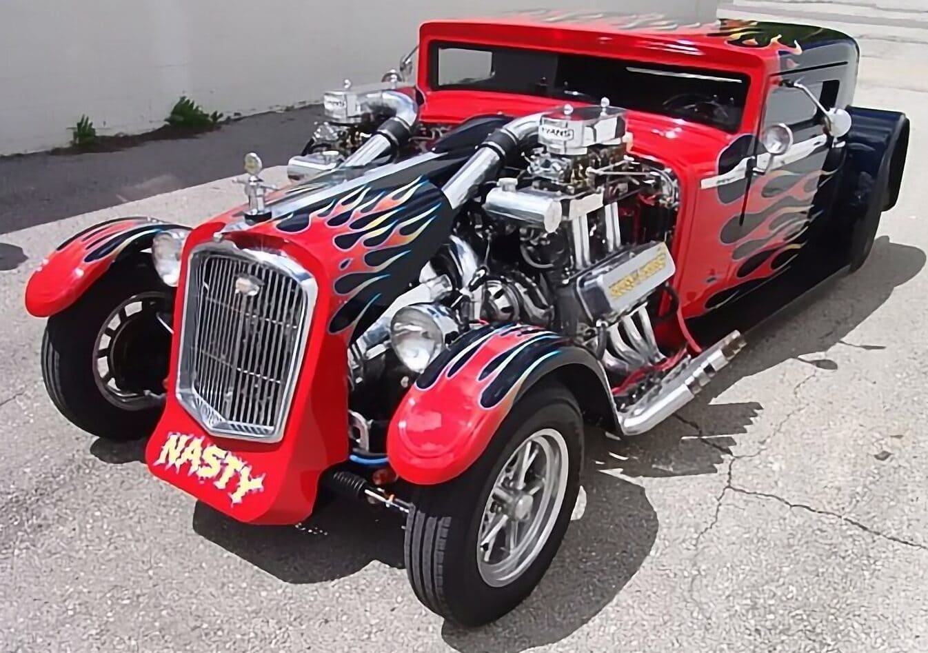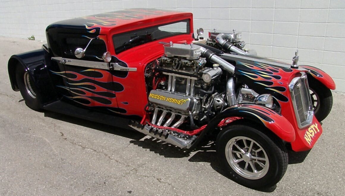 Il s’agit de m’offrir ce Hot Rod Hudson Hornet 1600cv, deux big blocs 468ci V8 accolés, d’un total de 936ci et 16 cylindres, équipés de deux Blower’s… Je suis en effet fatigué des Mustang’s, Camaro’s et Corvette’s ainsi que des Hot Rod’s trop normaux pour être honnêtes… J’ai en effet découvert “CE” super Hot Rod ultime…. Il est totalement et savoureusement “Politiquement incorrect”, il va m’inciter (par obligation rédemptrice) à abandonner toutes les responsabilités du vieux débris (de 75 ans le 16 mai 2024) que je suis devenu, et me f… totalement des coûts de carburant de même que de toutes les perceptions d’économies… Sa paire de Blower’s a autant d’effet sur moi qu’une super paire de gros seins fermes et voluptueux et, de plus, il tenterait même le diable avec ses échappements libres, ses quatre quadruple corps Holley totalisant 2.400 cfm de respiration pour 1.600cv, et ses deux transmissions Turbo 400…