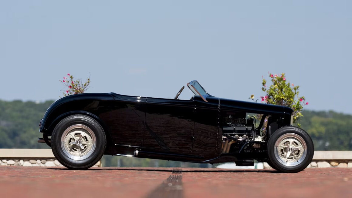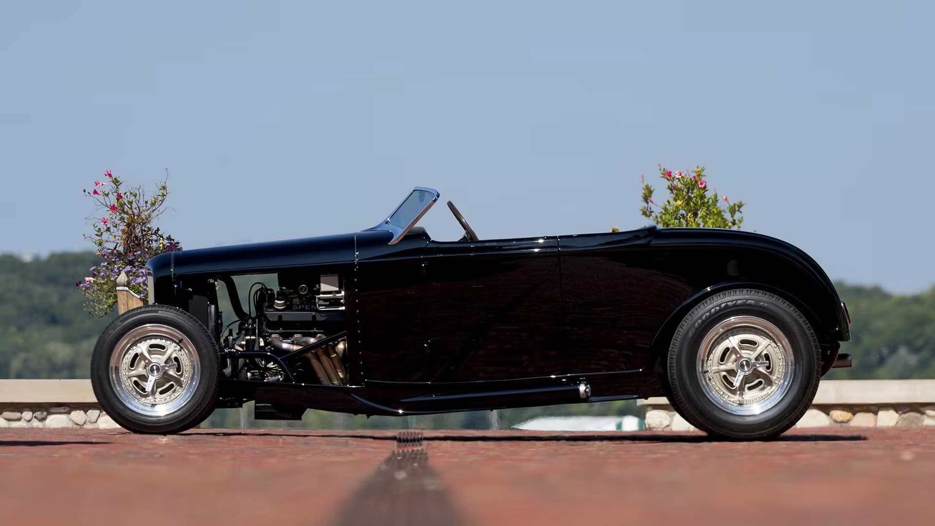 Si vous ne me croyez pas, allez vous branler, car je l’ai gentiment raconté… En faits, le sujet Hot Rod ici traité vient d’un résultat de recherche m’ayant amené à ce Hot Rod dont je vais ici causer parce qu’il doit avoir quelques détails de look qui n’ont pas été apprécié des acquéreurs potentiels lorsque ce Hot Rod a été mis en vente aux enchères. chez Mecum et ne s’est pas vendu malgré une enchère de 450.000$… Le manque de longueur du capot-moteur et le trop de longueur de l’empattement par exemple… Je pense que c’est aussi à cause du pare-brise qui est trop dissemblable au look général… C’est un détail !
