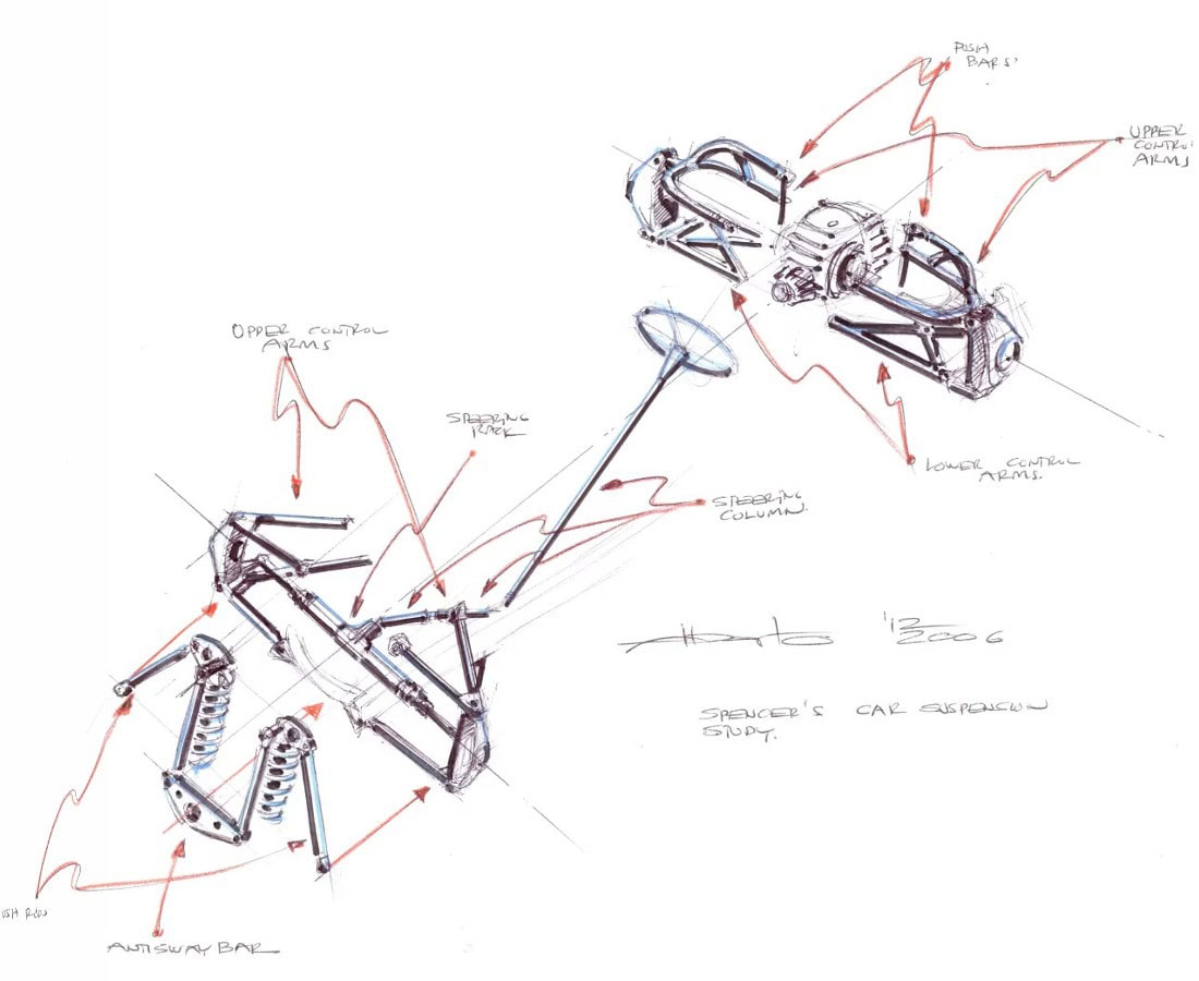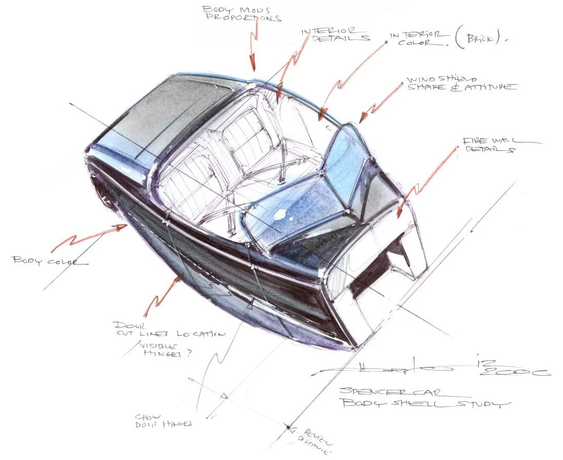 Un grand moment, quoique dérisoire et éphémère comme tous les grands moments. Mais ce n’était pas la fin de l’histoire. Il y a eu un autre début fin du siècle passé… Spencer alors toujours vivant, avait commencé à travailler pour son ami Darrell Brunn, sur une version mise à jour de son célèbre roadster, qui suivrait les traces de sa première voiture customisée tout en bénéficiant de plus de quatre décennies d’expérience, d’innovation et de design que Spencer avait accumulées depuis ces débuts. Les rêves, encore et toujours les rêves…