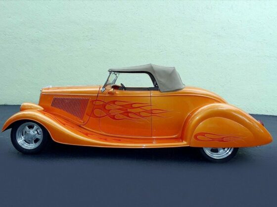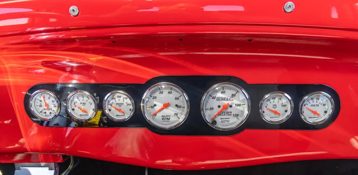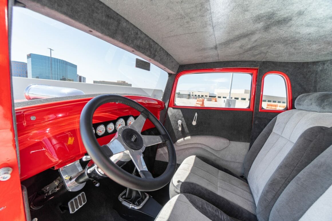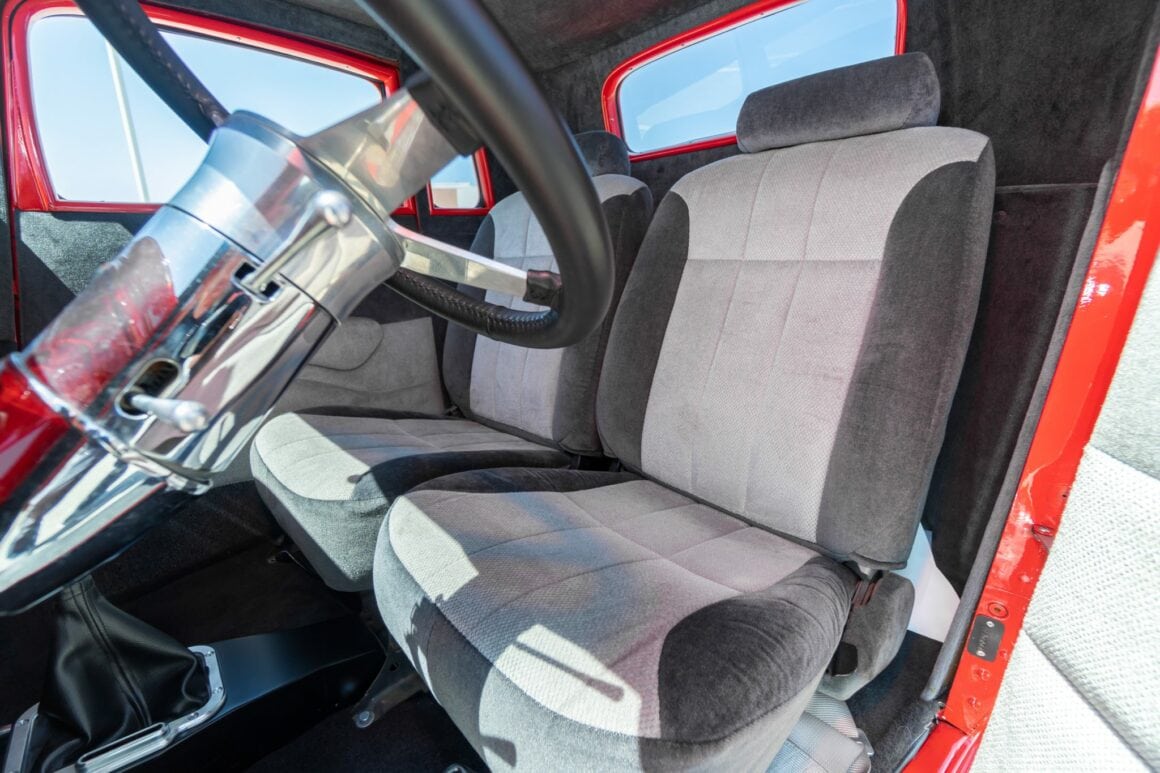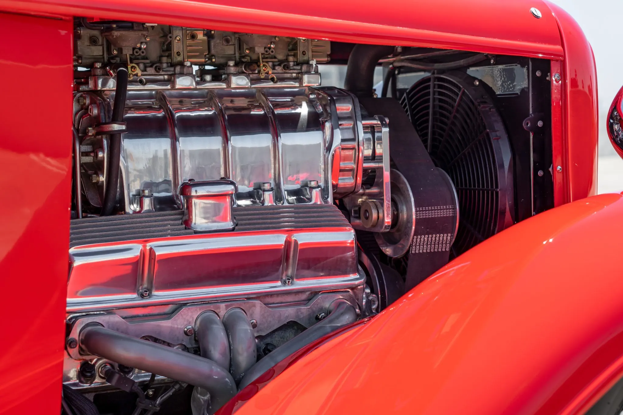 Ce Rod présente une carrosserie en acier avec des ailes en fibre de verre. La puissance est fournie par un V8 stroker 383ci équipé d’un compresseur Roots, de deux carburateurs Holley, de culasses en aluminium et d’un allumage MSD. La construction intègre également une suspension avant indépendante, des freins à disque aux quatre roues et un différentiel à glissement limité. Les travaux de remise à neuf en 2022 comprenaient le remplacement de la transmission 700-R4, du réservoir de carburant et de la courroie du Blower en plus d’effectuer un travail de réglages des soupapes…