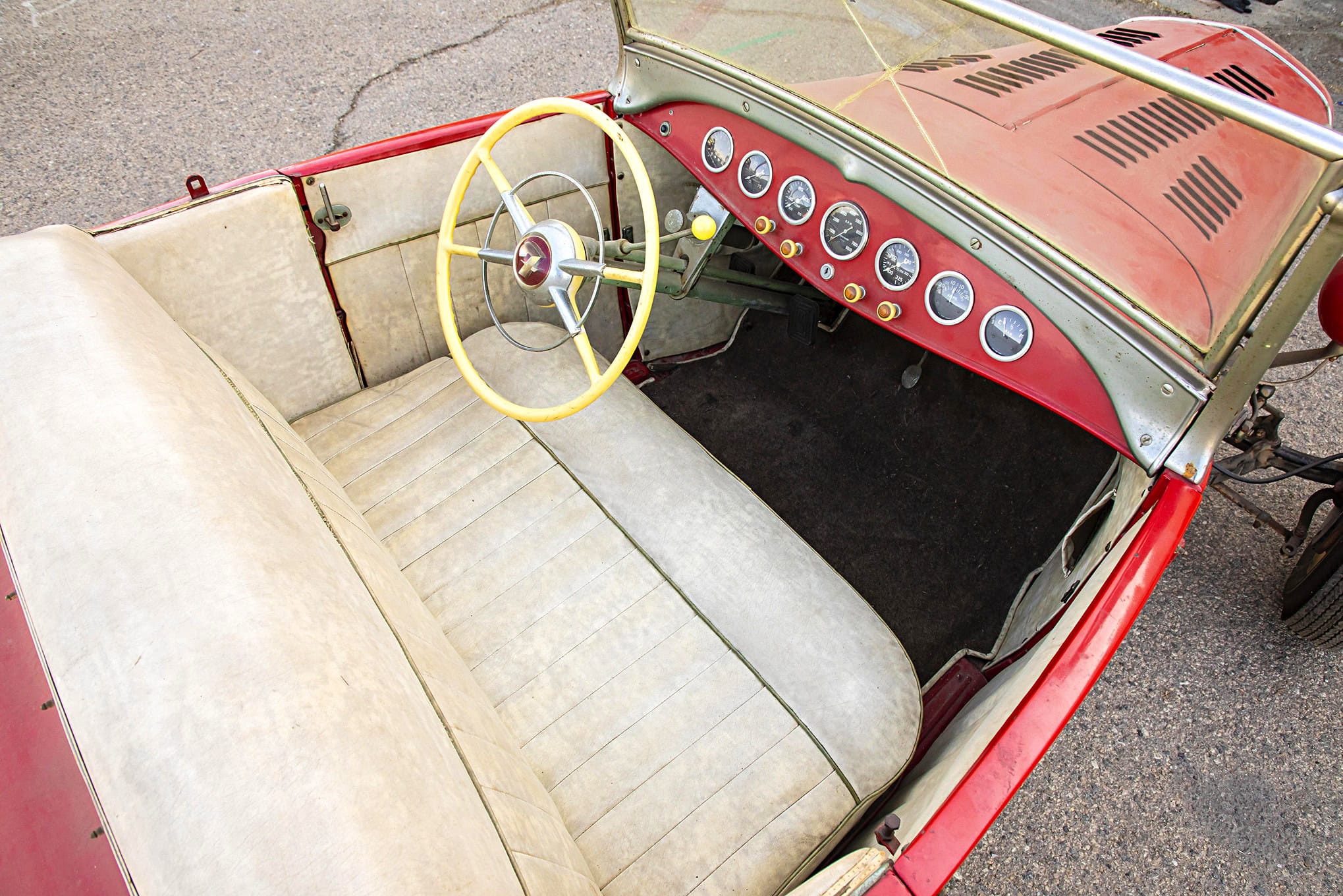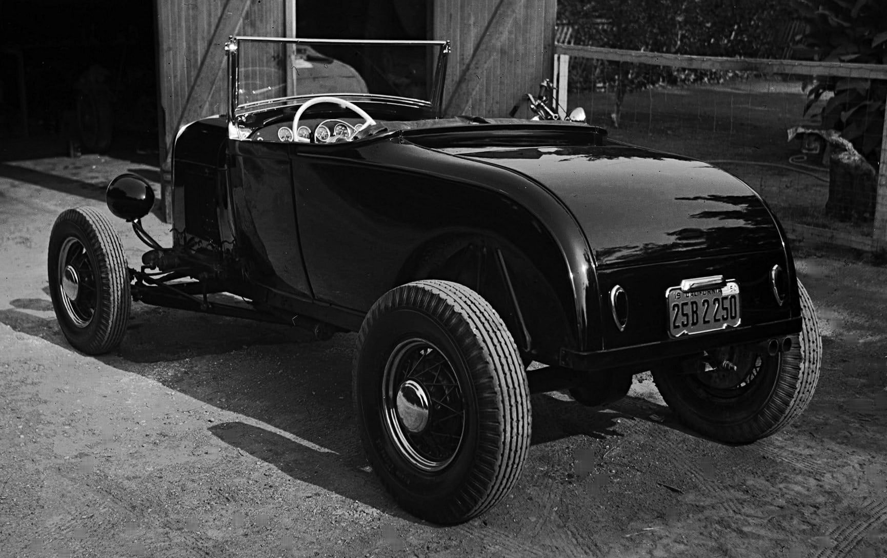 Rien ne vient confirmer ni infirmer, alors que la situation présente, tend à nous faire tout accepter sans preuve… Mais soudain, le Hot Rod B’32 Ford devient un Hot Rod Roadster modèle A de 1929… “Plus vous regardez, plus vous voyez”, nous a dit David Stoker alors que nous en faisions le tour. Donc pas de confirmation dans ce qui aurait du être une précision anecdotique… Qui dit cela ? Bill Grant, David et son père, Terry, qui dirigent Stoker’s Hot Rod Factory à Upland, en Californie, qui étaient des amis de Tom. Juste avant son décès en 2011, Tom aurait demandé aux gens pré-cités de chez Stoker’s Hot Rod Factory de remettre le vieux Hot Rod Roadster en état et marche, afin que sa famille puisse le conduire après son décès… Ces gens causent avec plus de raison : “Tom a construit la voiture en 1949, l’a pilotée sur les lacs asséchés, l’a emmenée à Bonneville, mais l’a ensuite garée vers 1956 ou 1957”, dit Bill Grant. “Tom est resté intéressé par les hot rods et est allé avec moi au L.A. Roadsters Show à chaque fête des pères pendant 40 ans”... Mais son roadster est resté garé… Ainsi, aujourd’hui, ce modèle A qui n’est donc pas un B, est un témoignage de l’ingéniosité d’un jeune Hot Rodder talentueux d’après-guerre