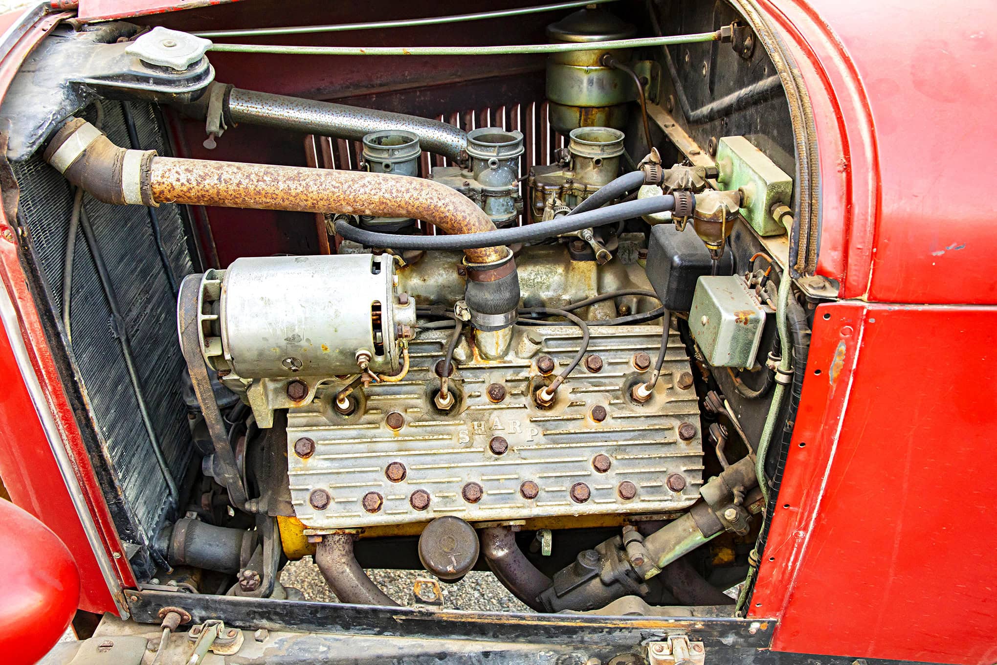 Le Hot Rod est retourné dans le garage. Ce n’est que lorsque Tom a demandé aux Stokers de la remettre en marche alors qu’il gisait sur son lit de mort que la voiture est finalement réapparue… “Terry et David ont effectué une remise à neuf. Coker Tyres a fourni des pneus Firestone pour remplacer les pneus d’origine, car des morceaux de pneus se détachaient lorsqu’on poussait le Hot Rod”, m’a expliqué Terry qui a reconstruit les carburateurs en nettoyant leurs passages internes, en prenant soin de ne pas perturber leur patine externe. Speedway Motors a fourni un maître-cylindre de frein, des cylindres de roue et des tuyaux pour faire fonctionner les freins ; Bill McGrath du magasin Early Ford a fourni des mâchoires de frein… Au moment d’immortaliser le Hot Rod : “Le moteur démarre, il va tourner” m’a dit Terry, “mais il est fatigué”... Nous avons choisi de pousser le roadster pour les photos. Les Stoker sont des gardiens actifs de la voiture, ils la montrent chaque fois que possible. Ils veulent que les gens la voient, l’apprécient pour sa valeur historique et aient une idée de qui était Tom Morris et de tous les trucs qu’il y a mis en place. De même, Bill Grant est “heureux de répandre la bonne parole, la bonne nouvelle” à propos de son vieil ami…
