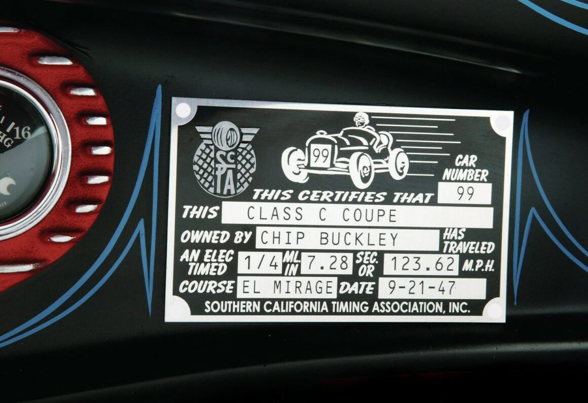 C’est un autre jeune des années ’60 qui avait créé un club traditionnel de Hot Rods, les Lucky Devils… Chip a aidé Buddy à la construction de ce Hot Rod, il en est tombé amoureux et l’a finalement acheté… Chip la décrit comme l’une de ces voitures à double prise, ce qui signifie que vous la voyez, mais que vous devez y jeter un autre coup d’œil, en raison de son attrait pour les yeux car elle a ce qu’il appelle le “Wow facteur”. Plus de plaisir pour les yeux ! La carrosserie à trois fenêtres en fibre de verre a été fabriquée par l’ancienne Downs Manufacturing par son Boss George “Desert Head Gorgeous” qui a conservé les dimensions d’origine et tout habillé à la perfection rétro d’un capot Deuce d’origine et de phares E&J.