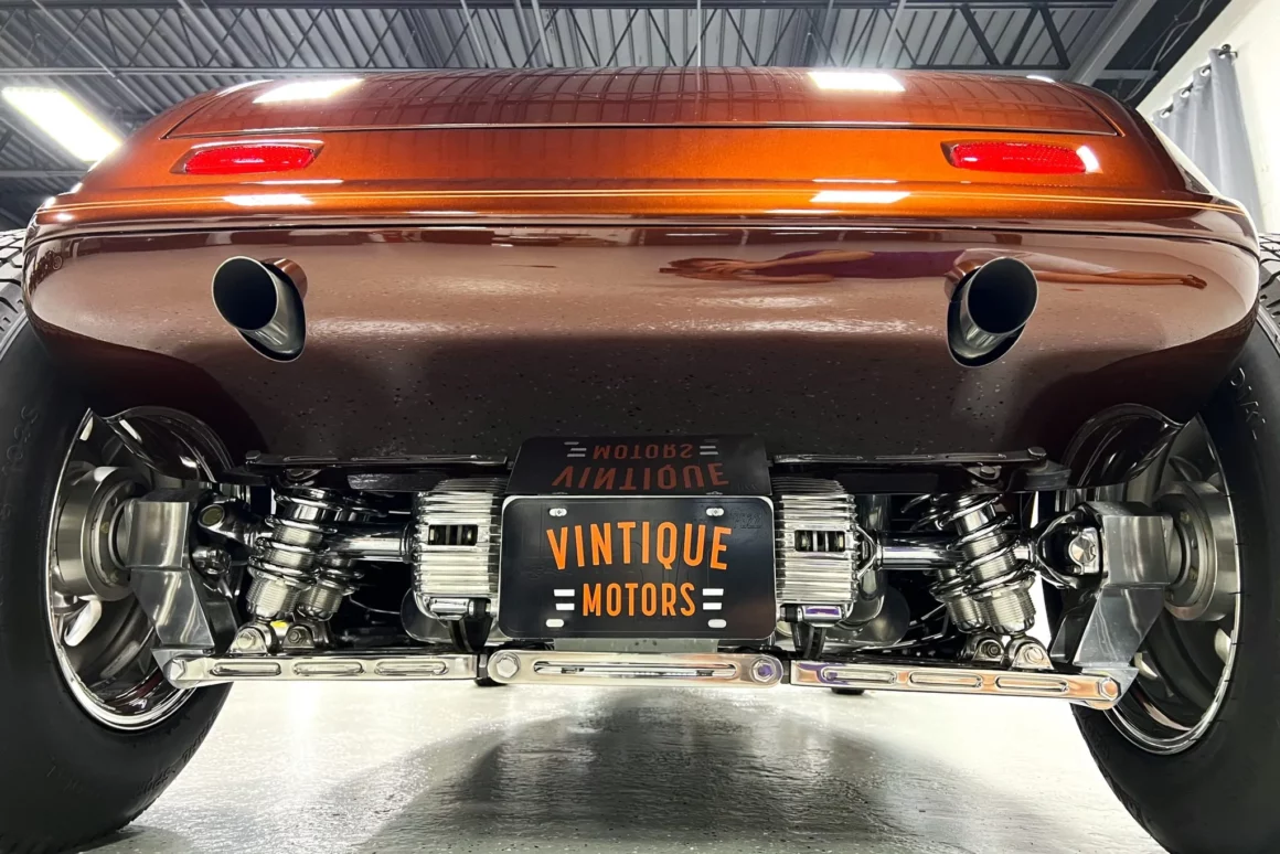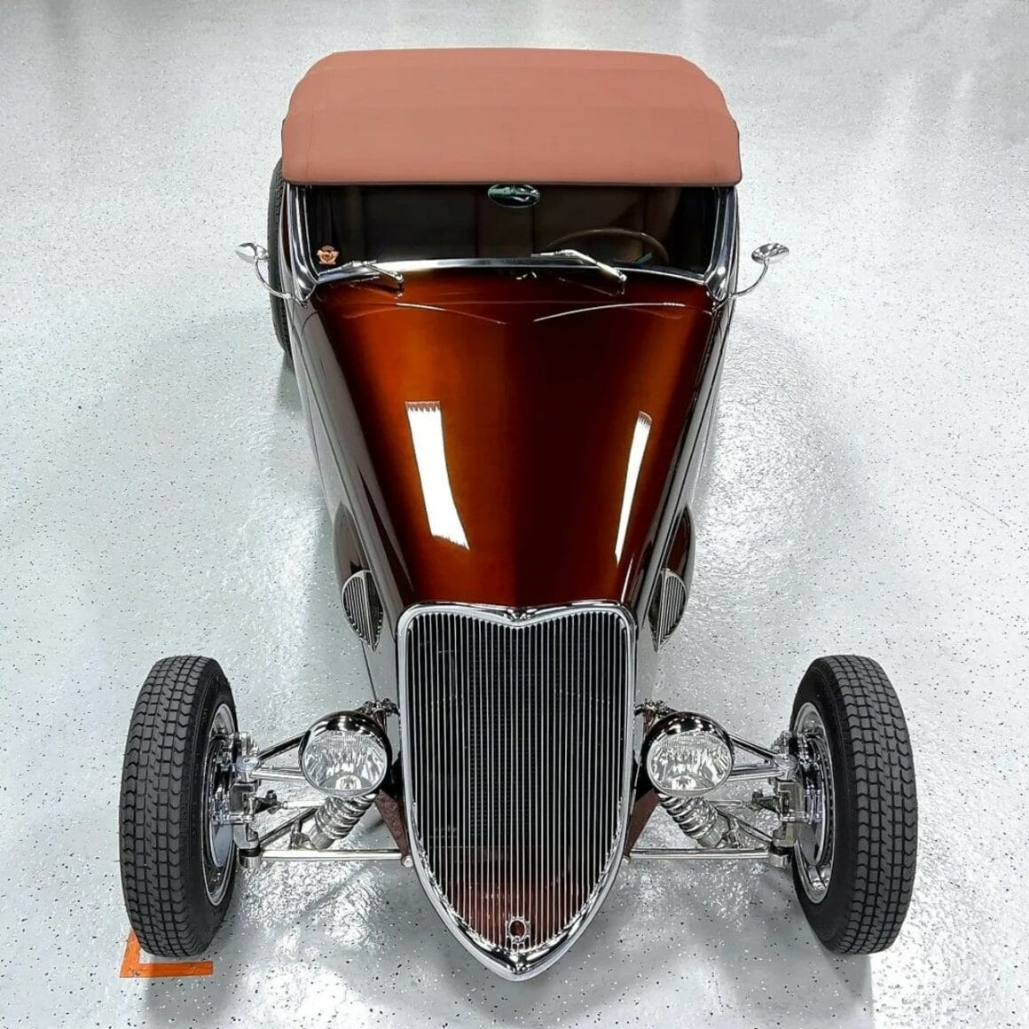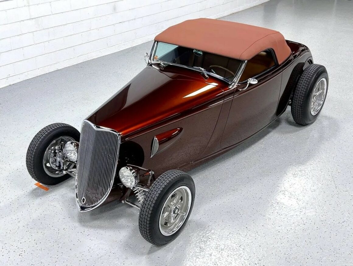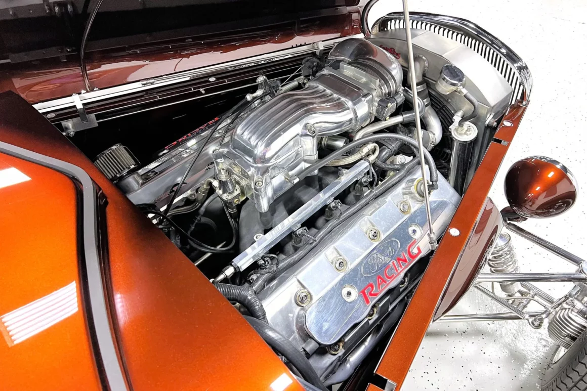 Pour ce qui en est de ce Hot-Rod, son moteur est un V8 Ford de 4L6 litres jumelé à une transmission automatique à trois rapports (incestueux), et ses caractéristiques complémentaires comprennent une capote rabattable, une configuration de suspension indépendante de “Kugel Komponents”, des freins à disque aux quatre roues, des jantes réplica de style “Halibrand”, une sellerie en cuir, des vitres électriques et un système de climatisation “Vintage Air”.