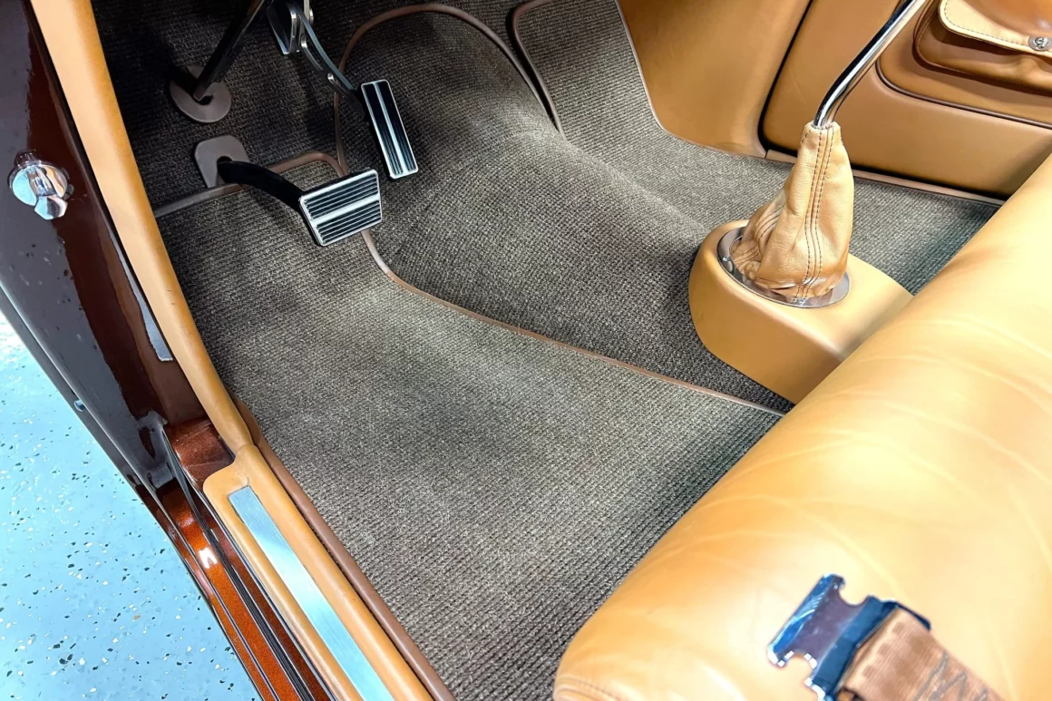 Pour atteindre ces valeurs le volant de style banjo et le tableau de bord en métal tourné sont des Plus-Plus surtout avec les compteurs dont le kilométrique n’indique que seulement 399 miles… Une réelle affaire même à 100.000 ! J’oubliais d’écrire que le coffre a été garni pour correspondre à la sellerie intérieure et dispose d’un accès au réservoir de carburant en acier inoxydable, qui est équipé d’une pompe à carburant électrique.