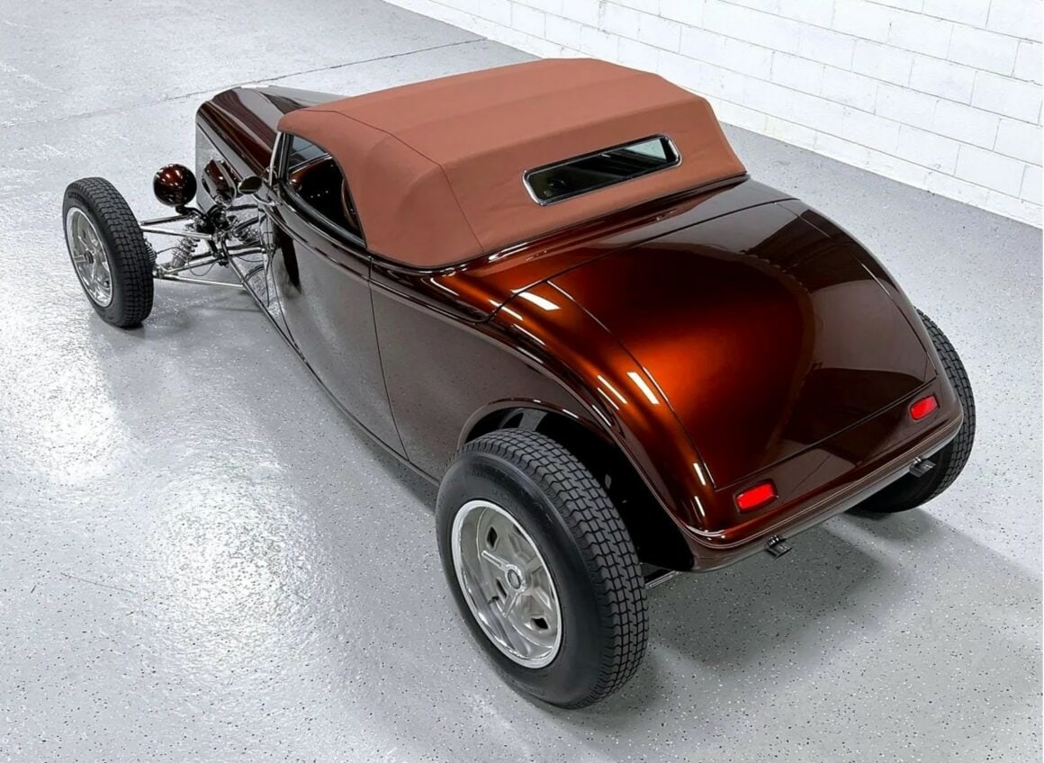 Il dispose d’un titre de circulation rendu “propre” par un pré-don aux sévices ad-hoc du Michigan qui ont alors enregistré le véhicule comme un authentique Roadster Ford 1933 qui est maintenant à vendre aux enchères avec une réserve de 65.000 US$ ! Inspiré d’un Roadster Ford Highboy (où Hi-Boy, au choix) de 1933, sa carrosserie en acier de chez“American Speed Cy” est l’une des rares produites à l’aide d’un processus de conception assistée par ordinateur.