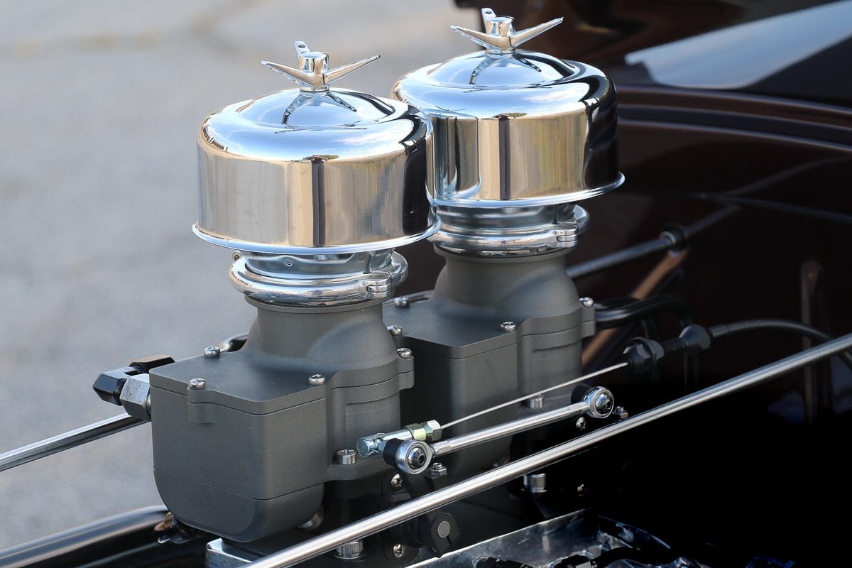 Bien sûr, le point focal de ce Hot-Rod est le magnifique V8 Flathead surmonté de culasses Ardun, d’un compresseur Italmeccanica vintage et de deux unités EFI Autotrend avec carbus double-corps. Il s’agit donc d’un moteur à l’allure superbe qui grogne et hurle tout en respirant à travers des collecteurs uniques construits par “Ryan Linder” tandis qu’en finale un échappement personnalisé traverse les rails du châssis, sortant devant les pneus arrière gauche et droit…