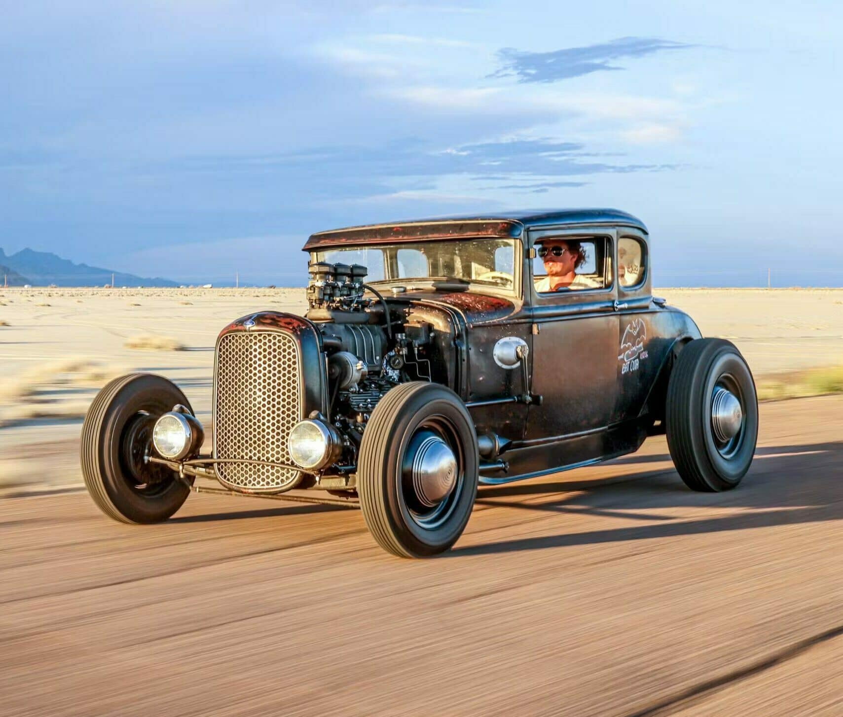Ce n’est pas tout, loin de là, il s’est littéralement “éclaté” sur la fameuse (et fumeuse) “Omaha Coupe”… Chaque année depuis 1949 (soit mon âge, 74 ans), la “Bonneville Speed Week” apporte la promesse de courses de vitesse dans le désert de sel du nord-ouest de l’Utah, en organisant des courses devenues mythiques…Il y a presque autant de classes qui concourent que de Hot Rod’s et cela par type de moteur dans des classes qui honorent la genèse du Hot-Rodding tel qu’il doit continuer à exister. Même lorsque la pluie détrempe le lit (normalement asséché) du lac de Bonneville, rendant les records impossibles et insaisissables (comme ce fut le cas en 2022), une migration de Hot Rods traditionnels déboulent pour gronder à Wendover afin de célébrer le passé.