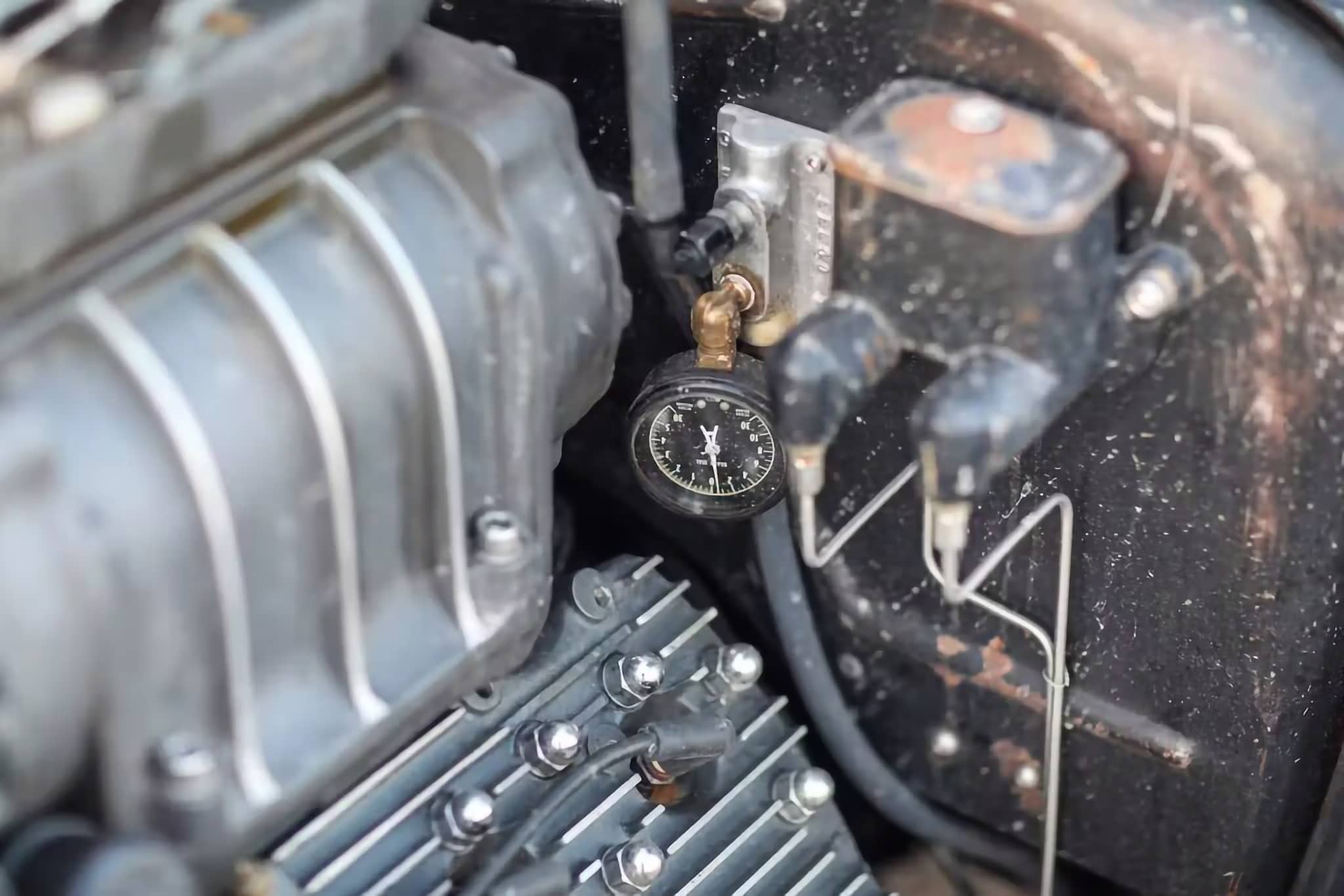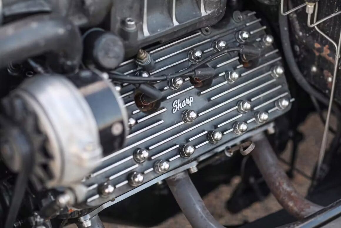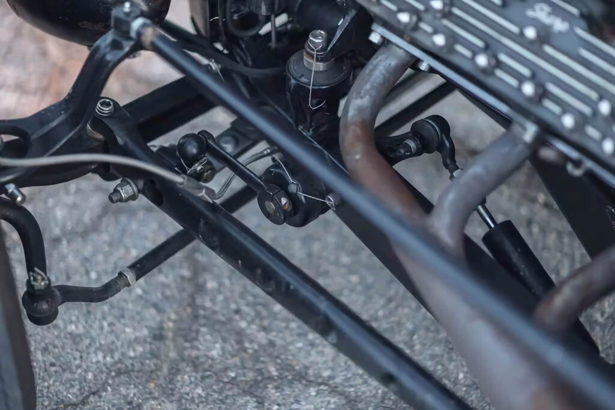 Il cherchait un nez approprié pour baptiser le coupé, mais ne voulait pas de la pin-up typique et a plutôt opté pour une mascotte plus sinistre…. Les feux arrière furent une trouvaille dans un échange. Ils viennent d’une ’37 Olds. Hansen a toutefois du modifier le moteur. La première itération de la plaque de tête fournissait trop de suralimentation, et la pression du cylindre n’était pas en accord avec les filetages. Lors d’un voyage rapide pour déjeuner avec un ami, comme le raconte Hansen : “Je suis monté dessus et j’ai fait sauter la bougie d’allumage. Le fil de la bougie d’allumage s’y est accroché et l’a projeté dans le fossé“. Retardé mais pas découragé, Hansen a trouvé la prise au bord de la route, l’a enfilée dans la tête et est remonté dans la voiture…