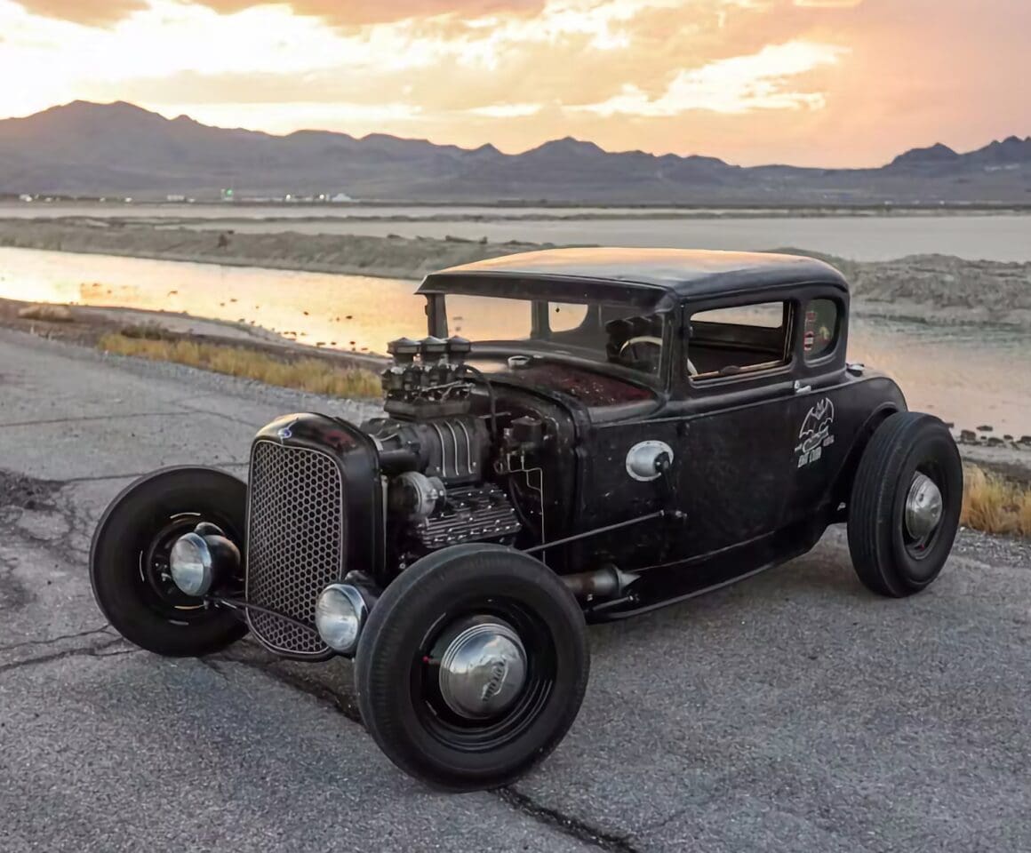 En ce début de saison 2024, les Hot Rodder’s avaient hâte de concourir, et voir ce qu’il en était du fameux Hot Rod Coupé modèle A 1931, de retour après une refonte approfondie d’Erik Hansen : “J’ai commencé à construire ce Rat Rod V8 Flathead dès que j’ai eu 16 ans”, m’a expliqué Hansen. Inspiré par son arrière-grand-père, qui pilotait une Harley-Davidson Flathead aussi bien pour 1° aller et venir à ses cours de l’université et qui 2° dirigeait les parcs à bestiaux locaux en plus 3° d’être forgeron… Hansen s’est mis au travail pour 4° réparer un modèle T 1924 PU qui se trouvait dans le magasin de son arrière-grand-père depuis plus de 40 années. Ce pick-up était 100% d’origine et possédait une transmission Ford’T, mais ce PU était resté dehors sous la pluie…