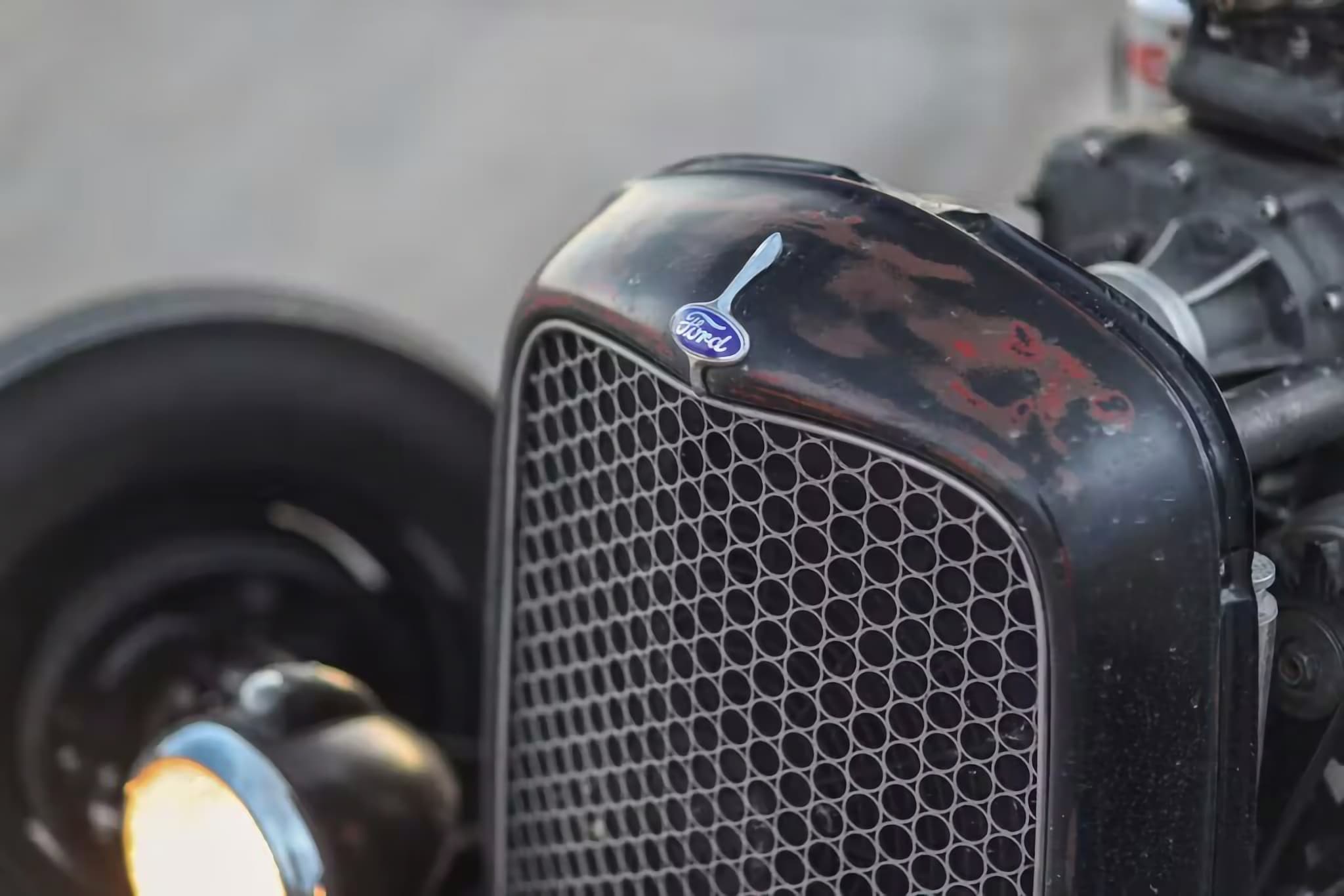 Il donne à la voiture un aspect fort déterminé (sic !) tout en laissant beaucoup d’espace à l’intérieur de l’habitacle. Une partie de l’acier de la custode est d’origine, car Hansen a trouvé de la tôle Ford qui restait d’un agriculteur inventif. En raison du rationnement pendant la Seconde Guerre mondiale et parce que Ford a arrêté de fabriquer des véhicules commerciaux pour se tourner vers des véhicules militaires, les agriculteurs ont souvent coupé les toits et les panneaux de coffre des coupés et des berlines modèle A pour créer des camions de fortune, un style de carrosserie plus utile à la ferme. D’une manière ou d’une autre, le cadre de quart de fenêtre de l’un de ces coupés A convertis, a été transmis à Hansen.