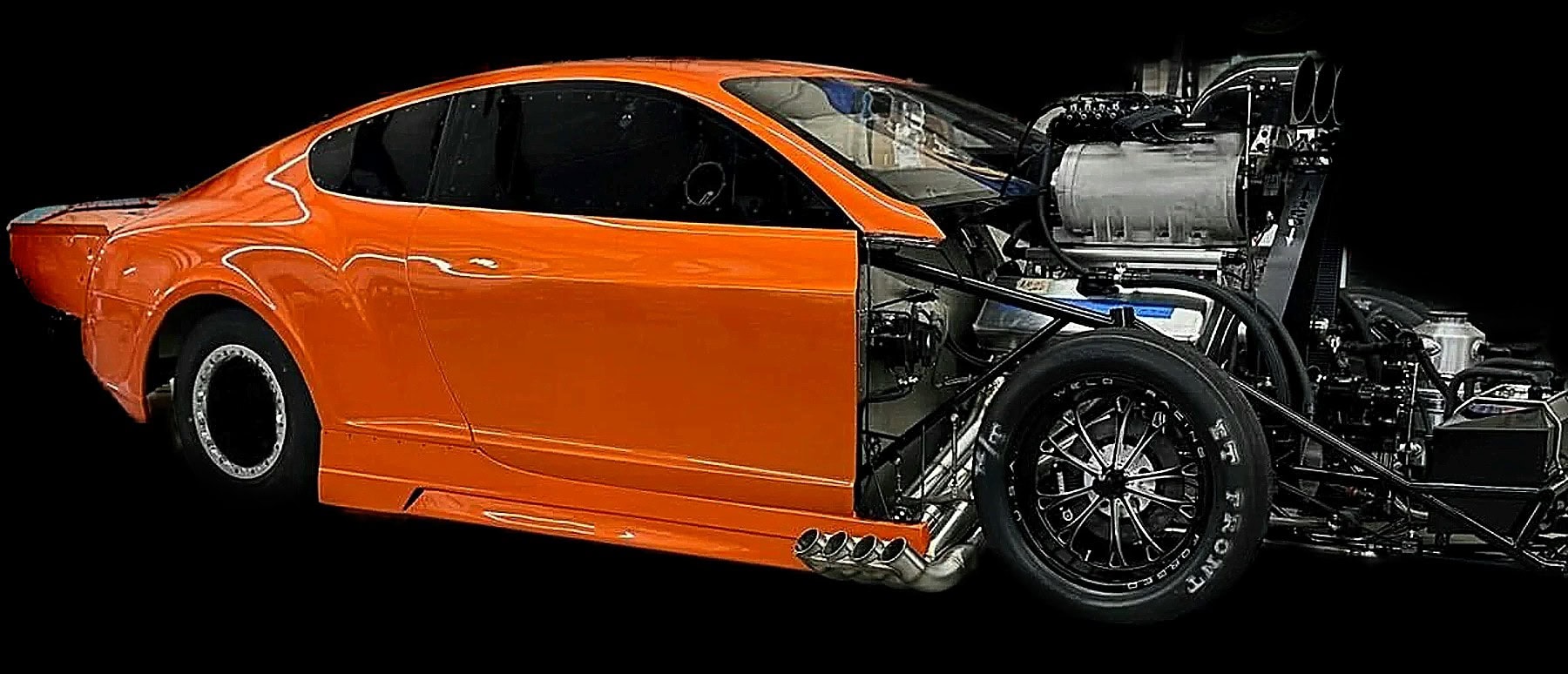 Le plan initial pour Tony était en fait de construire un dragster de rue sur base Camaro de première génération, mais cela a changé lorsque Tony et Patrick Barnhill de PTP Racing ont commencé à parler de faire quelque chose de différent qui serait présentée le jour de l’investiture de Donald Trump… Compte tenu du slogan “America First” de Trump, une Bentley Anglo-Germanique détonne dans la masse d’américanités, mais ce qui compte étant le gigantesque V8 640ci développant 1.400cv avec un Blower/compresseur, un ensemble “America First”, l’hommage ne peut qu’être accepté…
