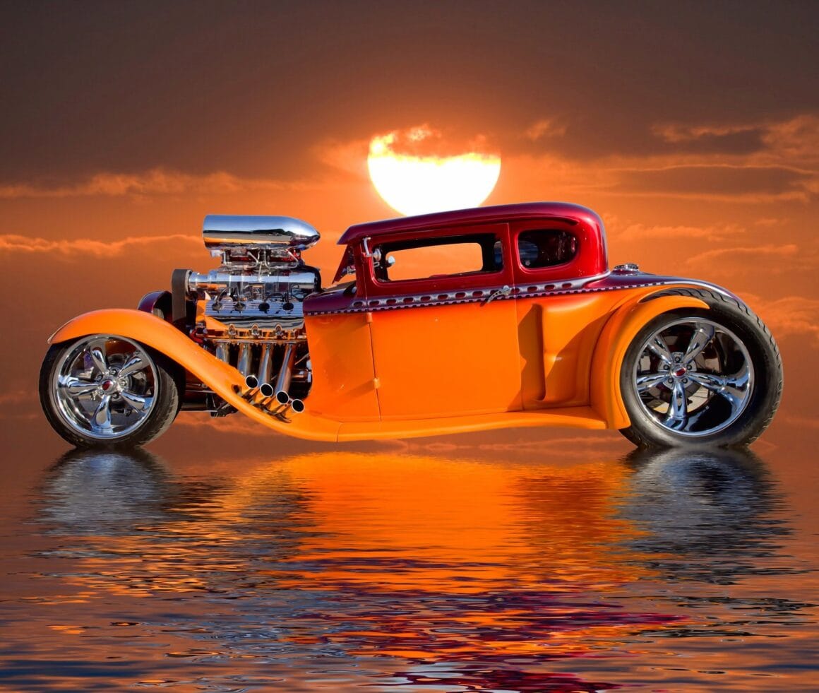 Avec sa peinture bicolore rouge et orange, ses ailes arrière clipsées, sa carrosserie découpée de 10 cm et ses sections sectionnées et canalisées de 20 cm, c’est une création unique en son genre. Mais la vraie magie se cache sous le capot. La voiture est propulsée par un V8 Big Block Keith Black Hemi 528ci, équipé d’un Blower 1471, de deux carburateurs Dominator 1050 et d’un pont arrière quick-change. Cette Ford A Coupé Radical Rod “ABSURD” de 1930 est capable de produire plus de 1.000cv, ce qui en fait une véritable centrale énergétique sur la route. L’attention de Bruce aux détails est évidente dans chaque aspect de la voiture. De l’intérieur personnalisé au châssis fabriqué à la main, aucun détail n’a été négligé. La voiture est dotée d’un châssis fabriqué à partir de tubes en acier de 2 x 10 cm, d’un système de suspension à 4 bras et de freins à disque Wilwood aux quatre coins. Le Radical Rod “ABSURD” a remporté de nombreux prix et distinctions lors de salons d’autos à travers les Etats-Unis, et il est facile de comprendre pourquoi… C’est une création unique et époustouflante qui associe le style classique d’un Hot Rod à des performances et une technologie actuelle.