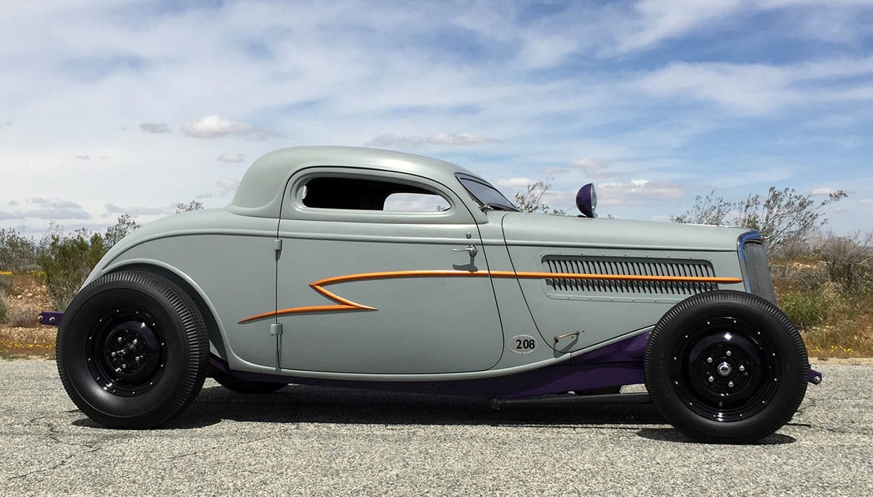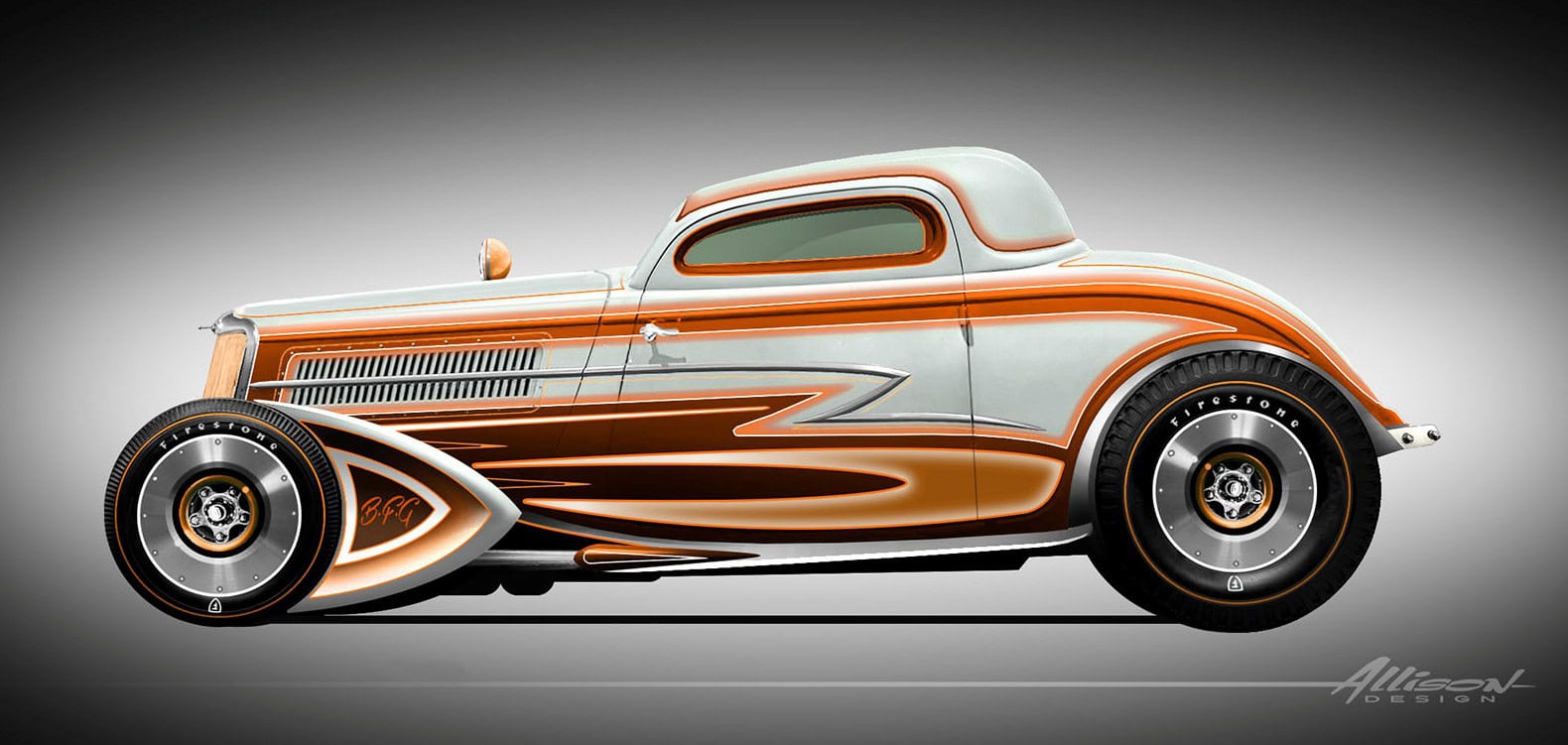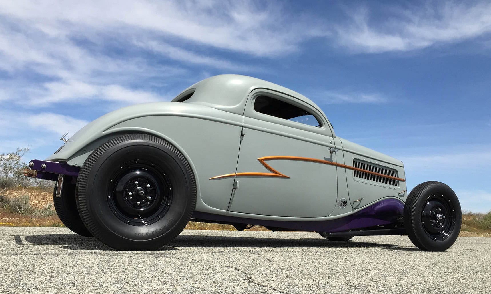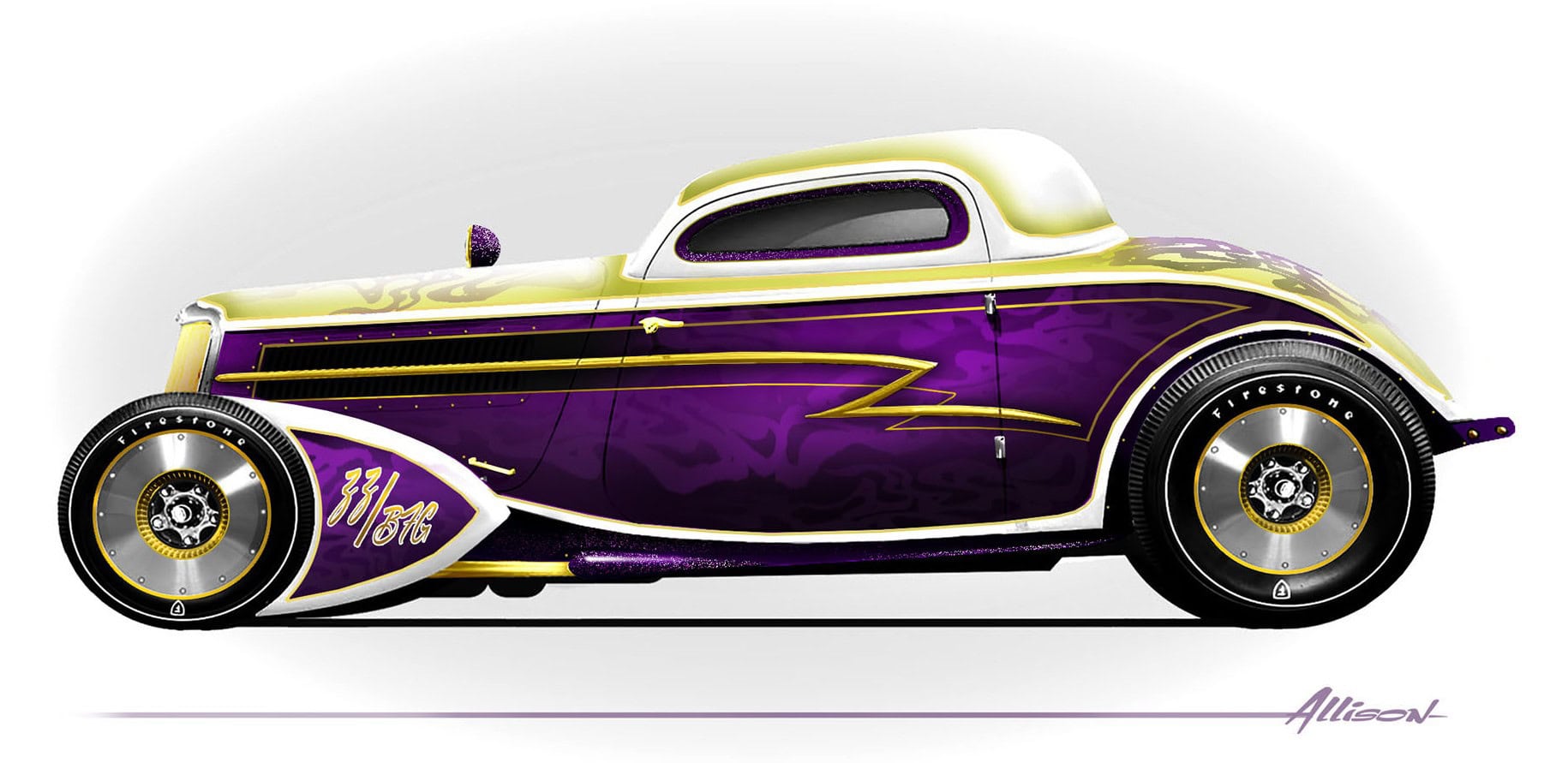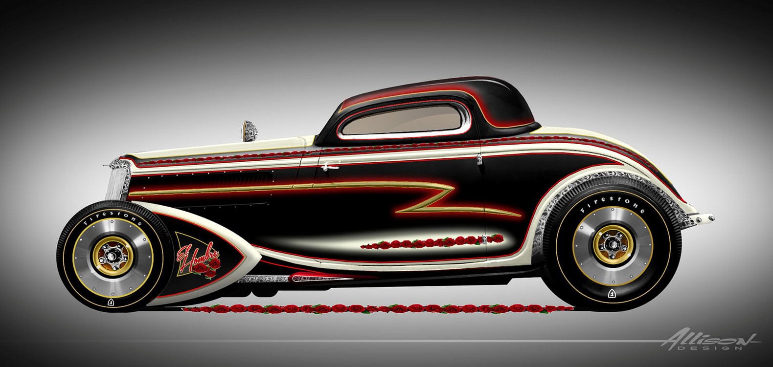 Alors que la Ford ’32 ‘Deuce’ est toujours considérée comme la quintessence du Hot Rod comme dans ‘Lil’Deuce Coupe’, le modèle 40 de 1933-34 était une grande amélioration par rapport à la ’32, étant plus longue, un peu plus basse et propulsée par un Ford V-8 Flathead. Lorsque ce coupé est arrivé pour la première fois au SO-CAL SPEED SHOP de Chapouris, à Pomona, Alberto Hernandez a été chargé de concevoir un hommage au premier Hot Rod de Billy.