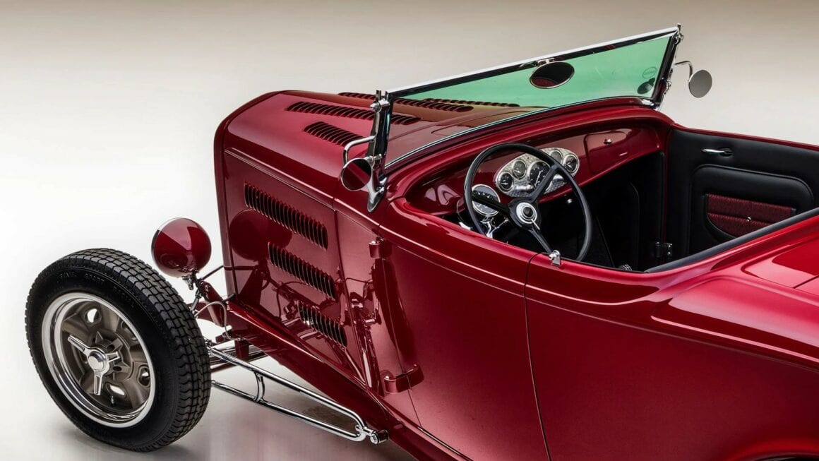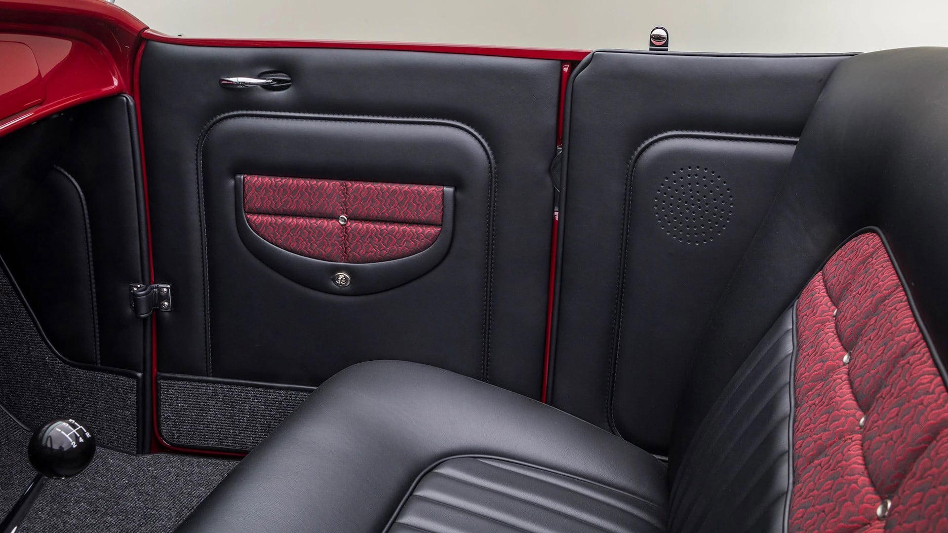 La banquette personnalisée a été rembourrée chez Sid Chavers Upholstery, où le cuir noir a été cousu dans un motif tuck ‘n’ roll pas trop différent de ce que vous voyez sur de vieilles photos. Un détail différent est les inserts en tissu rétro ajoutés aux dossiers des sièges, juste assez pour faire passer l’idée. Ce design est repris dans les poches des portes. Chavers a recouvert le sol d’un tapis allemand gris. Alors que les progrès étaient en cours, Brizio a évoqué l’idée de présenter le roadster terminé au Grand National Roadster Show, où il a fait ses débuts publics. En plus de l’exposer lors de salons et de commémorer un anniversaire et un anniversaire, Joe a construit son roadster pour deux autres raisons : faire partie des roadsters de la région de la baie (dont Brizio et Chavers sont membres) et conduire. Le premier objectif a été atteint, et Joe est maintenant membre des Roadsters. Le deuxième objectif est en suspens…