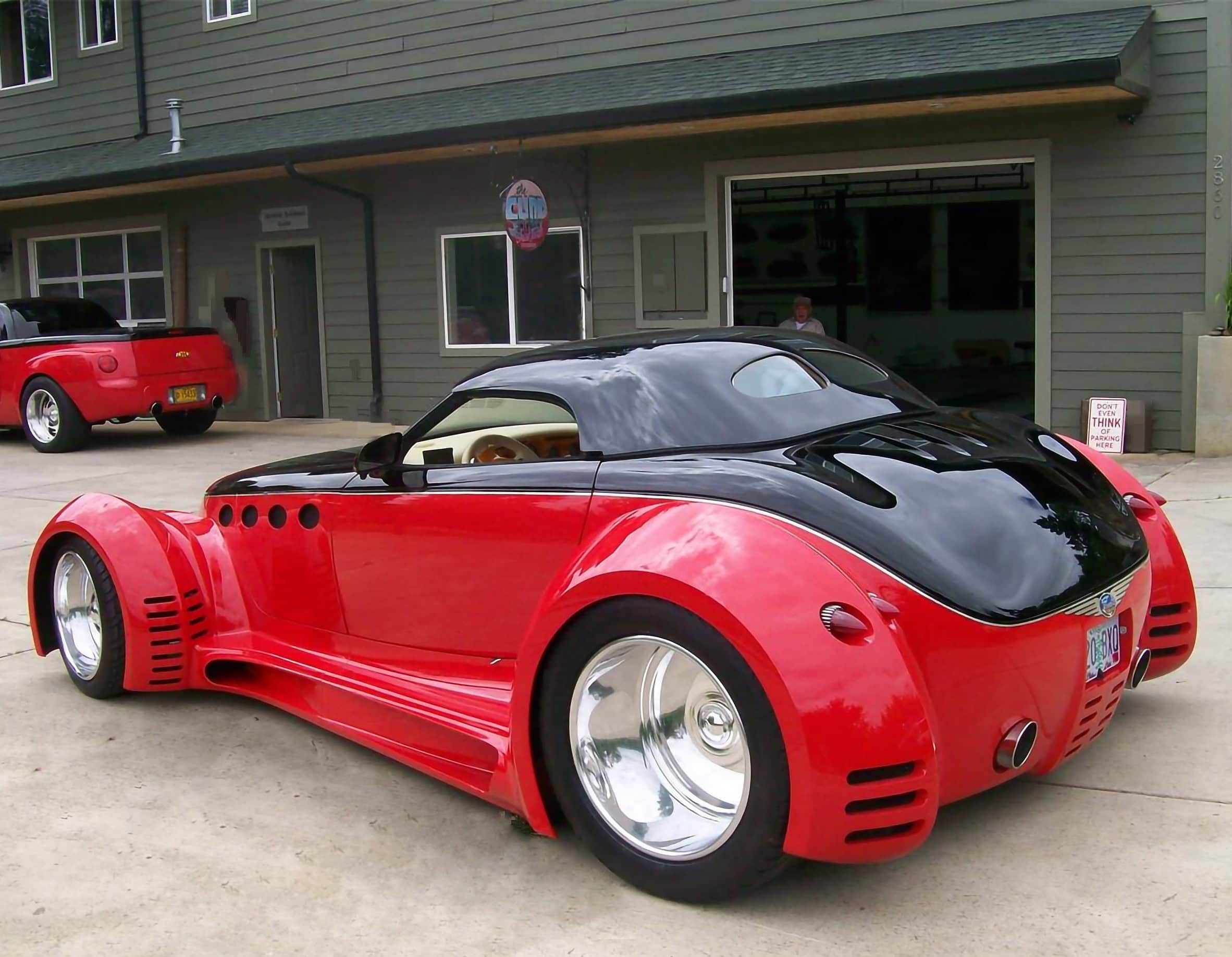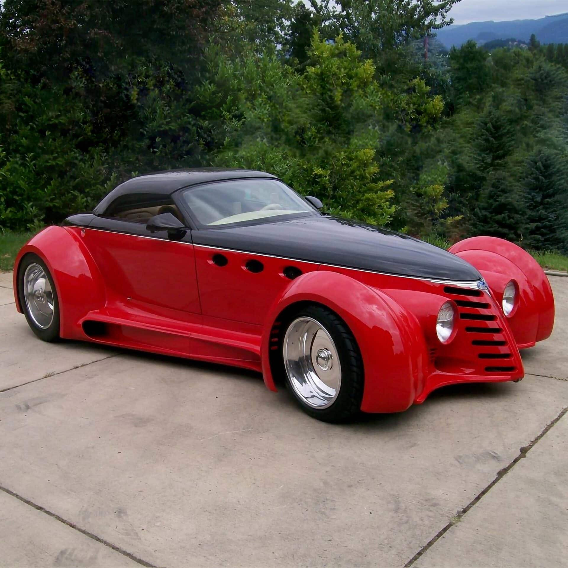 Surtout quand les ombres s’allongent et qu’on se rend compte qu’on a oublié d’éteindre la radio – mais qu’en fait, c’était peut-être ce qu’on a fait de mieux de la journée. Son 2000 Plymouth Browler n’a que 13.000 miles, c’est une re-création unique, 7 fois vainqueur de classe dans divers shows. Carrosserie totalement modifiée. Peinture rouge et noire “saisissante”, moteur 270cv et châssis d’origine.
