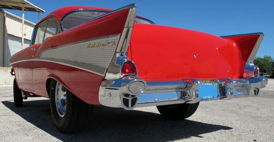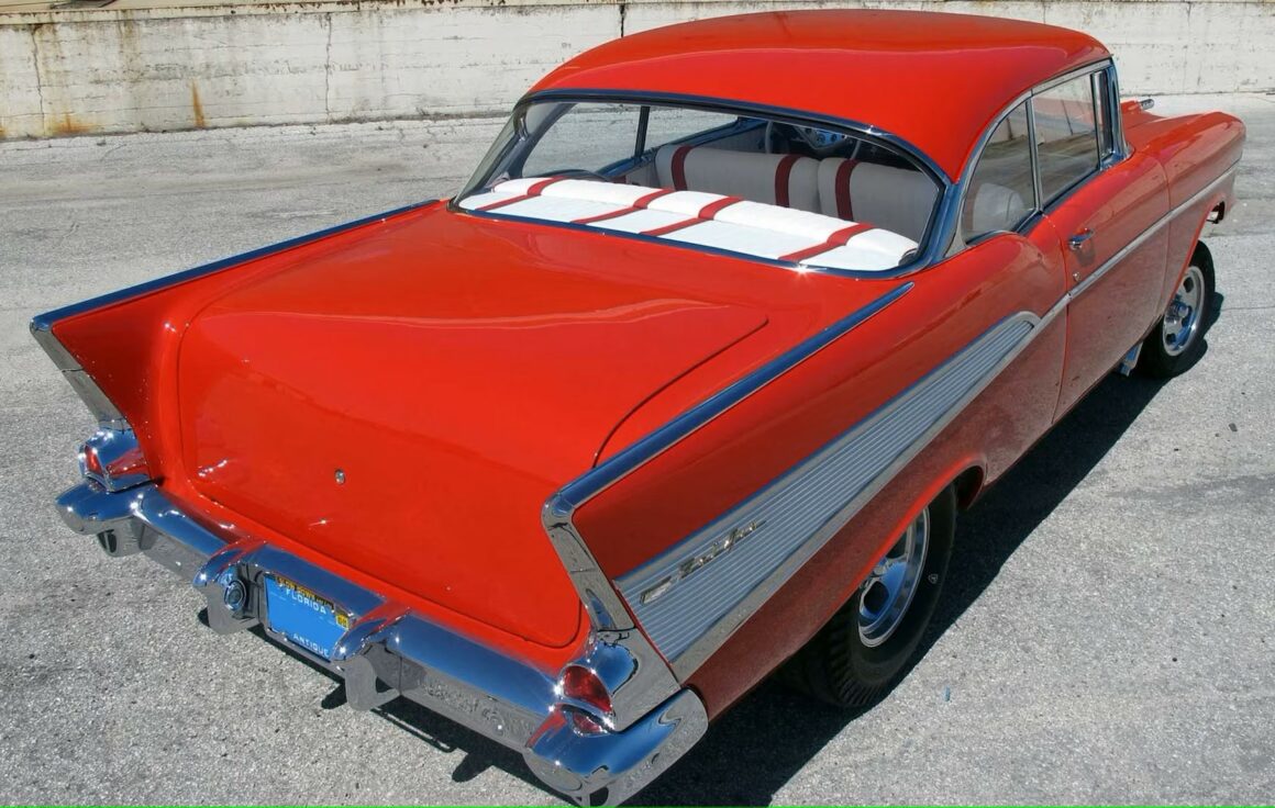 Mais qui ne parviennent pas à trouver une même véritablement ancienne, sans rouille… Dans le cadre de son entreprise, Joe a acheté quatre carrosseries Tri-Five à New York pour réaliser un travail de développement de produits, mais finalement, une des Chevy’57 du groupe de 4 est restée comme exemple de la voiture parfaite à intégrer dans toute collection ou dans un simple garage de fanatique désireux de refaire le style American Graffiti les samedis soirs.