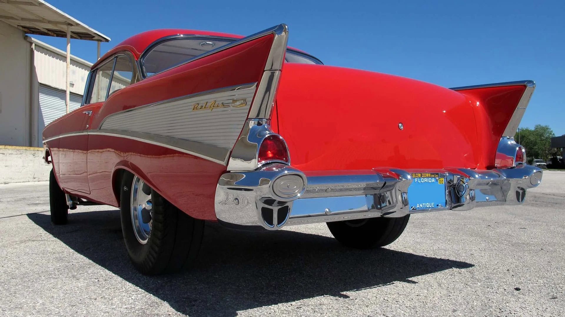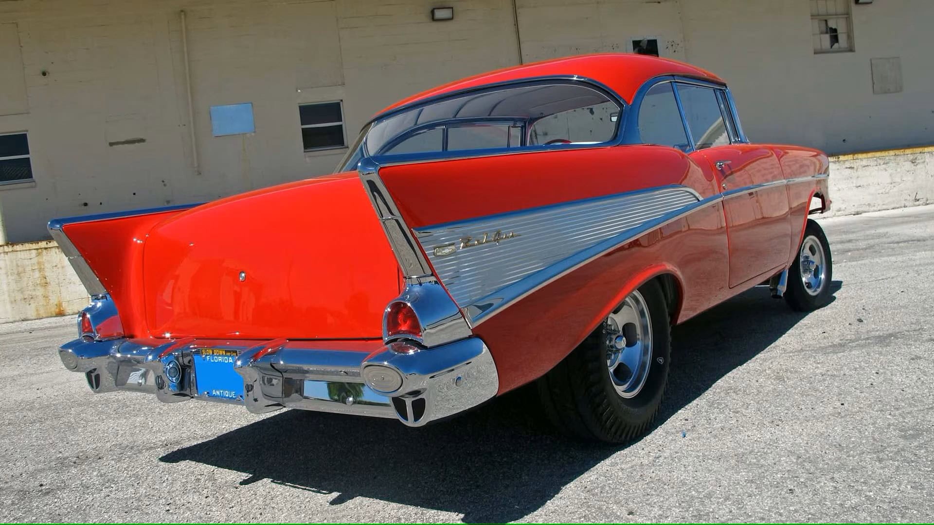 Gratification instantanée des neurones mais claques violentes dans la gueule et sous la ceinture du fait de la quasi impossibilité de circuler en France… C’est la Chevy de Joe Whitaker, propriétaire de Read Deal Steel à Sanford, Floride, un atelier New-Yorkais où sont fabriquées des reproductions de carrosseries “Tri-Five” (ils fabriquent des carrosseries d’autres marques des années 20/30/40/50/60/70) pour ceux qui veulent construire une voiture de ces années.