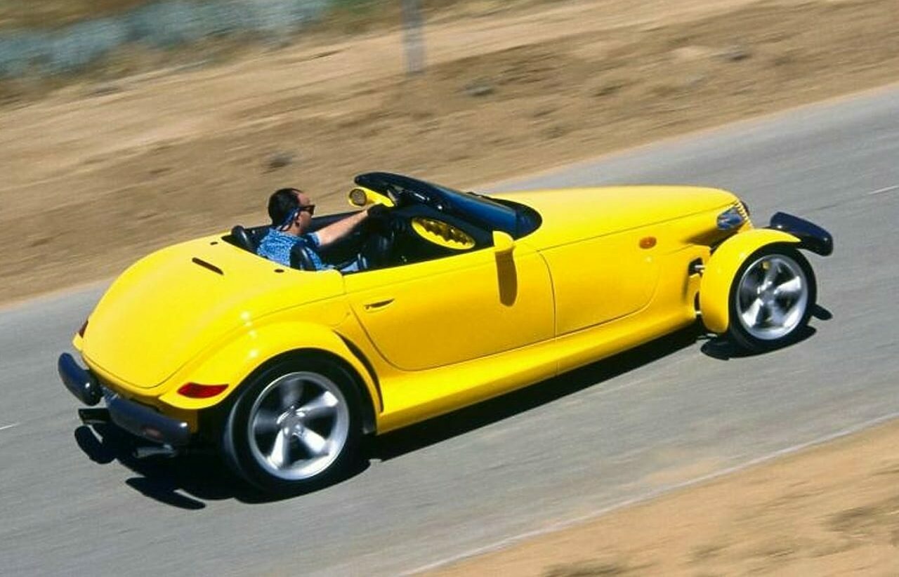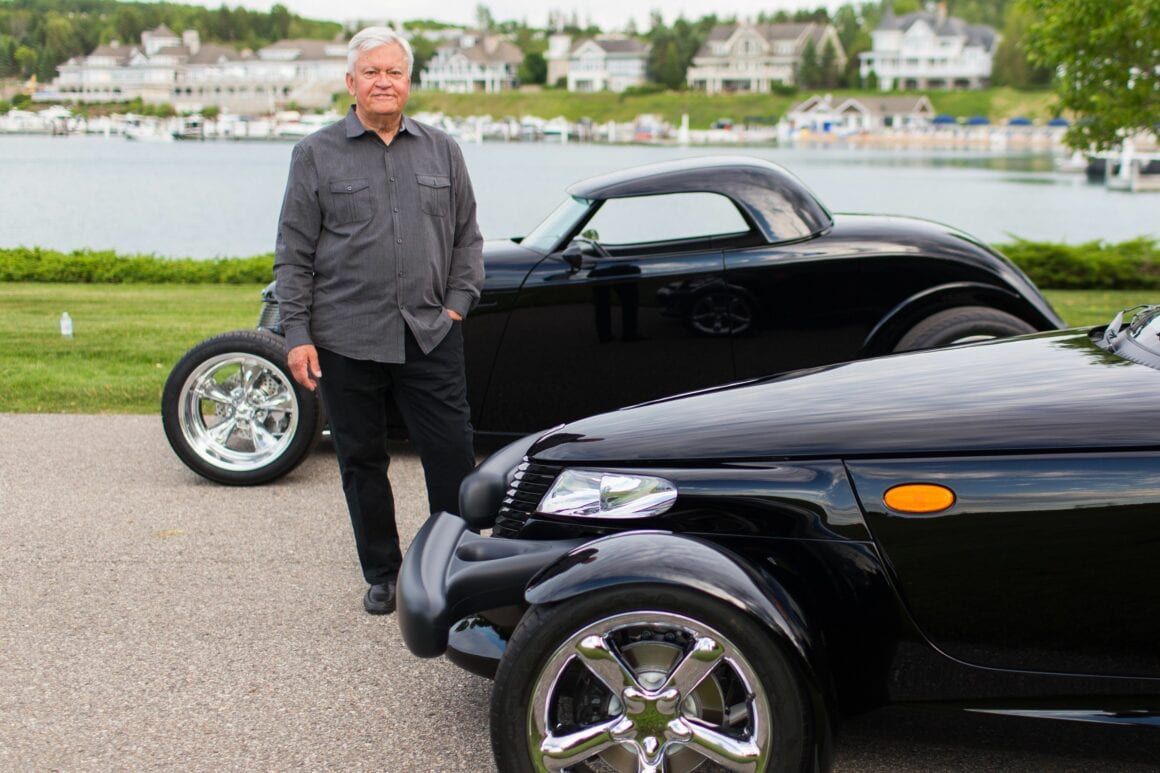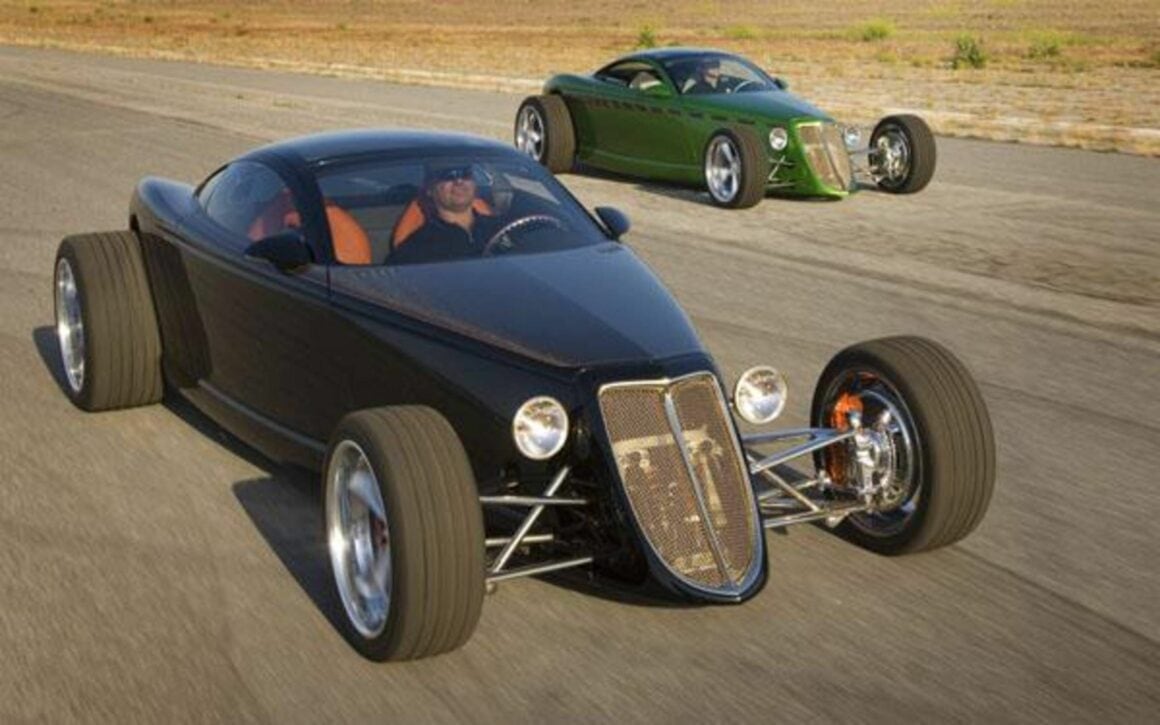 Lorsque je suis revenu après un tour de piste, Chip Foose m’a dit : “Pourquoi s’arrêter ?”… J’ai donc appuyé à nouveau sur le bouton Foose, le moteur a repris vie je suis reparti tout en pensant à un monde de Hot-Rods constitués de ce type d’engins… Dans les années 1990, trois véhicules de Chrysler Corporation avaient donné aux Hot-Rodders du monde entier une secousse d’énergie à indice d’octane élevé. Alors que les Mustang et les Camaro, ainsi que les Buick Grand National turbo et autres, offraient de la performance aux amateurs, Chrysler a brisé les habitudes avec la Dodge Viper, le Plymouth Prowler et le PT Cruiser (une version moderne d’une berline des années ’30 dont je viens de publier un article “souvenir”. Ces voitures populaires avaient une chose en commun : Tom Gale, vice-président du design chez Chrysler.