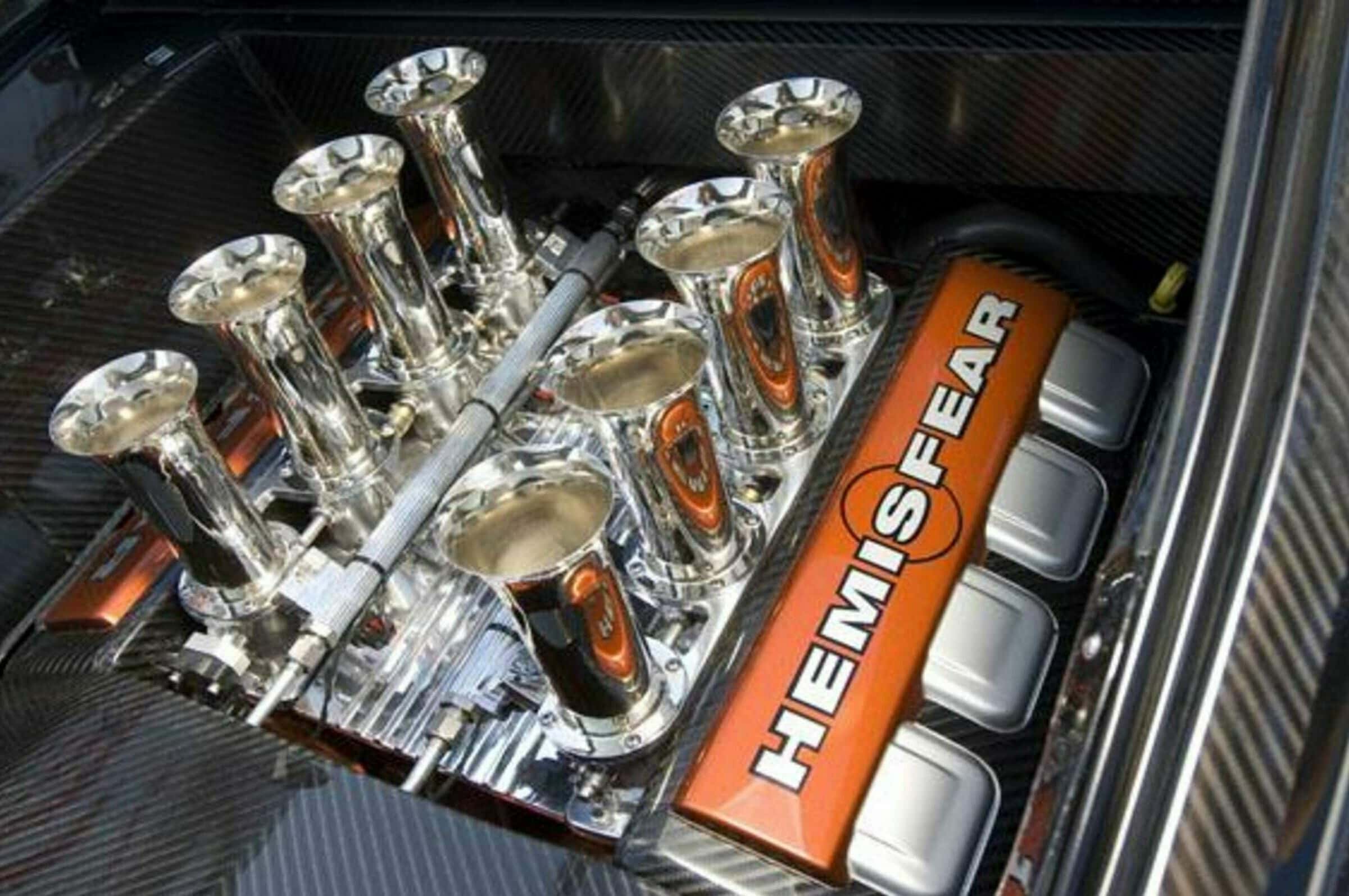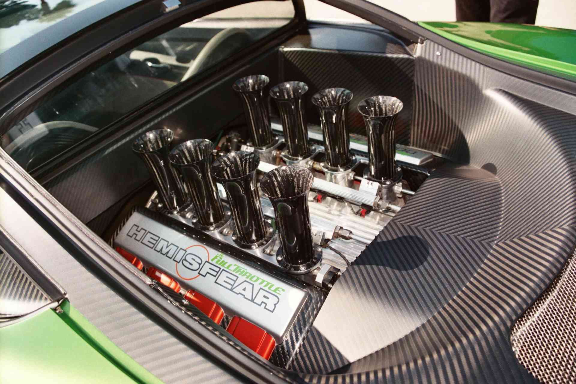 Ce contrat comprenait également des fonds financiers de redémarrage pour terminer la construction de l’Hemisfear. La maquette originale a été numérisée et toutes les données ont été introduites dans un ordinateur afin qu’une version pleine grandeur puisse être fraisée en mousse sur un broyeur à cinq axes. Un moule a été fabriqué pour la production limitée de seulement cinq carrosseries en fibre de carbone fabriquées par Gaffoglio Family Metalcrafters à Fountain Valley, en Californie. Pendant ce temps, John Hotchkis de Hotchkis Performance a travaillé avec Chip sur la conception de la suspension entièrement indépendante inspirée des voitures de course avec des bras à bascule montés derrière la coque de calandre à l’avant avec des doubles triangles à l’arrière. Le Dick Landy Hemi a finalement été remplacé par un autre Hemi 392ci équipé d’une injection électronique Hilborn.