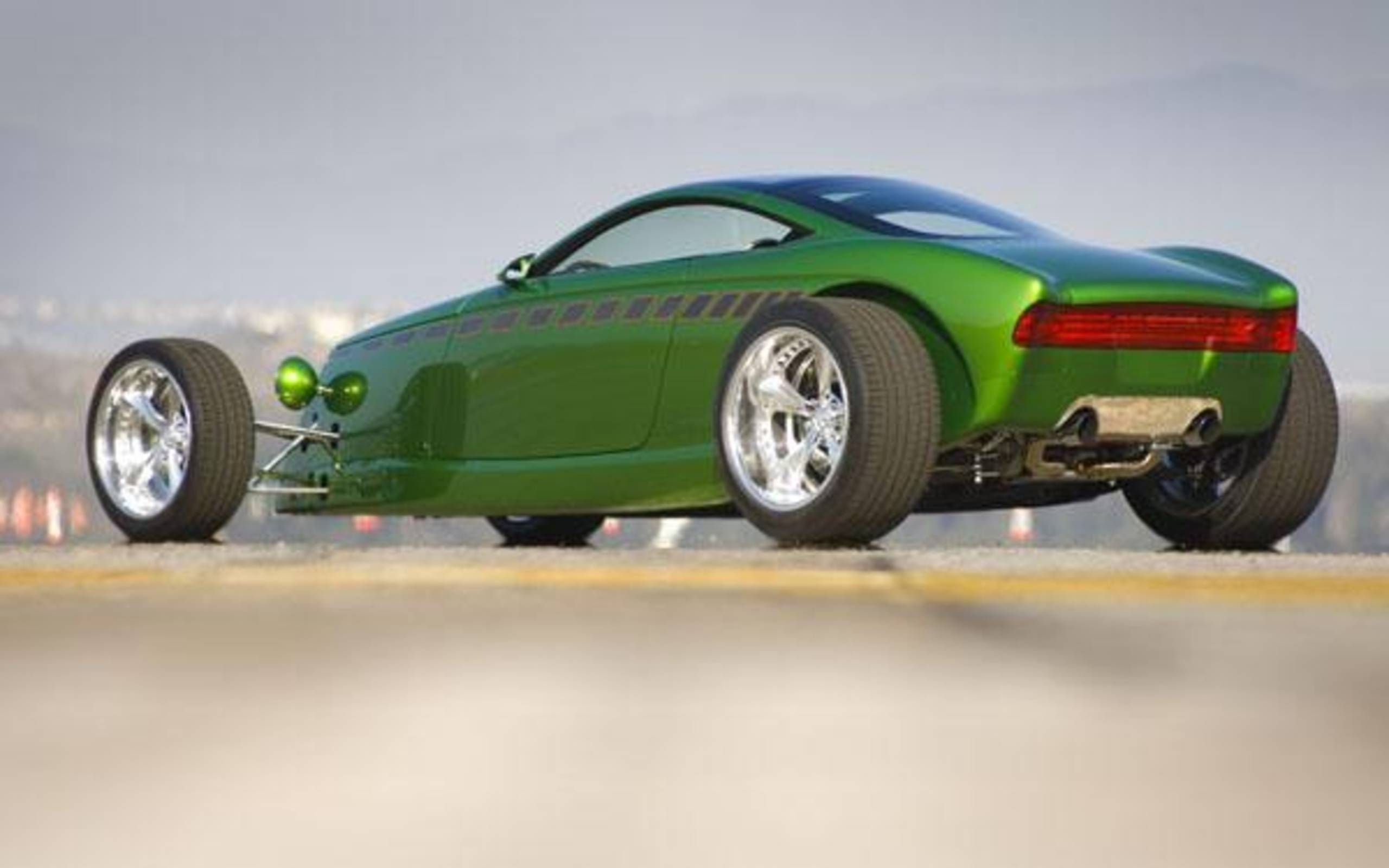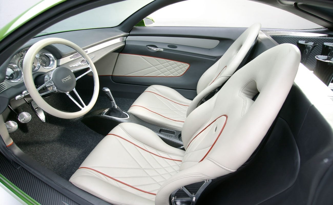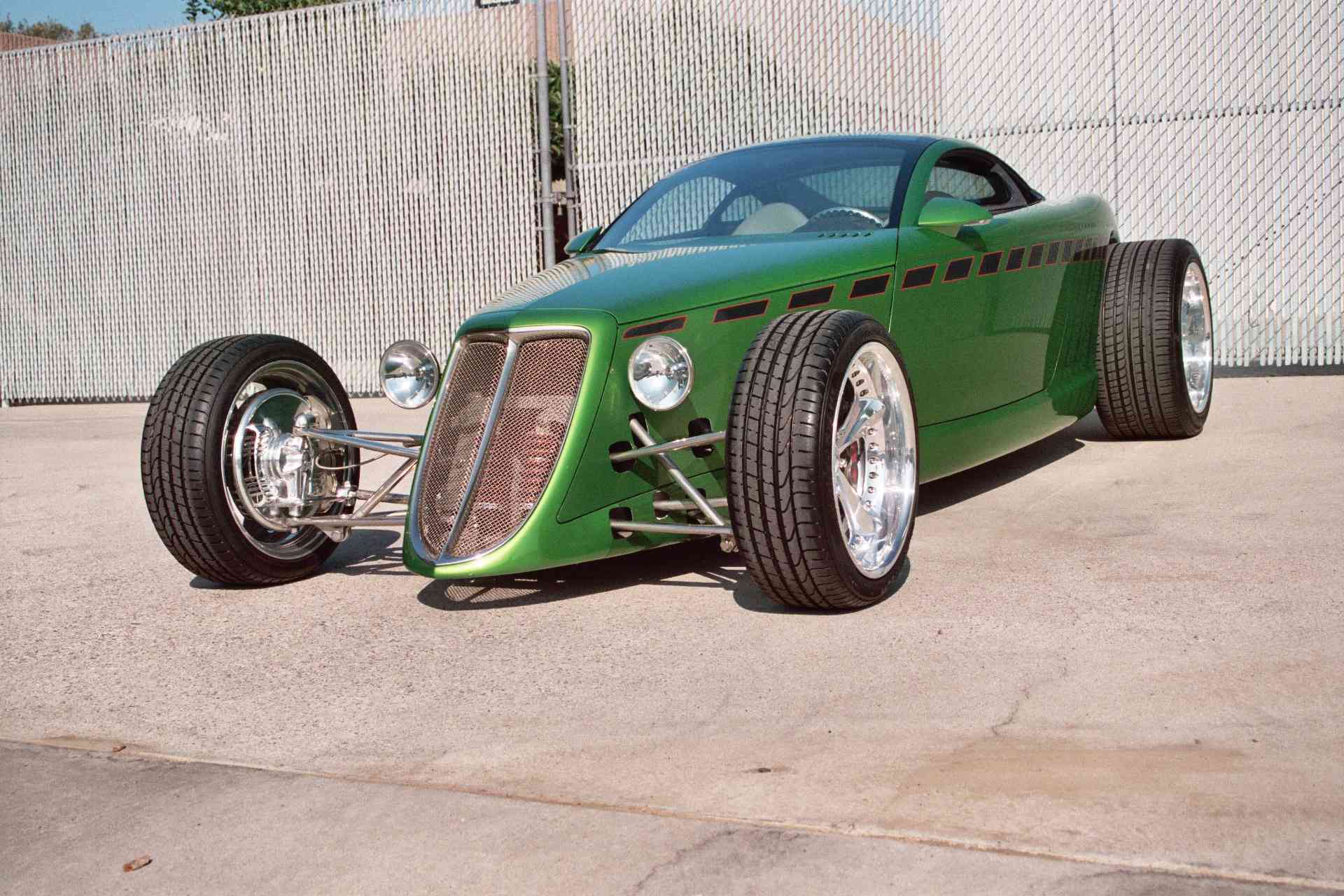 De tous, ces-deux-ci (le vert et le noir) avaient un design superbement intégré et étaient de loin, les plus compétents mécaniquement. Là où toutes les créations Foose précédentes et la plupart des choses génériquement classées sous la rubrique Hot-Rod avaient été pensés plus pour des “Cruising’s” de dimanches matin, avec des performances limitées à l’accélération principalement en ligne droite, ceux–ci avaient été conçus dès le début pour gérer aussi bien qu’ils en avaient l’air, la chanson et l’allure “Space-âge”... Dans chacun des deux Hot-Rods le monstrueux V8 se trouvait juste à l’arrière des deux sièges, relié à une boîte-pont ZF similaire à celle utilisée dans la DeTomaso Pantera et la BMW M1. Les tubes du liquide de refroidissement s’avançaient de chaque coté dans les pontos (idem Pantera) vers le radiateur monté derrière la calandre, elle-même se trouvait pas loin du réservoir d’essence.