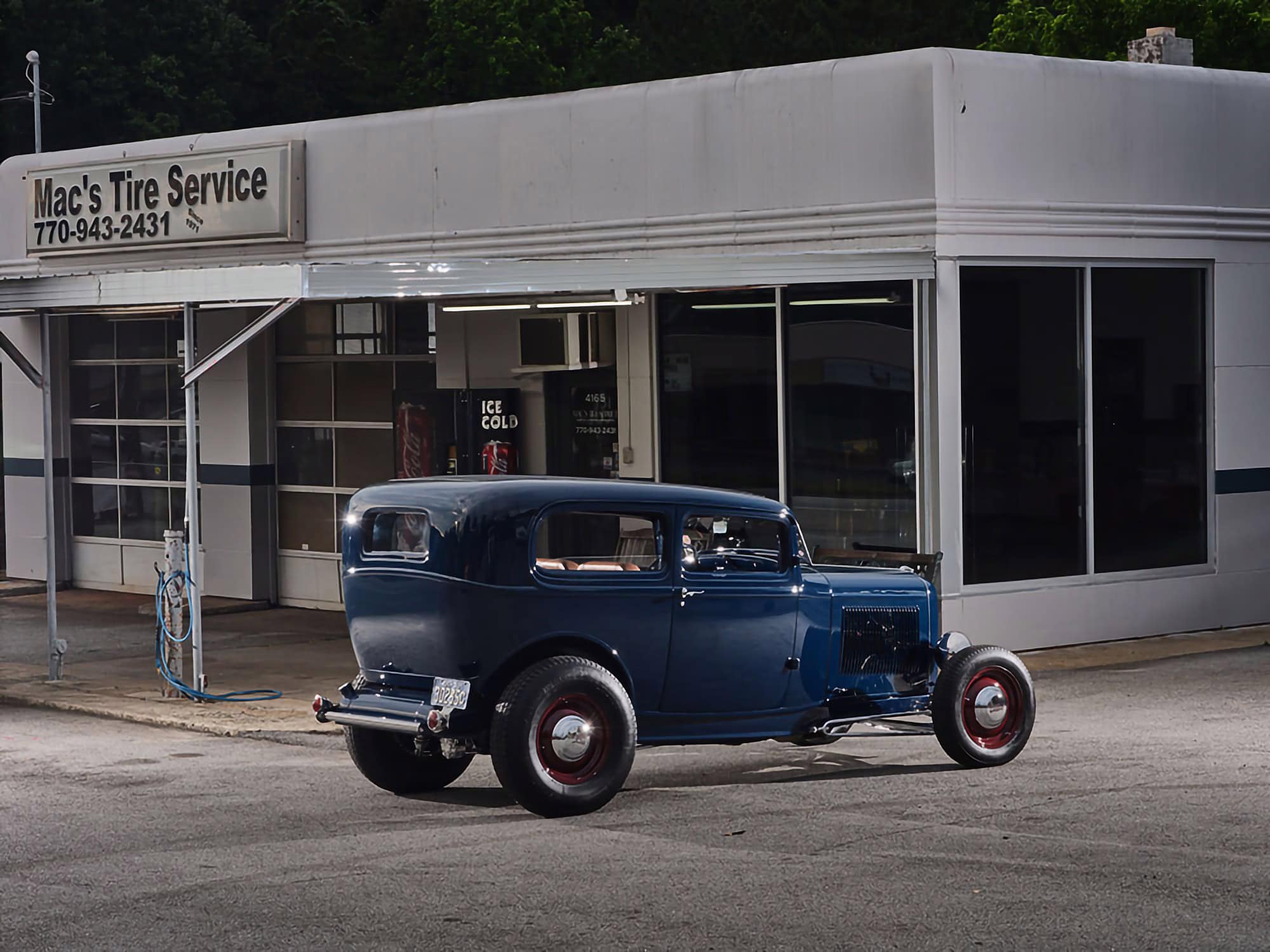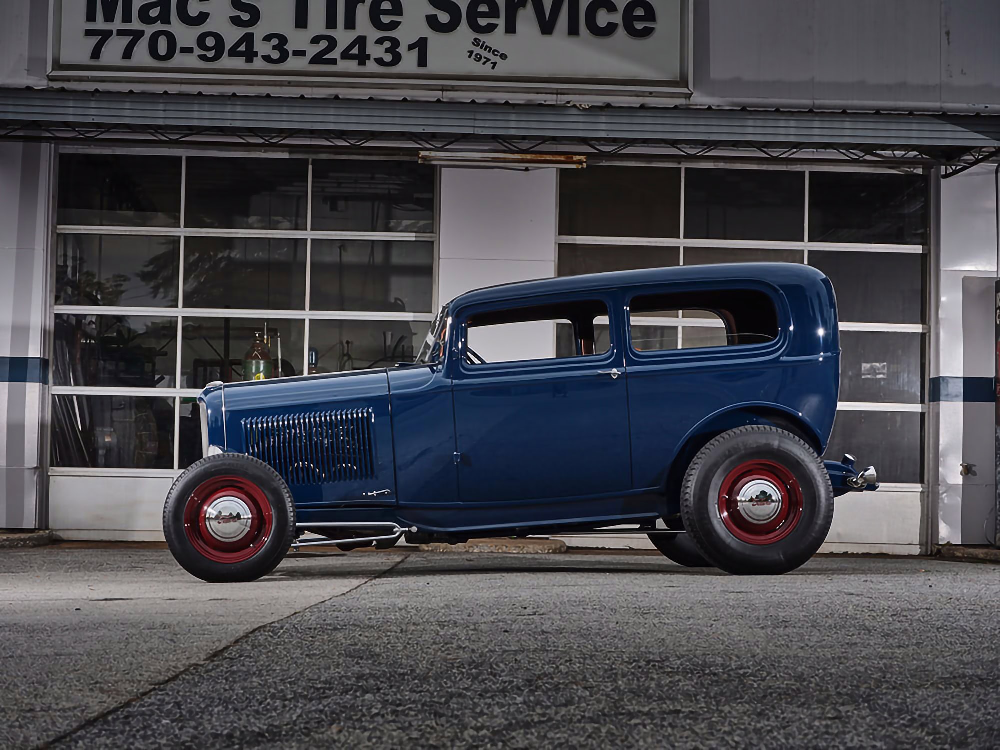 Bien que je n’ai pas la place de publier tout le job (vous devrez me croire sur parole), le châssis et tous les panneaux de carrosserie ont été retravaillés. En finale de plusieurs mois de travail, Jon Wright de Custom Chrome Plating s’est occupé du travail de peinture, un Washington Blue, une couleur d’usine Ford de 1932 maintenant mélangée par PPG. Les jantes d’époque étant peintes en marron Moselle apparu pour la première fois sur les véhicules Ford en 1942.